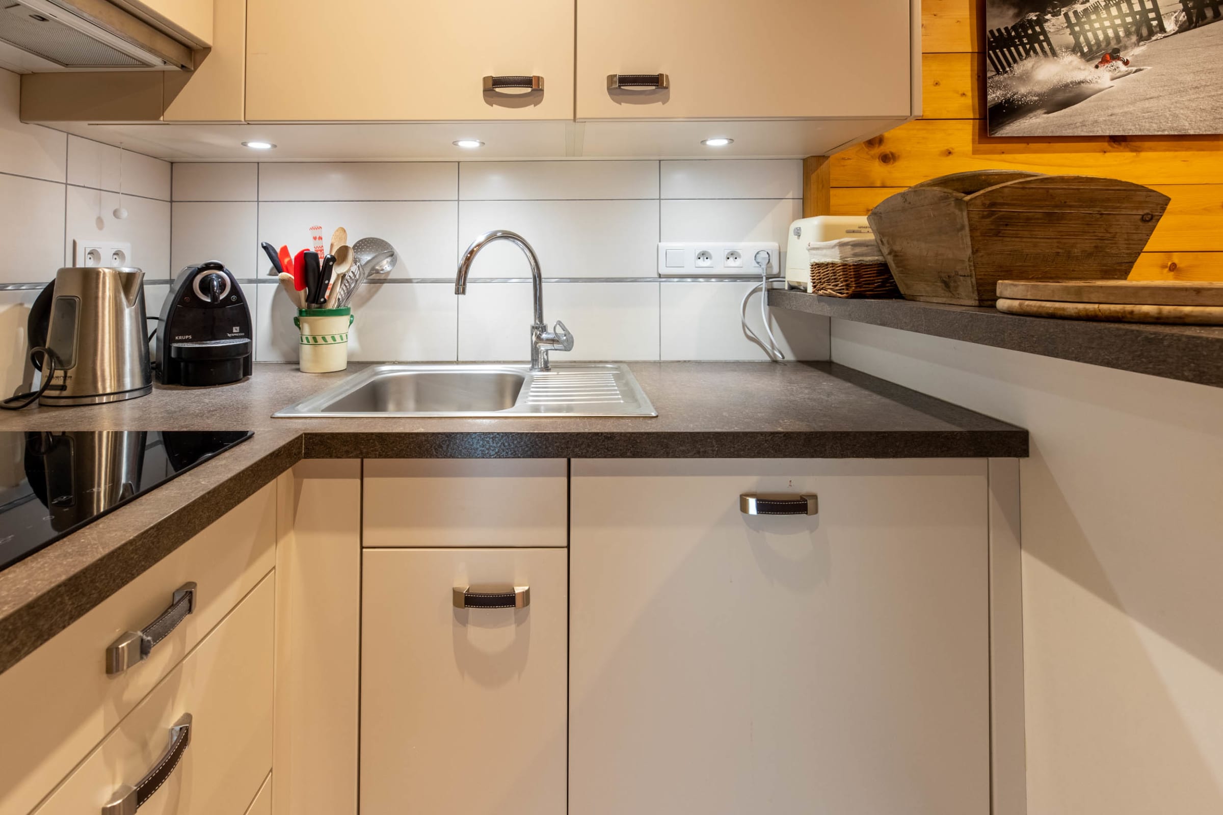 La cuisine est très bien équipée : lave-vaisselle, four, grand réfrigérateur, machine à café Nespresso, bouilloire, toaster etc.