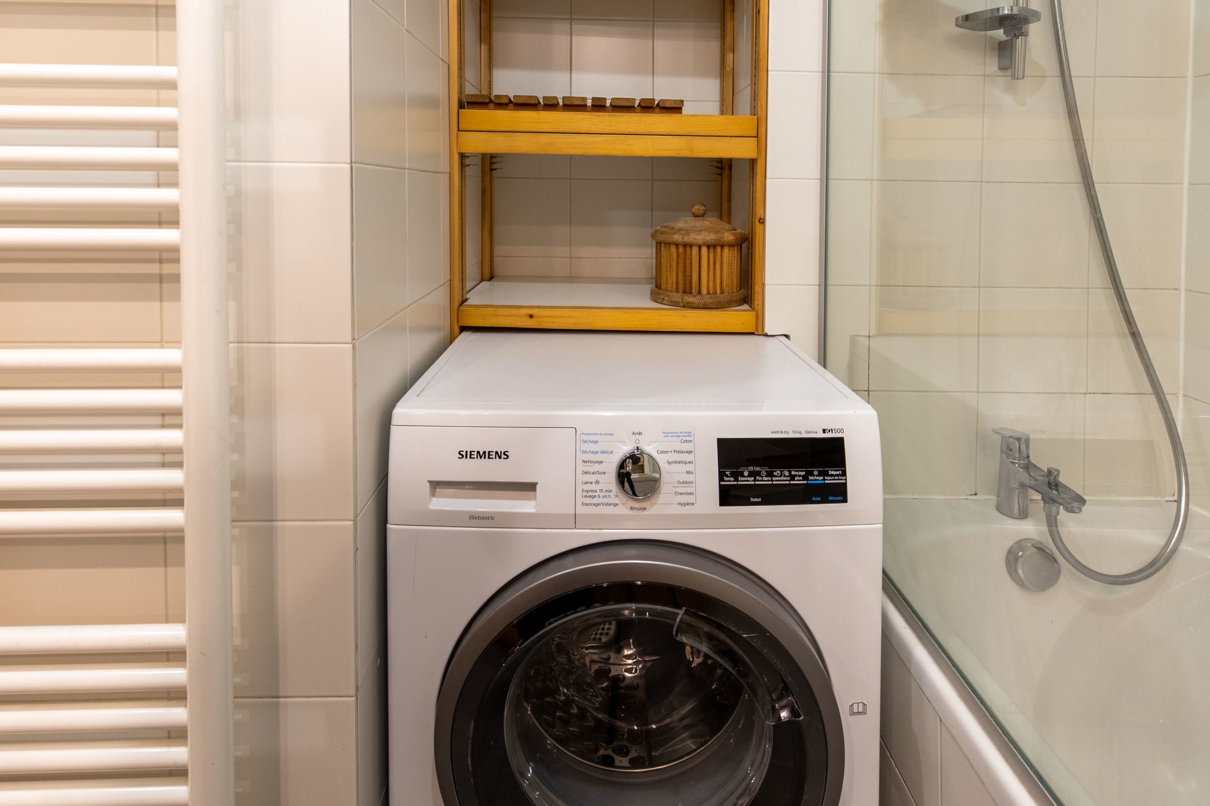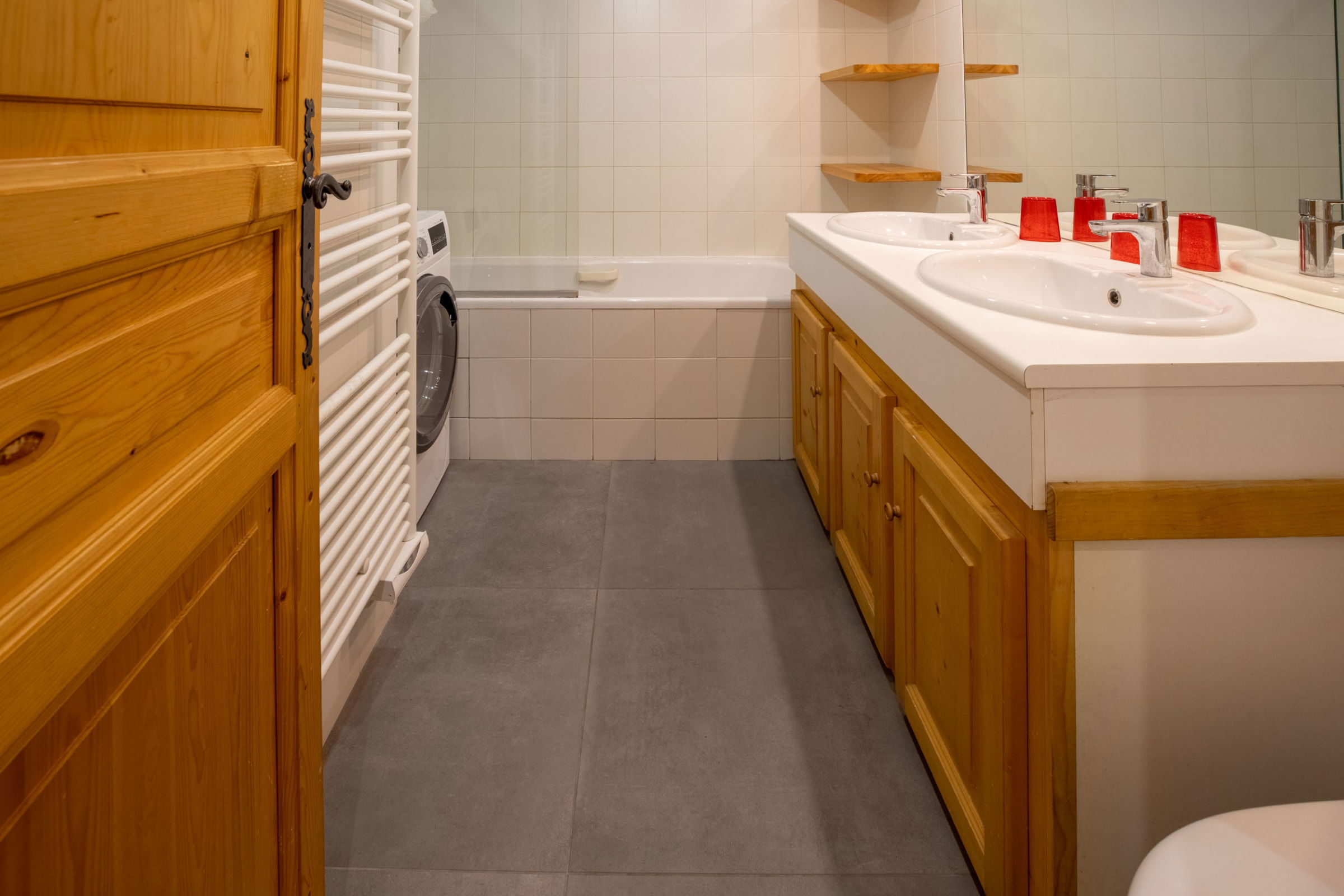 Une salle de bain spacieuse avec baignoire complète l'appartement.