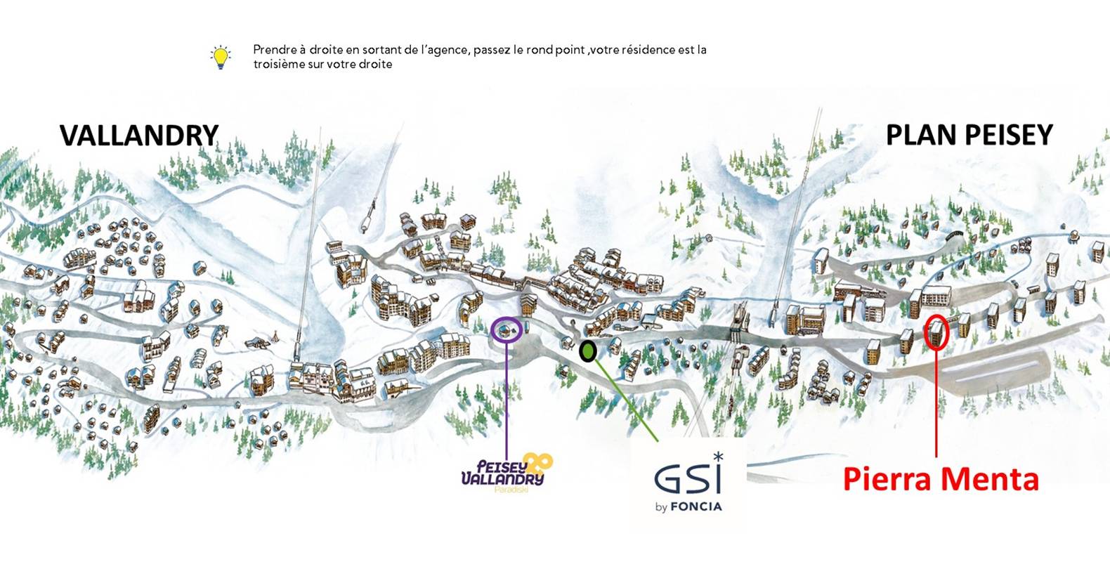 Résidence située sur Plan Peisey après le Vanoise Express, la 3ème résidence longeant la route. L'accès aux pistes se fait en longeant la route et en montant les escaliers qui menent au front de neige de Plan Peisey. Accès au Vanoise Express et au télésiège de Plan Peisey.