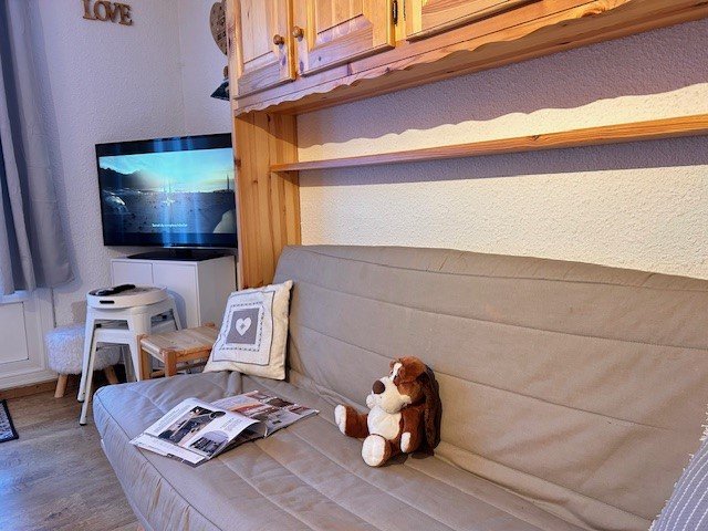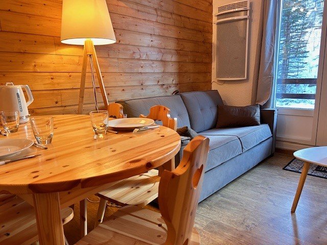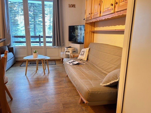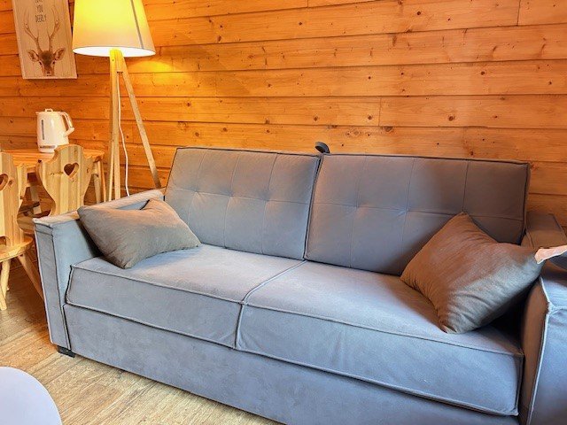 Ce logement, au premier étage avec ascenseur, s'organise autour d'un canapé clic-clac dans un coin montagne avec un lit mezzanine au-dessus et d'un canapé Rapido au séjour.