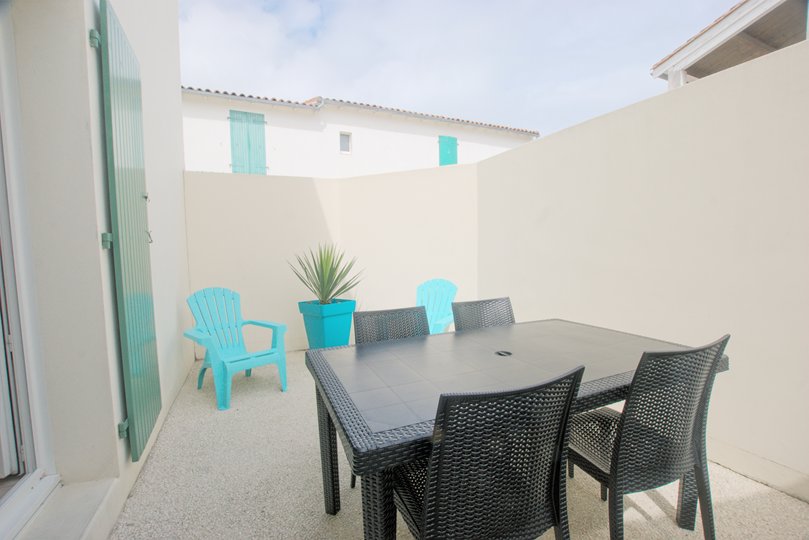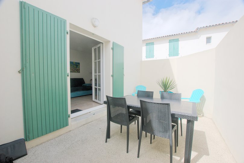 A l'extérieur, une petite cour de 16.50m2 vous permet de prendre vos repas en extérieur.