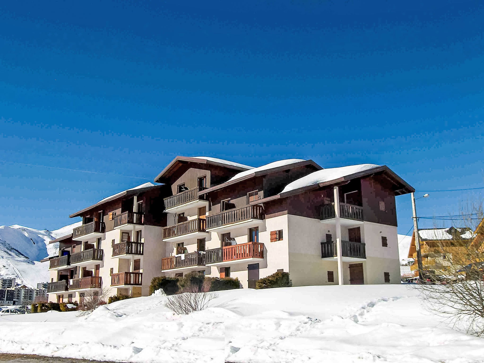 Résidence "Plein Soleil". Rive droite, en bordure de la localité, à 800 m du centre, situation tranquille, ensoleillée. En commun: tennis. Infrastructures de la Maison: local pour les skis. Place de parking sur le terrain. Magasins 800 m, magasin d'alimentation 20 m, supermarché 500 m, restaurant 20 m, arrêt de bus 50 m, gare ferroviaire "St Jean de Maurienne" 15 km. Tennis 20 m, téléski 200 m, télésiège 20 m, pistes de ski 100 m. Arrêt du ski-bus, école de ski 800 m. Veuillez noter: la remise des clés a lieu à l’agence DU CORBIER de LA STATION VOISINE, 4 km. D’autres appartements sont également proposés à la location dans cette maison de vacances. ATTENTION : La remise des clefs des logements de la Toussuire se fait au bureau du Corbier à 4 km. Pour les arrivées en bus, merci de nous contacter 48h à l'avance afin d'organisere votre remise de clefs. Service supplémentaire payant possible 30€.