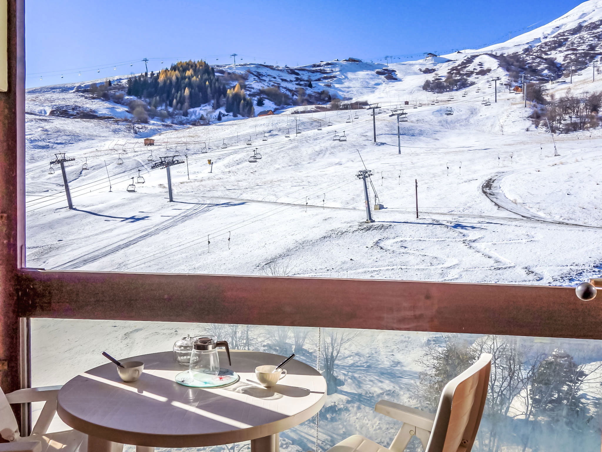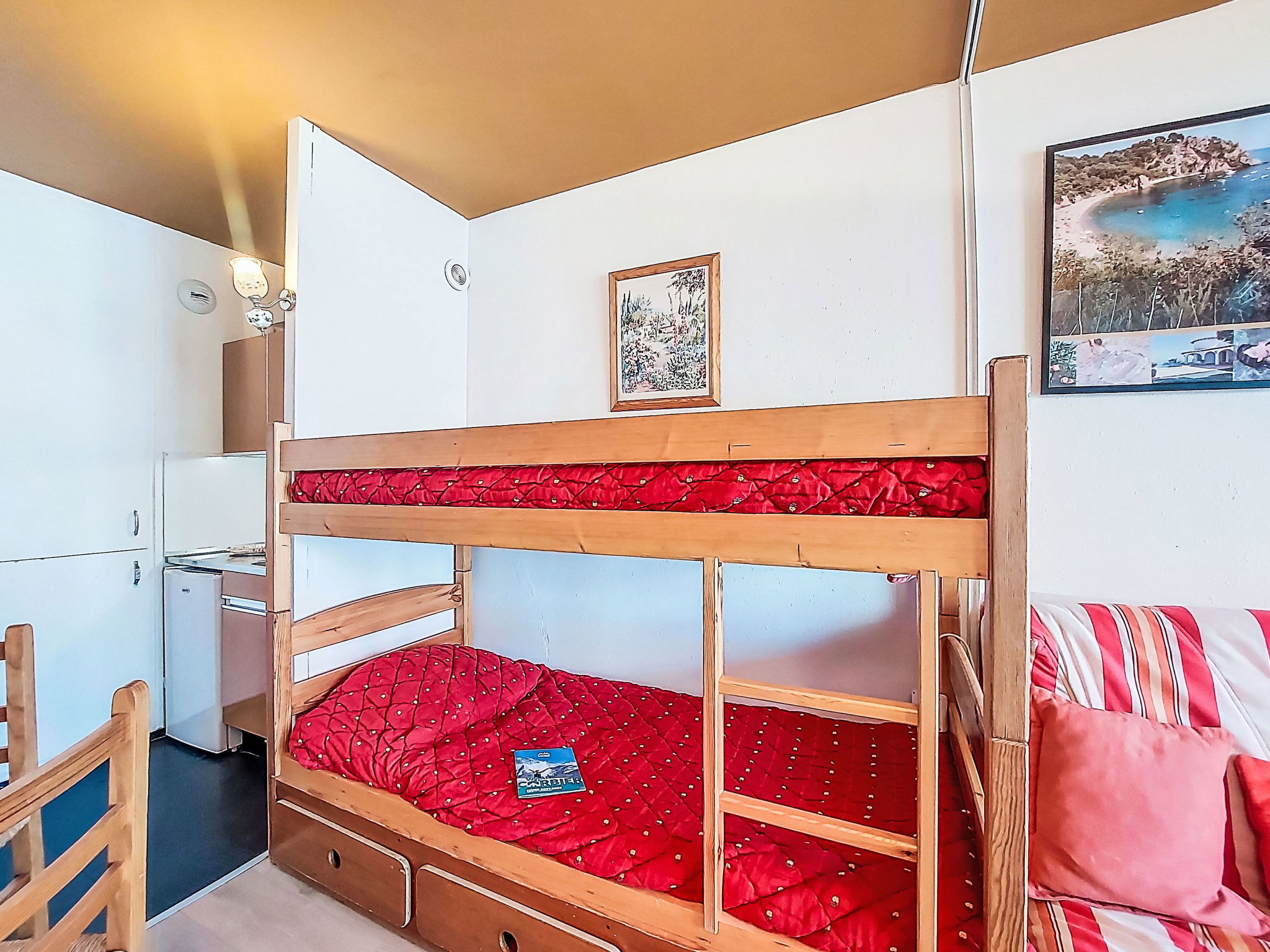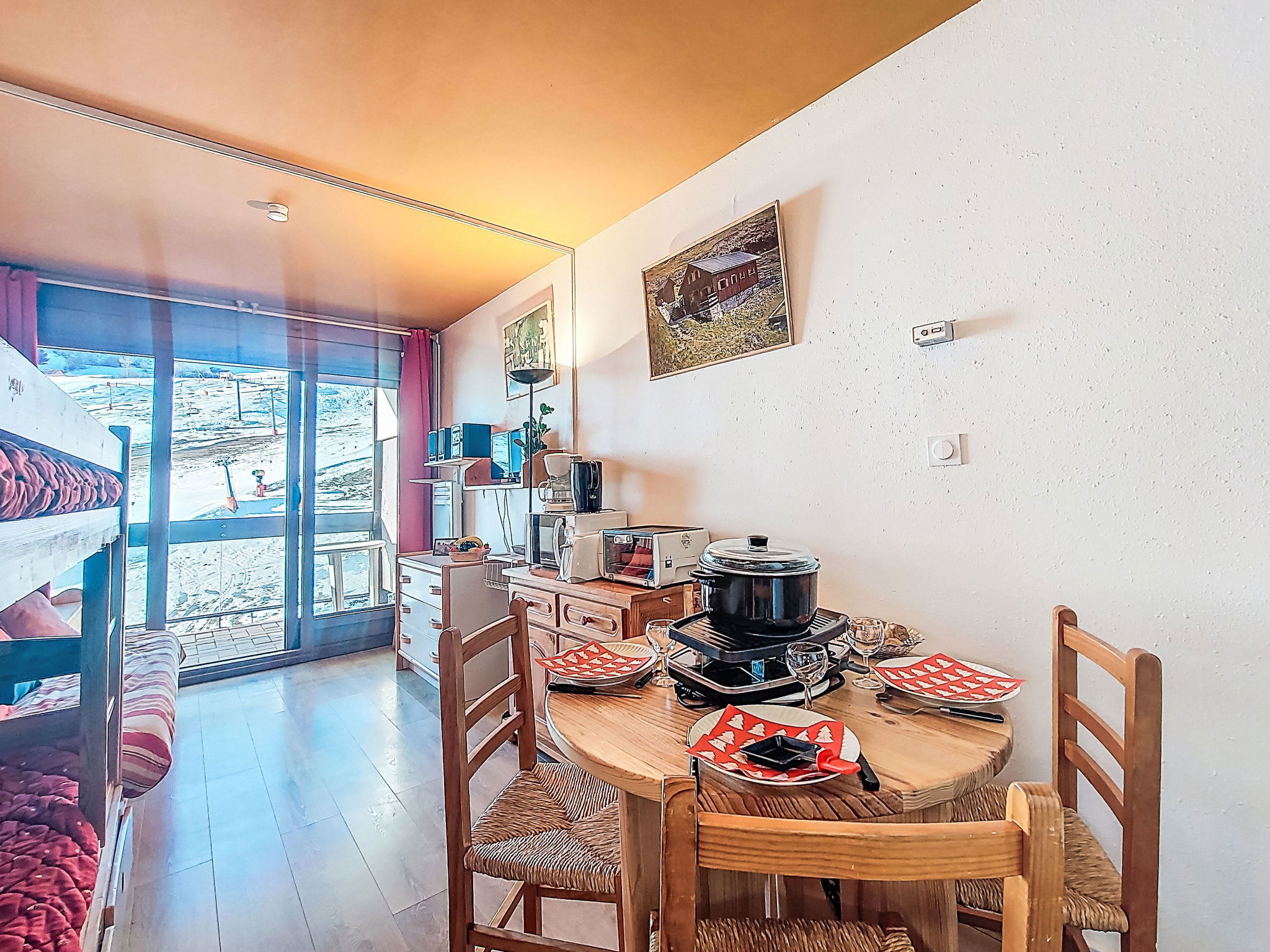 Studio 23 m2 au 5ème étage, situation sud. Aménagement simple: séjour/chambre à coucher avec 1 divan-lit double (130 cm, longueur 190 cm), 1 x 2 lits superposés (80 cm, longueur 190 cm), TV (écran plat), chaîne stéréo. Sortie sur le balcon. Coin cuisine (2 plaques de cuisson, mini-four, grille-pain, bouilloire électrique, micro-ondes, cafetière électrique, appareil à raclette, service à fondue (fondue au fromage)). Bain/WC. Chauffage électrique. Sol en parquet. Balcon 5 m2, situation sud. Mobilier de balcon. Très belle vue sur les montagnes et les pistes de ski. A disposition: fer à repasser, sèche-cheveux. Internet (Connexion WIFI, en sus). Veuillez noter: logement non-fumeur. Détecteur de fumée. Annonce d'un particulier (art 155, IV du CGI).