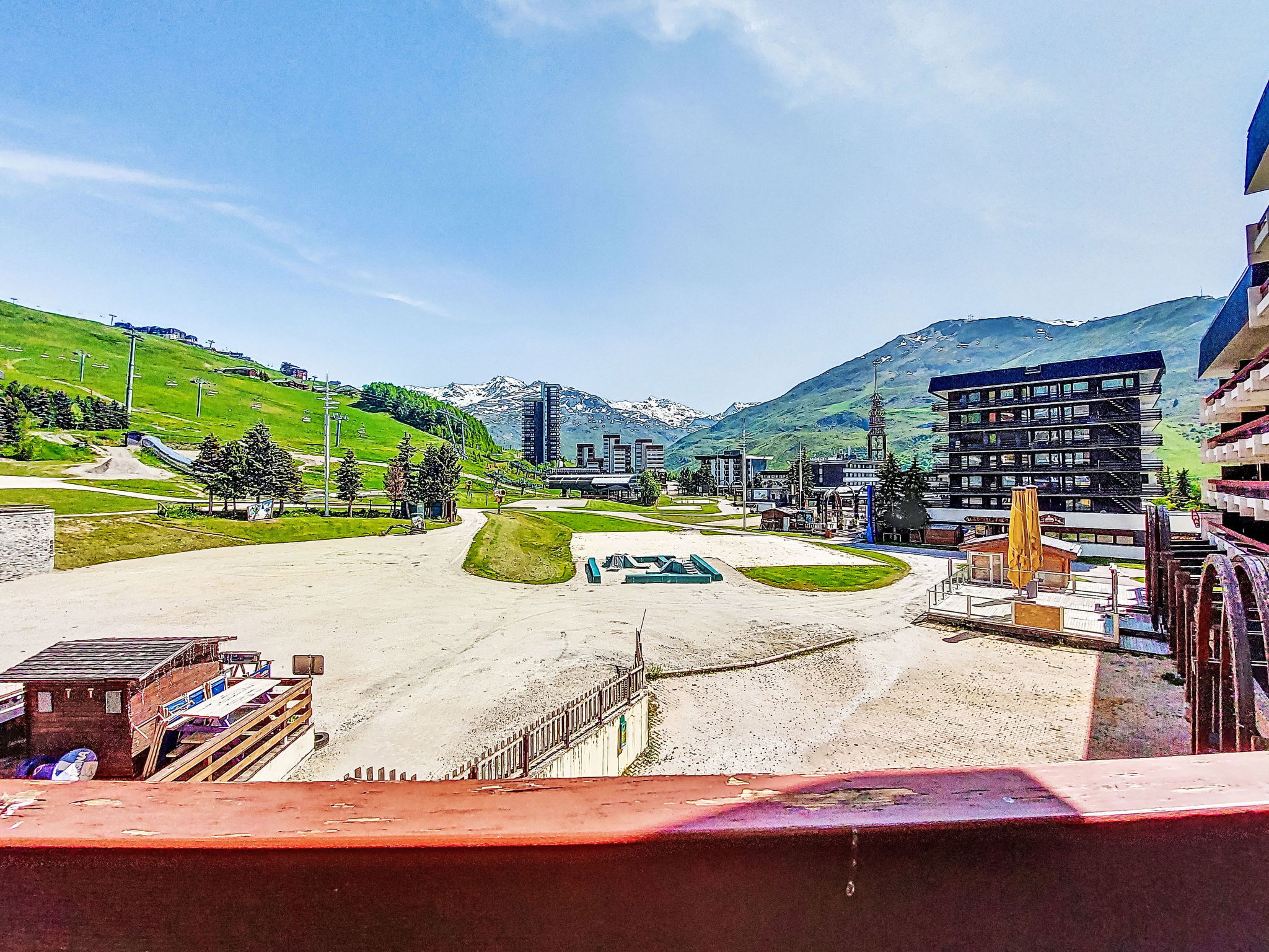 Résidence "Chavière", de 8 étages. Au centre de La Croisette, juste au bord du domaine skiable. Infrastructures de la résidence: ascenseur, local pour les skis, chauffage central. Parking public. Magasins, supermarché 10 m, arrêt de bus "Gare routière les menuires" 100 m. Centre sportif 30 m, remontées mécaniques, pistes de ski. École de ski 20 m, jardin d'enfants (hiver) 50 m. Les domaines skiables de renommée sont facilement accessibles: 3 Vallées. Veuillez noter: La photo ne montre qu’un exemple de location de vacances. D’autres appartements sont également proposés à la location dans cette maison de vacances.