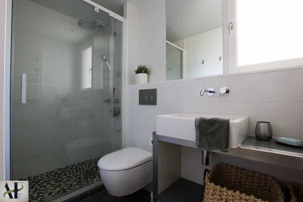EQUIPEMENTS : Machine à laver le Linge - Machine à laver la vaisselle - Petit Réfrigérateur- Réfrigérateur avec partie congélateur - Plaque 3 feux induction - Four électrique - Four micro onde - Cafetière Nespresso + cafetière électrique - Bouilloire électrique - Aspirateur - Fer à repasser - Table à repasser - Ecran plat - Lit bébé - Chaise haute - Station Bose -