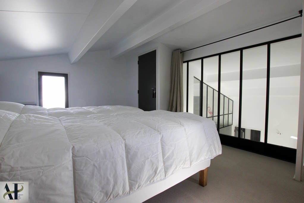 Séjour de 32,81 m² avec cuisine intégrée équipée - Une Chambre (derrière salon) de 11,04 m² avec 1 lit de 160, couette, placard avec penderie et étagères - Salle de Douche de 3,35 m², avec douche et lavabo et wc - Couloir de 4,93 m² - WC indépendant de 1,40 m² – Salle de bain de 3,55 m² avec baignoire, lavabo -Chambre de 9,44 m² avec 1 lit de 140, couette, placard avec penderie et étagères - Chambre de 10,10 m² avec 1 lit de 140, couette, placard avec penderie et étagères - En mezzanine (hauteur minimum 1,20 m et maxi 2,10 m) de 16,38 m² (dont 7,51 m² > 1,80 m) avec 2 lits de 90 x 200 (ou 1 lit de 180), couettes, placard (une partie fermée privé) (rideau occultant sur salon) - Cabane dans le jardin fermée privé -