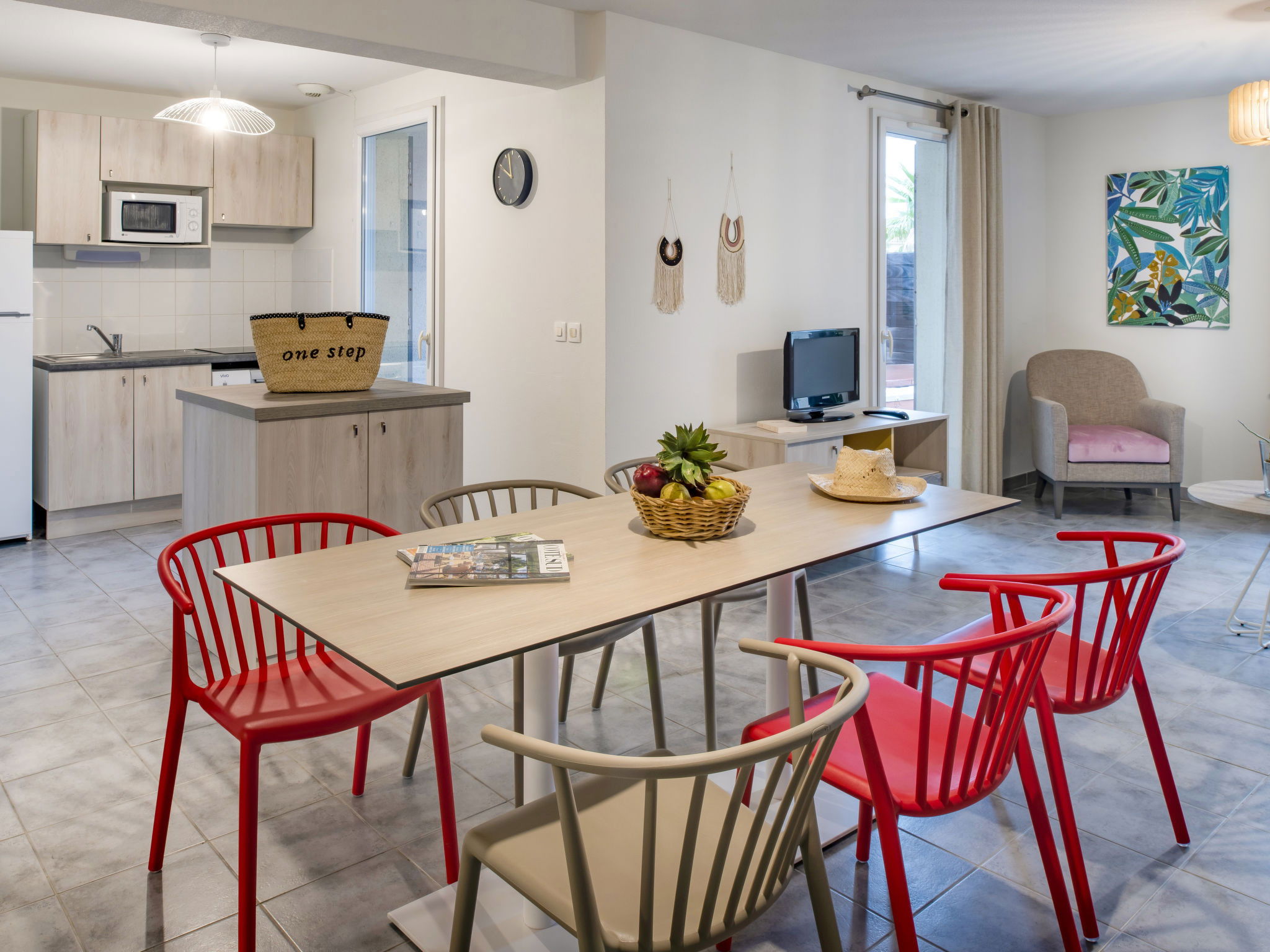 Complexe de vacances accueillant pour les enfants, moderne "Domaine du Golf". 220 maisons dans le même complexe de vacances. À 18 km du centre de Montpellier, à 2.5 km du centre de Fabrègues, à 16 km du centre de Palavas-les-Flots, à 12 km de la mer, dans la verdure, en bordure du terrain de golf. En commun: beau jardin entretenu, 11 ha (clôturé) avec pelouse et plantes, piscine cloturée (550 m2, profondeur 30 - 160 cm, disponibilité saisonnière: 15.Avr. - 30.Sep.). Piscine de forme irrégulière. Ping-pong, terrain de pétanque, terrasse, meubles de jardin, espace de jeux pour les enfants. Infrastructures de la résidence: réception, café, salle fitness, lave-linge, sèche-linge (en commun, en sus). Service boulangerie. Sentier jusqu'à la maison. Places de parking centrales. Supermarché 2 km, restaurant 2 km, plage de sable "Frontignan-Plage" 12 km. Terrain de golf (6 trous) 100 m. Veuillez noter: complexe de vacances sans voiture. Animation en saison. La photo ne montre qu’un exemple de location de vacances. Les locations peuvent également se différencier par leur superficie, la disposition des pièces et leur équipement.