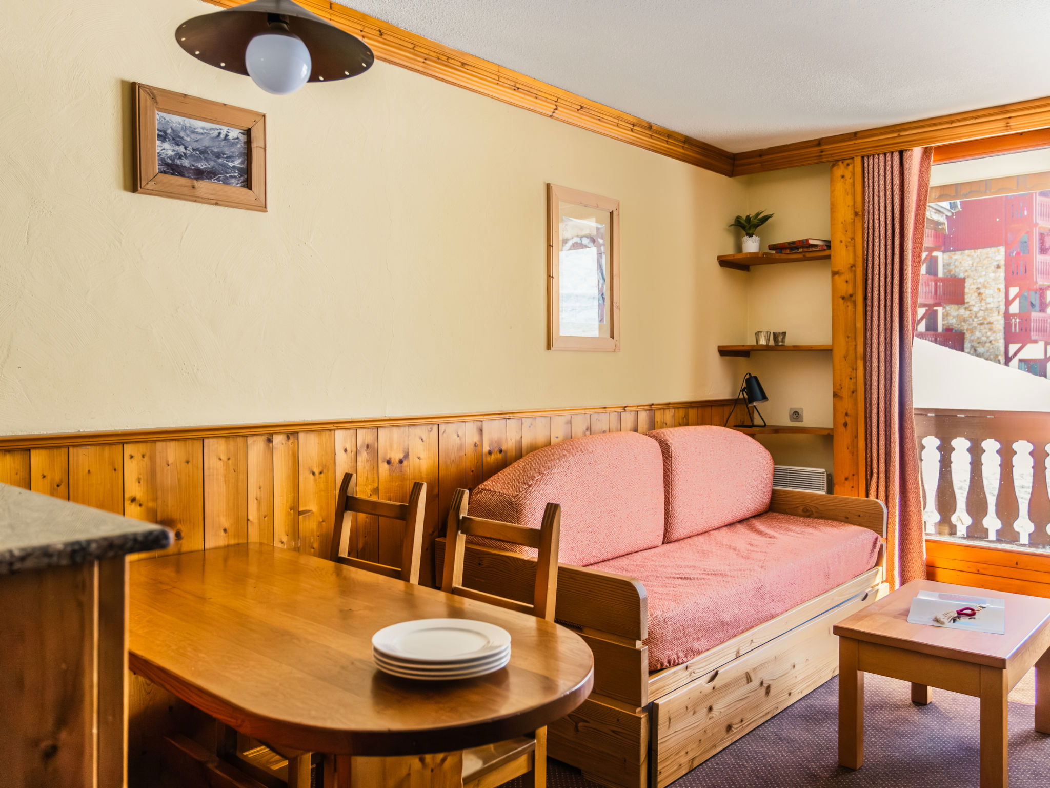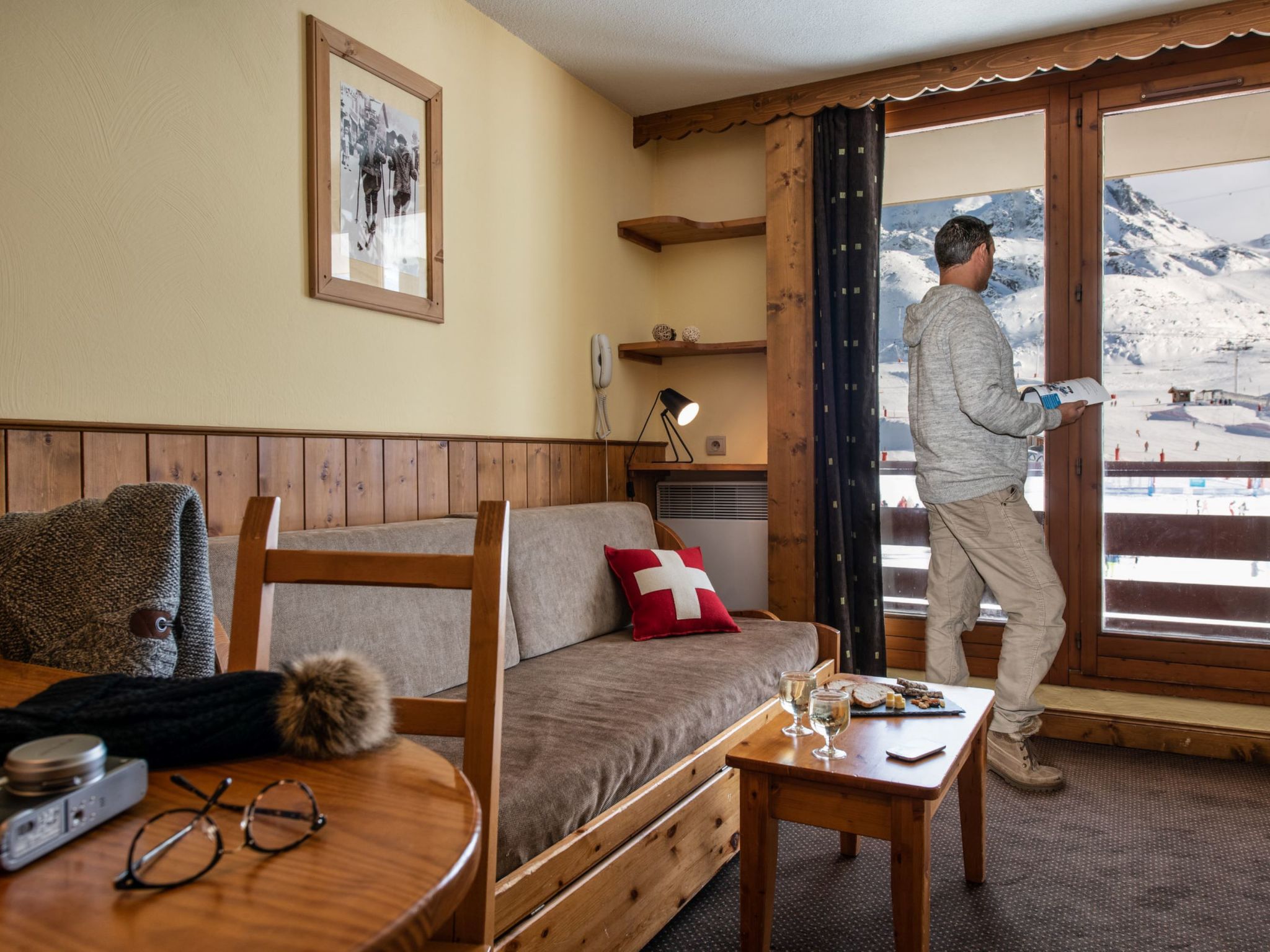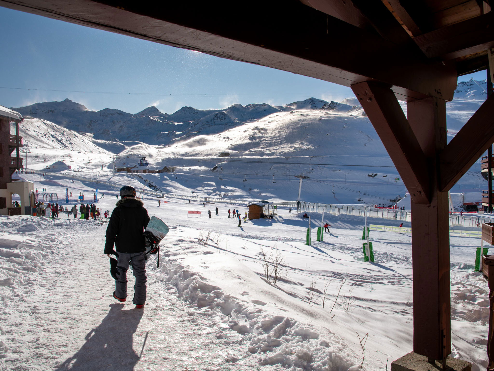Résidence hôtelière rustique "Le Cheval Blanc". Dans la localité Val Thorens, à 10 km du centre de Les Ménuires, situation ensoleillée sur un versant, juste au bord du domaine skiable. Infrastructures de la résidence: réception, restaurant, bar, local pour les skis. Garage en commun (en sus). Place de parking ou garage pour voiture de petite - moyenne dimension. Dimension: hauteur 195 cm. Magasins 300 m, restaurant 100 m, arrêt de bus 500 m. Centre sportif 600 m, téléski, pistes de ski, location de ski 50 m. Les domaines skiables de renommée sont facilement accessibles: Les 3 Vallées. Veuillez noter: En cas de bonnes conditions d'enneigement, accès à ski jusqu'à la maison. Déchargement et chargement des bagages à la location de vacances. La photo ne montre qu’un exemple de location de vacances. Les locations peuvent également se différencier par leur superficie, la disposition des pièces et leur équipement. Veuillez noter: au moins un voyageur par appartement réservé doit être âgé d'au moins 18 ans.