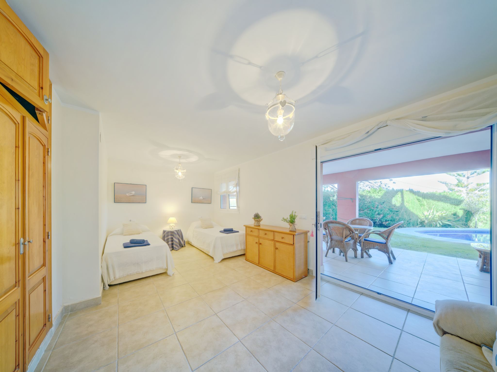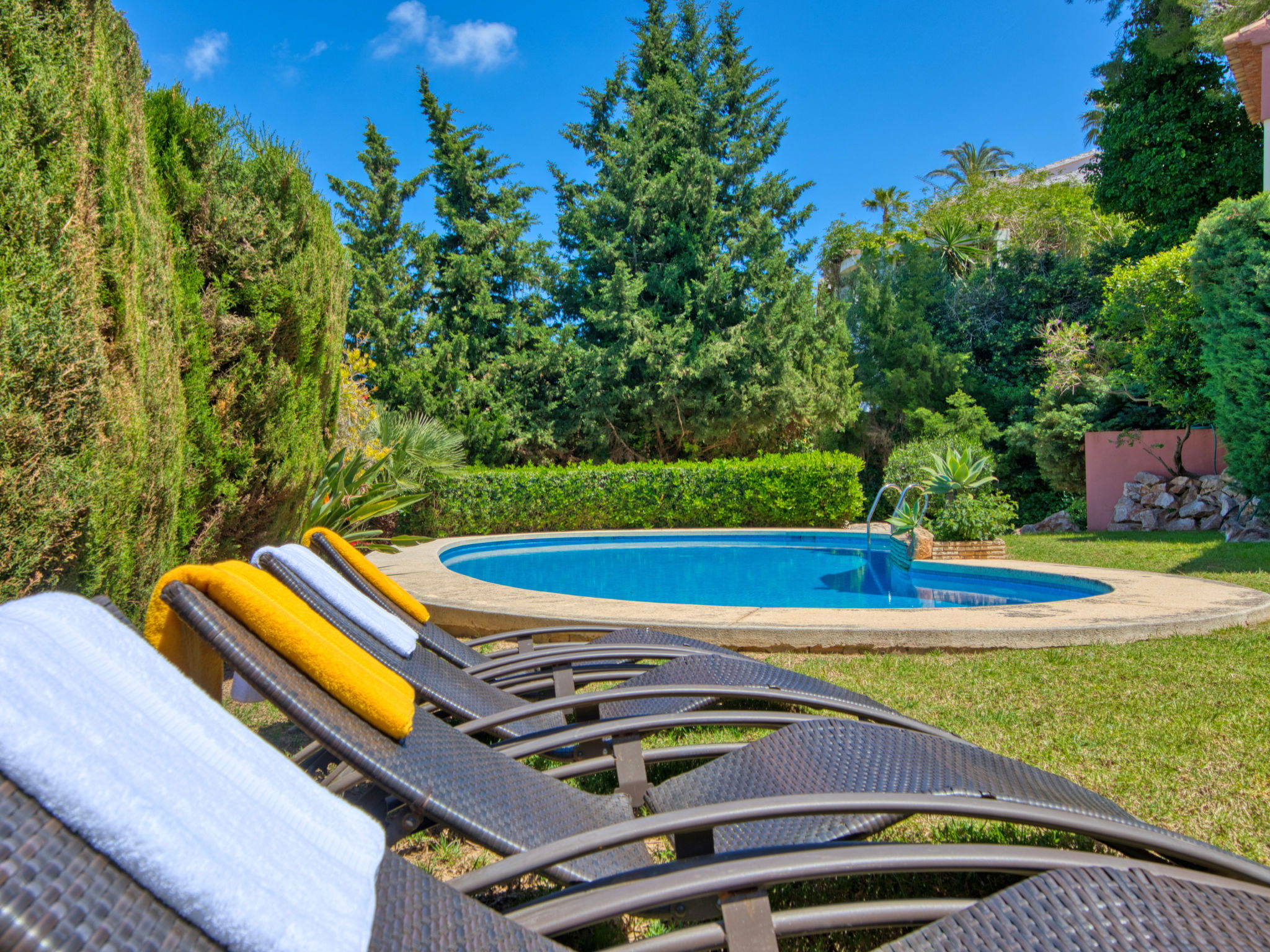 Belle, grande villa "Chill Out on the Sea". Dans le quartier de Cap Marti, dans la localité Jávea, situation tranquille, ensoleillée, à 2 km de la mer. A usage privé: jardin 1'000 m2 (clôturé) avec pelouse et arbres, piscine (11 x 5 m, profondeur 120 - 180 cm, disponibilité saisonnière: 01.Jan. - 31.Dec.). Meubles de jardin, place de parking (pour 2 voitures) sur le terrain. Supermarché 1.8 km, restaurant 1.5 km, boulangerie 1.5 km, café 1.4 km, arrêt de bus 2 km, plage de sable "El Arenal" 2 km, plage de galets "La Granadella" 6 km. Port plaisance 3.5 km, marina 2 km, terrain de golf (9 trous) 5 km, ecole de voile 2 km, tennis 2.1 km. Veuillez noter: voiture recommandée. Le propriétaire n'accepte pas les groupes de jeunes.