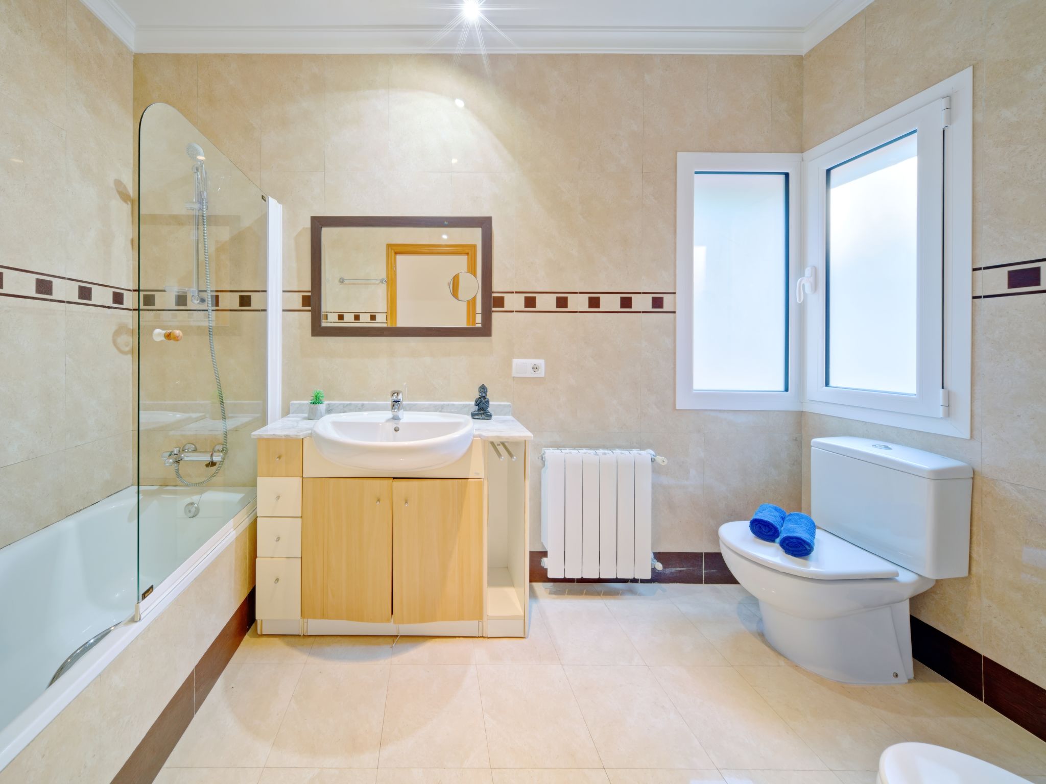 Villa 5 pièces 280 m2. Spacieux et clair, aménagement confortable et agréable: séjour/salle à manger avec cheminée, Télévision numérique et ventilateur. Sortie sur la terrasse. 1 chambre avec 1 grand-lit (150 cm, longueur 190 cm), bain/bidet/WC et air-conditionné. 1 chambre avec 2 lits (90 cm, longueur 180 cm), air-conditionné. Cuisine (four, lave-vaisselle, 4 plaques vitrocéramiques, micro-ondes, congélateur, cafetière électrique). Sortie sur la terrasse. Douche/WC. À l'étage inférieur: 1 chambre avec 1 grand-lit (140 cm, longueur 180 cm), air-conditionné. Sortie sur la terrasse, sur la piscine. 1 chambre avec 2 lits (90 cm, longueur 180 cm), air-conditionné. Sortie sur la terrasse, sur la piscine. Douche/WC. Meubles de terrasse, barbecue, chaises longues (8). Très belle vue sur la mer, les alentours et la baie. A disposition: lave-linge, fer à repasser, chaise haute pour enfant, lit bébé, sèche-cheveux. Internet (Connexion WIFI, gratuit). Place de parking (cloturée, 2 Voitures) près de la maison. Adapté(e) aux familles. AT-468481-A // Reg. Nr.: ESFCTU00000307100024292600000000000000000AT-468481-A9