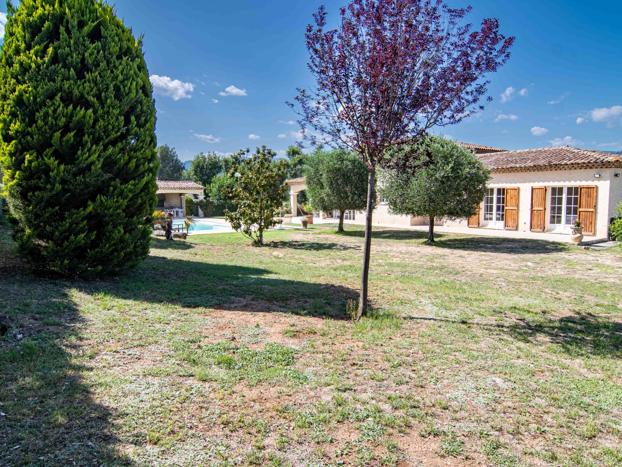 Beau cottage rustique, confortable "Gaïa", environné par les arbres et prés. À 3 km du centre de Callian, à 6 km du centre de Fayence, à 36 km du centre de Cannes, dans un quartier résidentiel, à 26 km de la mer. A usage privé: grand jardin sur plusieurs niveaux 3'000 m2 (clôturé) avec pelouse et arbres, piscine (11 x 5 m, profondeur 90 - 200 cm, disponibilité saisonnière: 01.Jan. - 31.Dec.) avec marches intérieures et alarme de sécurité. Piscine de forme irrégulière. Pool house, terrasse, meubles de jardin. Accès en voiture (100 m chemin non goudronné). (10 marches). Place de parking (pour 4 voitures) sur le terrain. Magasins 3 km, arrêt de bus 800 m, gare ferroviaire "Cannes" 39 km, plage de sable "Mandelieu" 26 km. Terrain de golf (18 trous) 3.5 km. Attractions à proximité: Aérodrome de Fayence 6 km. Les lacs connus sont facilement accessibles: Saint Cassien 7.5 km.