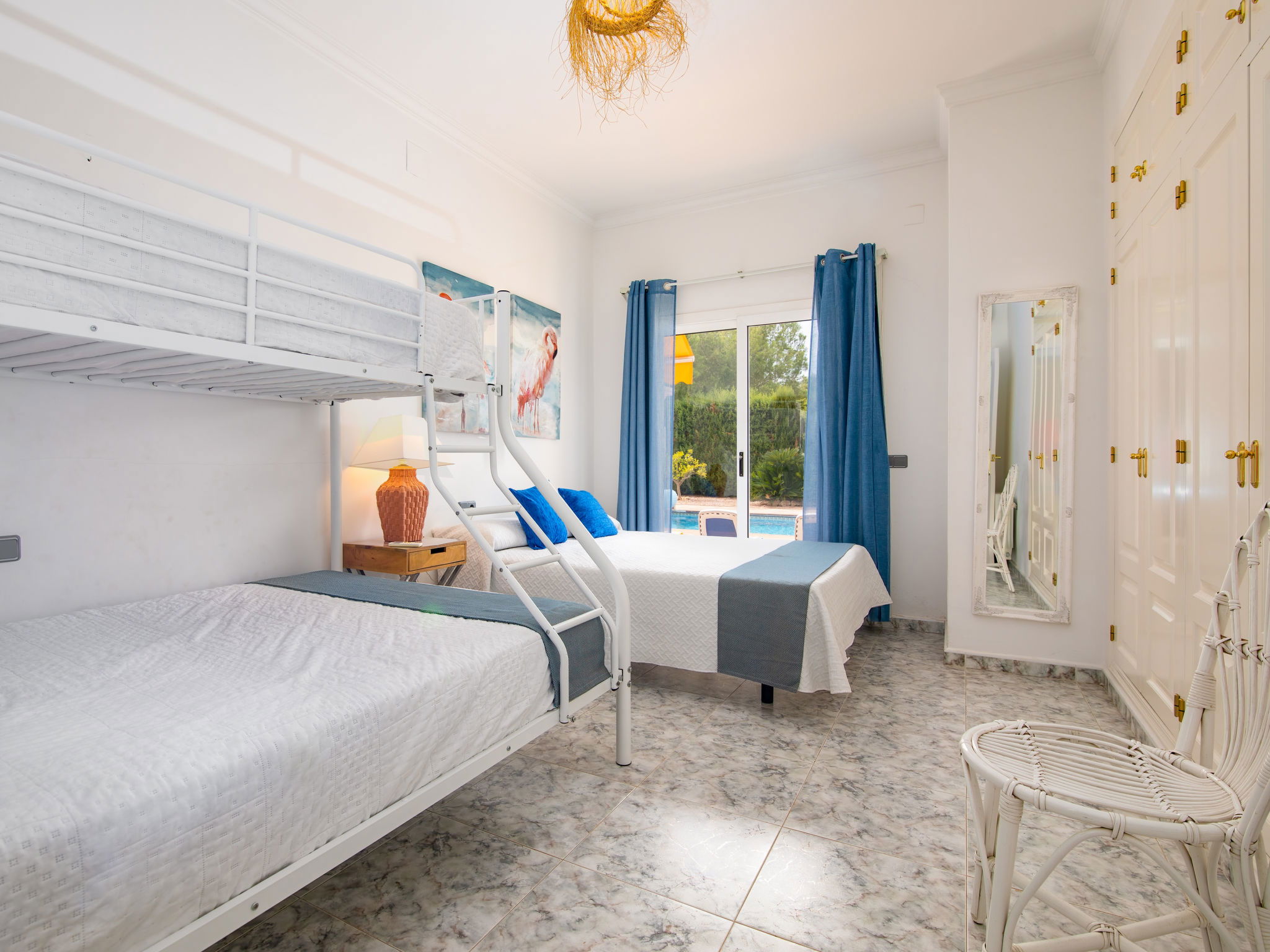 Belle, grande villa confortable "Mamounia 2". Dans le quartier de Portitxol, situation tranquille, ensoleillée, à 1 km de la mer, à 2 km de la plage. A usage privé: terrain (clôturé), piscine rectangulaire, chauffée (10 x 5 m, profondeur 110 - 210 cm, disponibilité saisonnière: 01.Jan. - 31.Dec.) avec marches intérieures. Douche extérieure, pool house avec réfrigérateur, pergola, meubles de jardin, barbecue. Infrastructures de la Maison: chauffage central. Place de parking (pour 3 voitures) sur le terrain. Magasins 600 m, supermarché 1.8 km, restaurant 70 m, bar, boulangerie 600 m, arrêt de bus 500 m, plage de sable "El Arenal" 5 km, plage de galets "La Granadella" 4.2 km, plage de rochers "La Barraca" 2 km. Ecole de surf 2 km, tennis 2 km. Le propriétaire n'accepte pas les groupes de jeunes.
