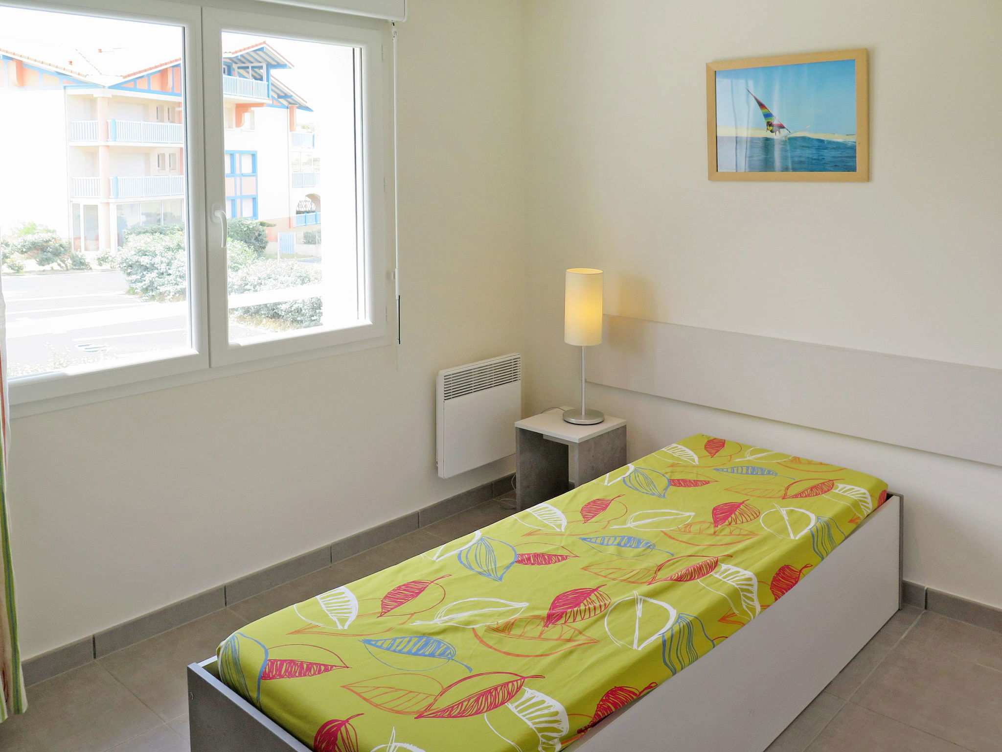 "Résidence Lagocéan T3 Classic", Appartement de 3 pièces 46 m2. Logement idéal pour 2 adultes + 2 enfants. Aménagement fonctionnel: séjour/chambre à coucher avec 1 divan-lit double, table pour les repas et TV. 1 chambre avec 1 grand-lit " 1.1 km, plage de sable 300 m, baignade en lac "Lac Marin de Port d'Albret" 750 m. Terrain de golf (18 trous) 10 km, tennis 500 m. Le propriétaire n'accepte pas les groupes de jeunes. Veuillez noter: La photo ne montre qu’un exemple de location de vacances. Les locations peuvent également se différencier par leur superficie, la disposition des pièces et leur équipement.