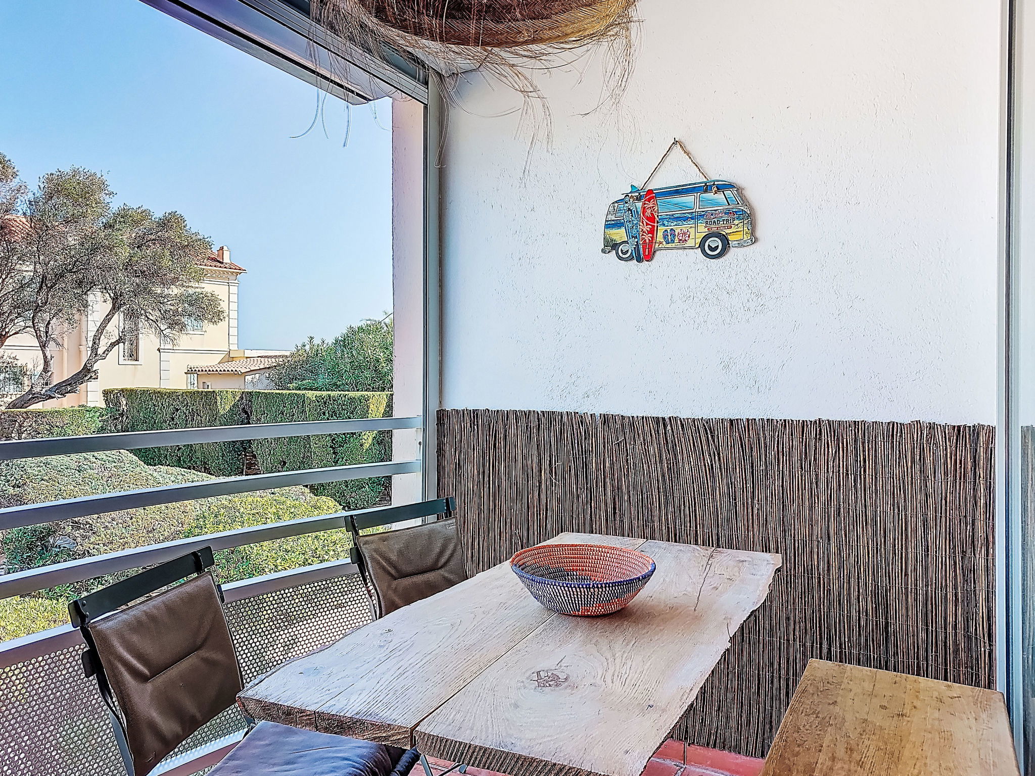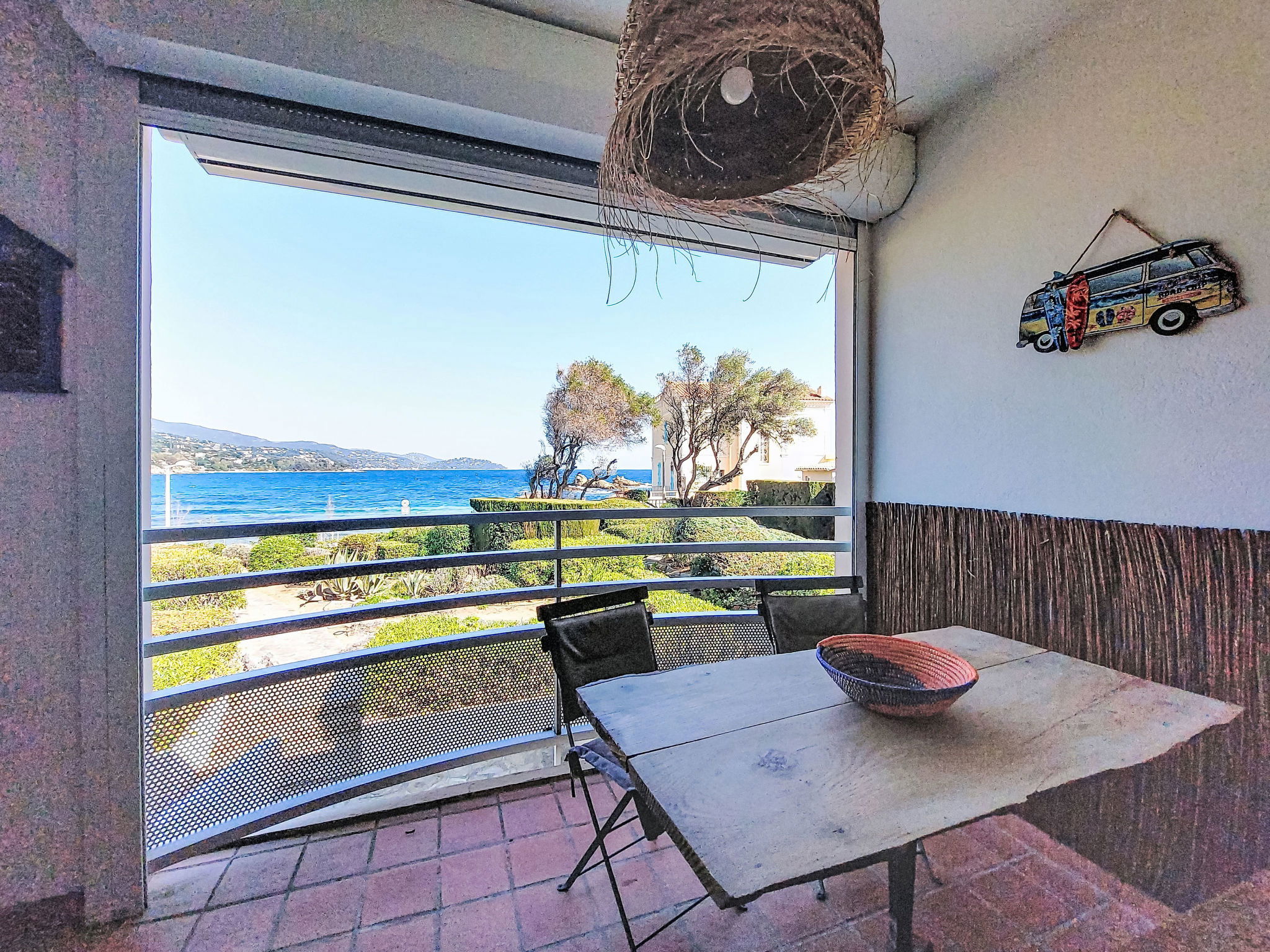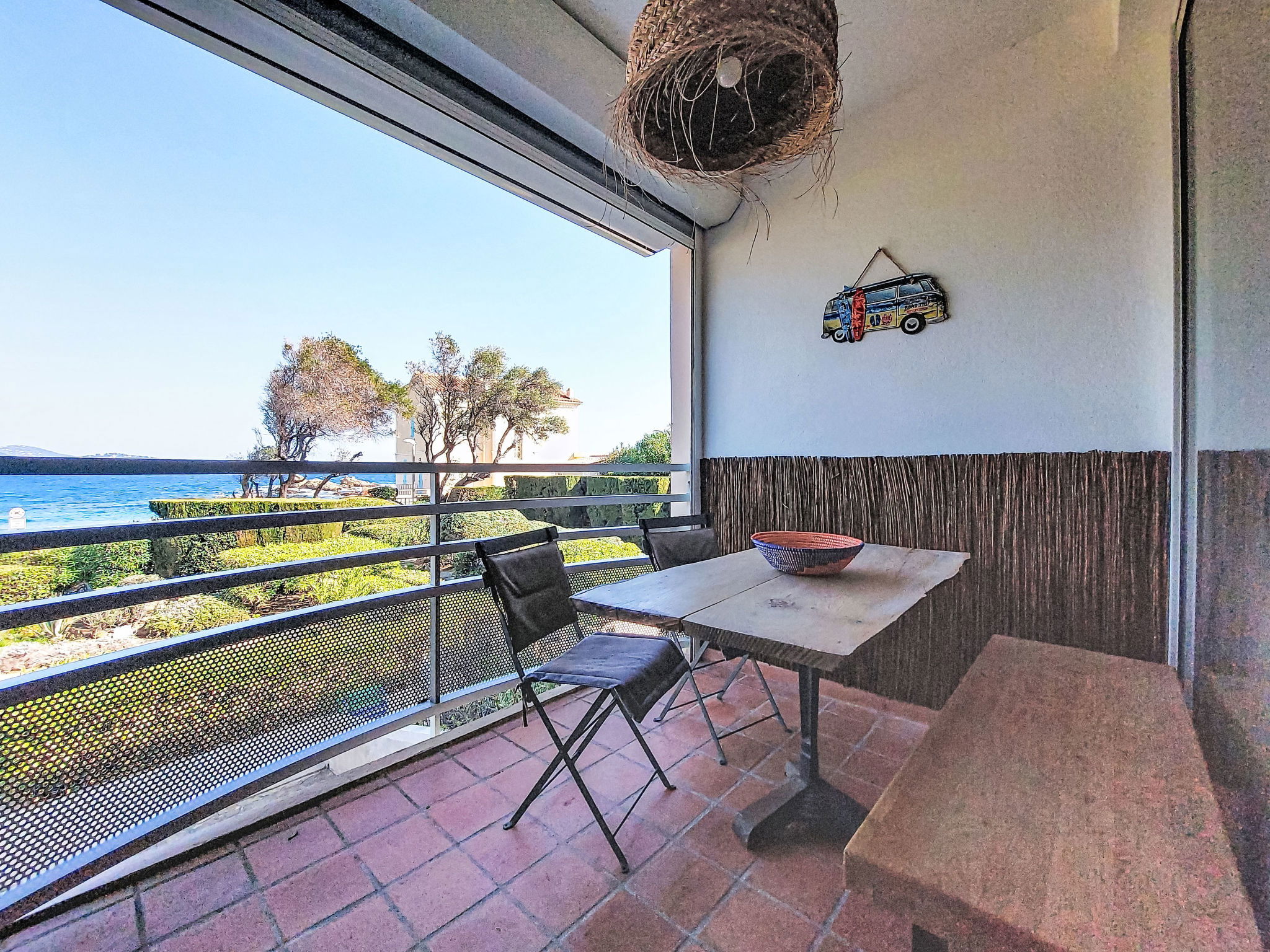 Résidence "L'Estelan", de 2 étages. Dans le quartier de Saint Clair, dans la localité, à 1 km du centre de Le Lavandou, à 30 m de la mer, à 30 m de la plage. En commun: jardin (clôturé). Sentier en escalier (25 marches) jusqu'à la maison. Magasins, magasin d'alimentation 200 m, supermarché 1.5 km, restaurant, bar, boulangerie 200 m, arrêt de bus "Lavandou Gare routière" 1.2 km, plage de sable "Saint Clair" 30 m. Port plaisance 1 km, golf miniature 2.5 km. Attractions à proximité: Magic World 27 km, Parc Olbius Riquier 23 km, Saint Tropez 36 km, Le Jardin des Méditerranées 13 km. Veuillez noter: sans ascenseur. La remise des clés a lieu à l’agence de Le Lavandou, 3 km.