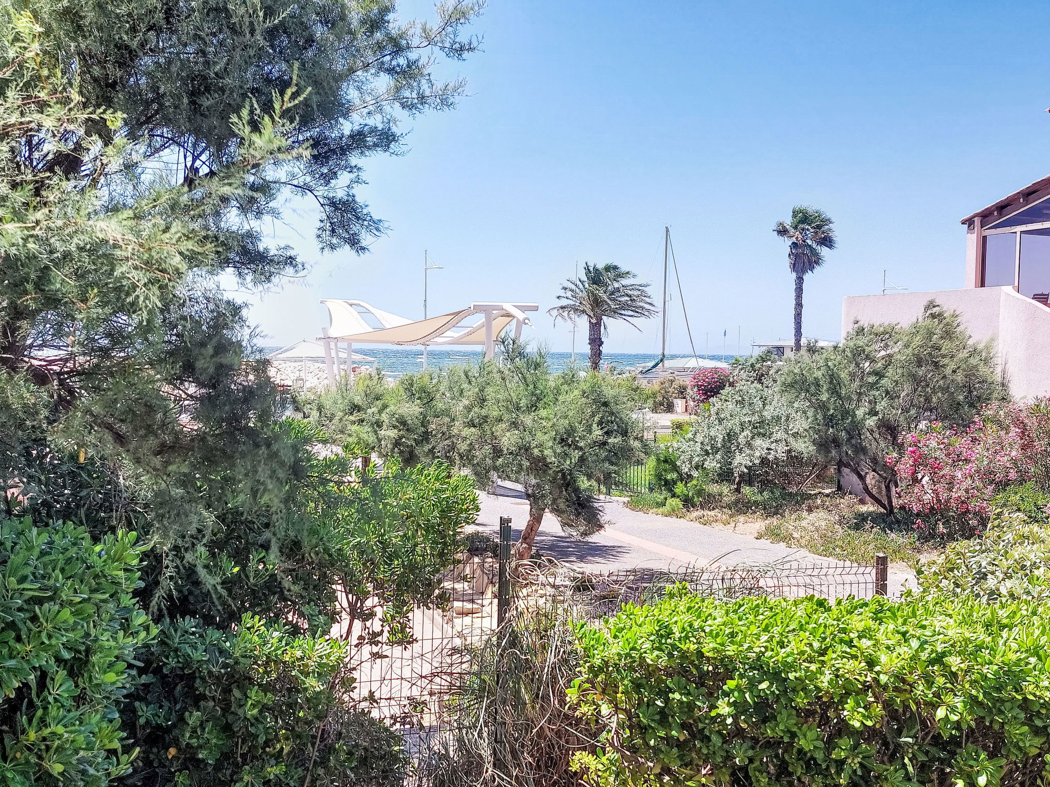 Appartement de 3 pièces 45 m2, au rez-de-chaussée. Aménagement fonctionnel et agréable: séjour/salle à manger avec 1 lit (80 cm, longueur 190 cm), TV (écran plat). Sortie sur la terrasse. Cabine avec 1 x 2 lits superposés (80 cm, longueur 190 cm). 1 chambre avec 1 grand-lit (140 cm, longueur 190 cm). Coin cuisine (lave-vaisselle, 4 plaques vitrocéramiques, grille-pain, bouilloire électrique, micro-ondes, congélateur, cafetière électrique). Salle de bains, douche/WC. Chauffage électrique. Terrasse 7 m2, couverte, situation ouest, petit jardinet 3 m2, situation ouest. Meubles de terrasse. Vue éloignée sur la mer. A disposition: Internet (Connexion WIFI, en sus). Place de parking No 401 (Niveau 1) (couvert), hauteur 190 cm, largeur 230 cm. Veuillez noter: maximum 1 animal/ chien autorisé. TV seulement FR. Détecteur de fumée. Le jardinet n'est pas clôturé. Au lieu d'une chambre fermée, des espaces de couchage sont situés dans une zone ouverte (galerie, alcôve...).