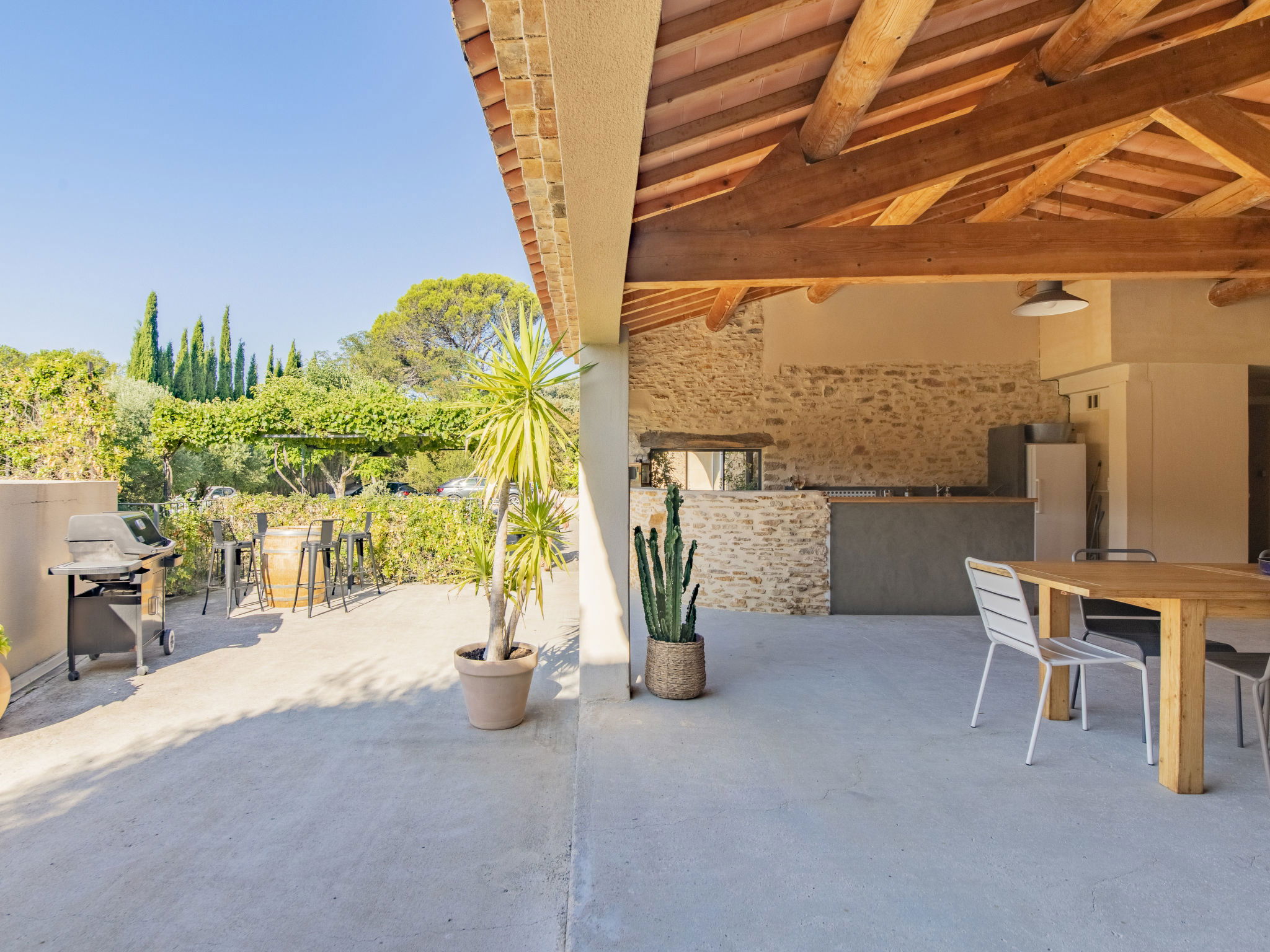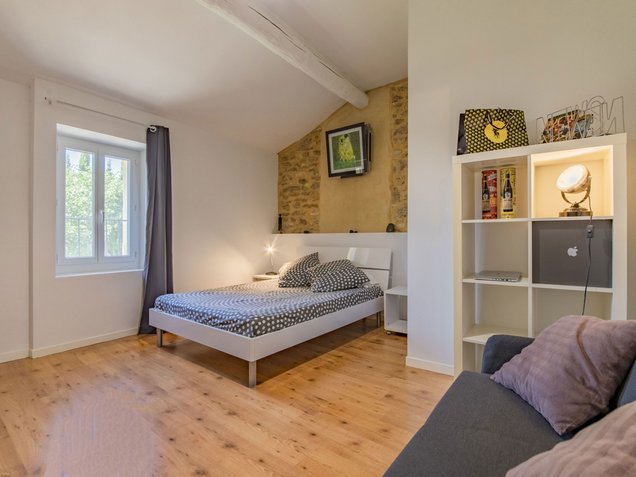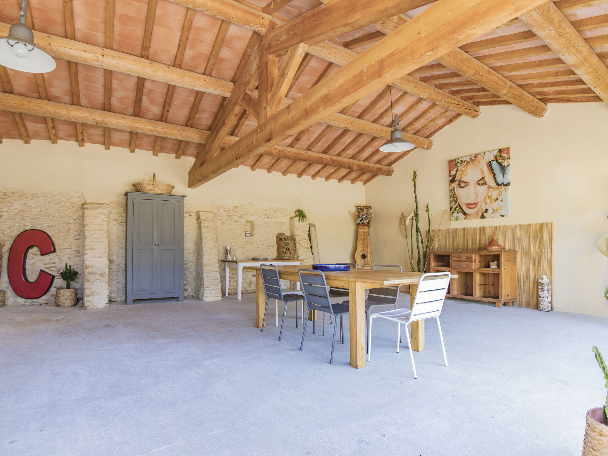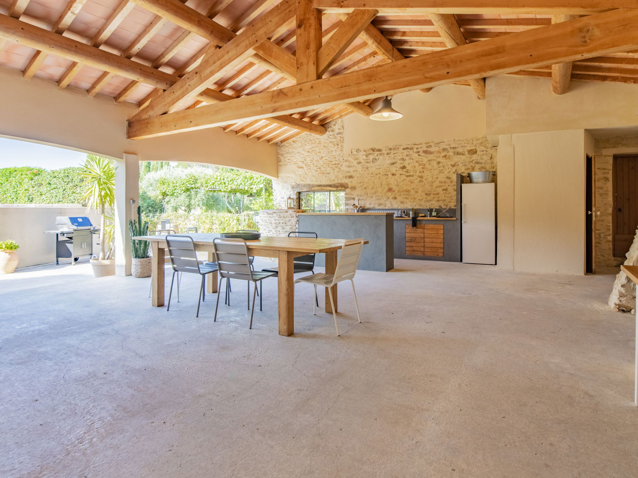 Mas "Le Mas des Buis", renové en 2016. Dans la localité, à 1.5 km du centre d'Uchaux. A usage privé: terrain 4'500 m2 (clôturé), piscine (10 x 5 m, profondeur 140 - 140 cm, disponibilité saisonnière: 01.Jun. - 30.Sep.). Change de linge 1 fois par semaine. Changementde linge de toilette 1 fois par semaine. Nettoyage 1 fois par semaine (inclus). Place de parking sur le terrain. Magasins 1.5 km, supermarché 5 km, restaurant 500 m, boulangerie 150 m, arrêt de bus "Centre Serignan du Comtat" 4.3 km. Attractions à proximité: Orange 8 km, Vaison la Romaine 32 km, Avignon 41 km, Mont Ventoux 62 km. Veuillez noter: voiture recommandée. Adapté(e) aux familles. Pool-house de 80m² avec cuisine d'été complète (réfrigirateur, plaques de cuisson, barbecue) et WC.
