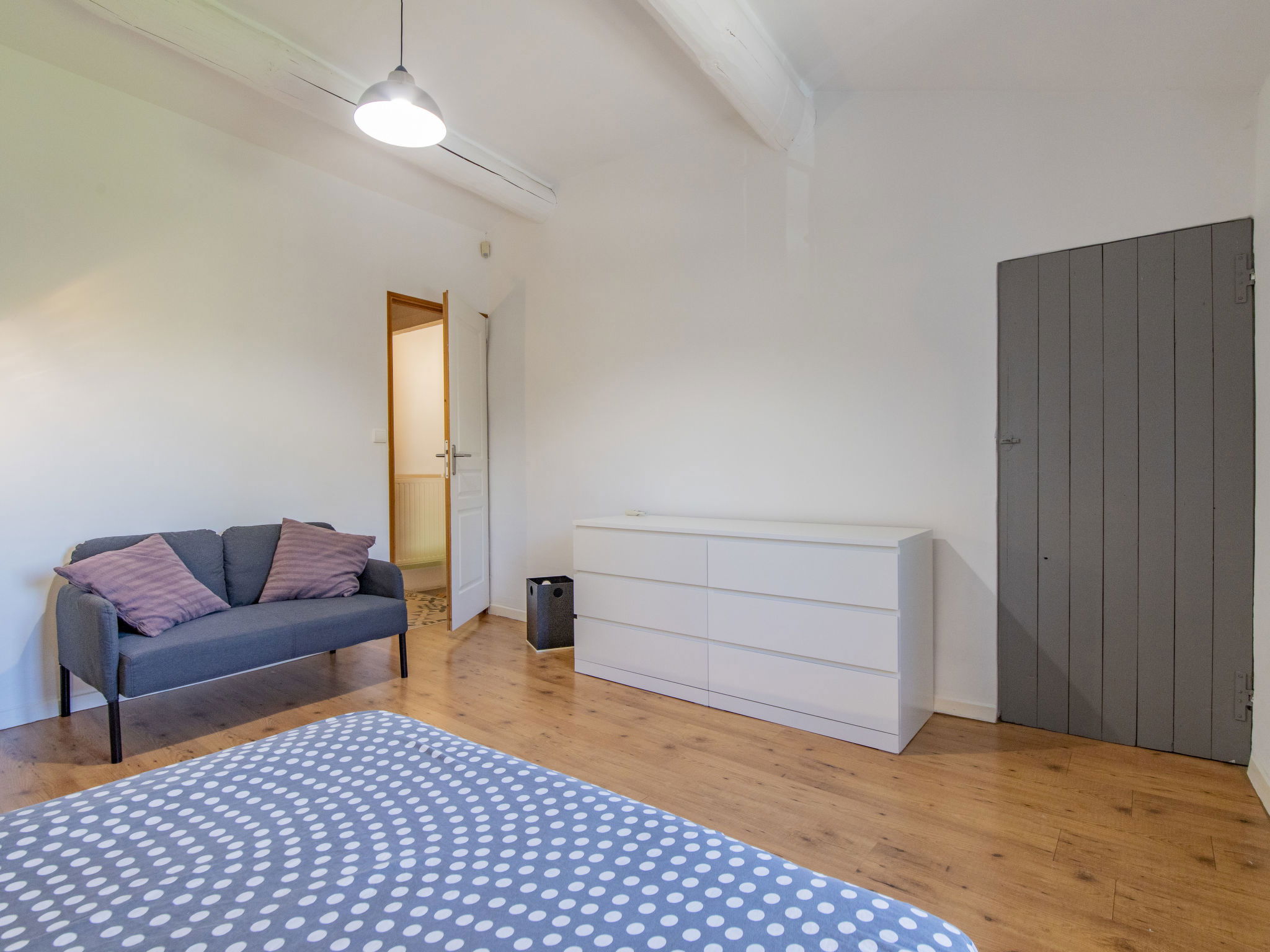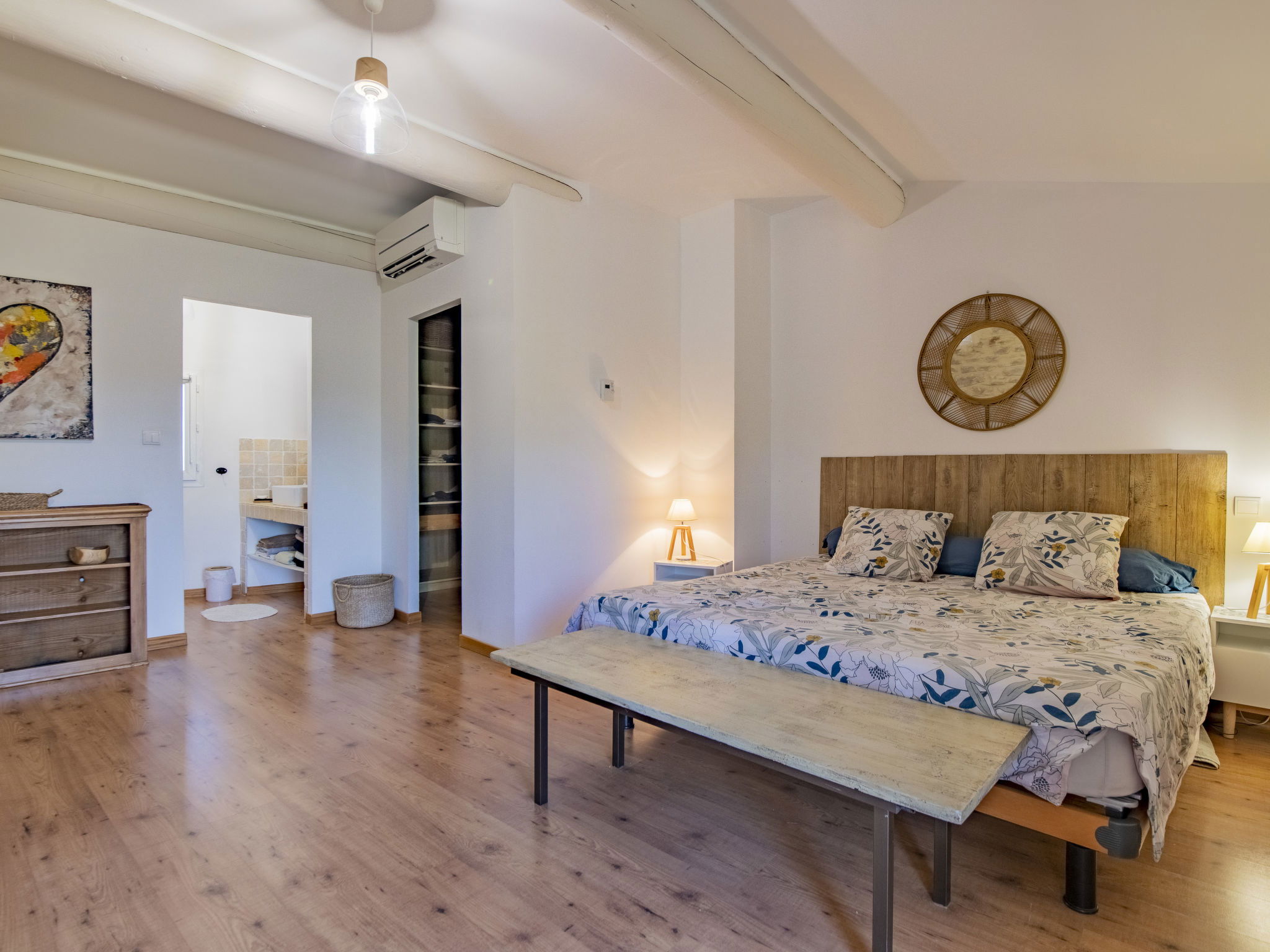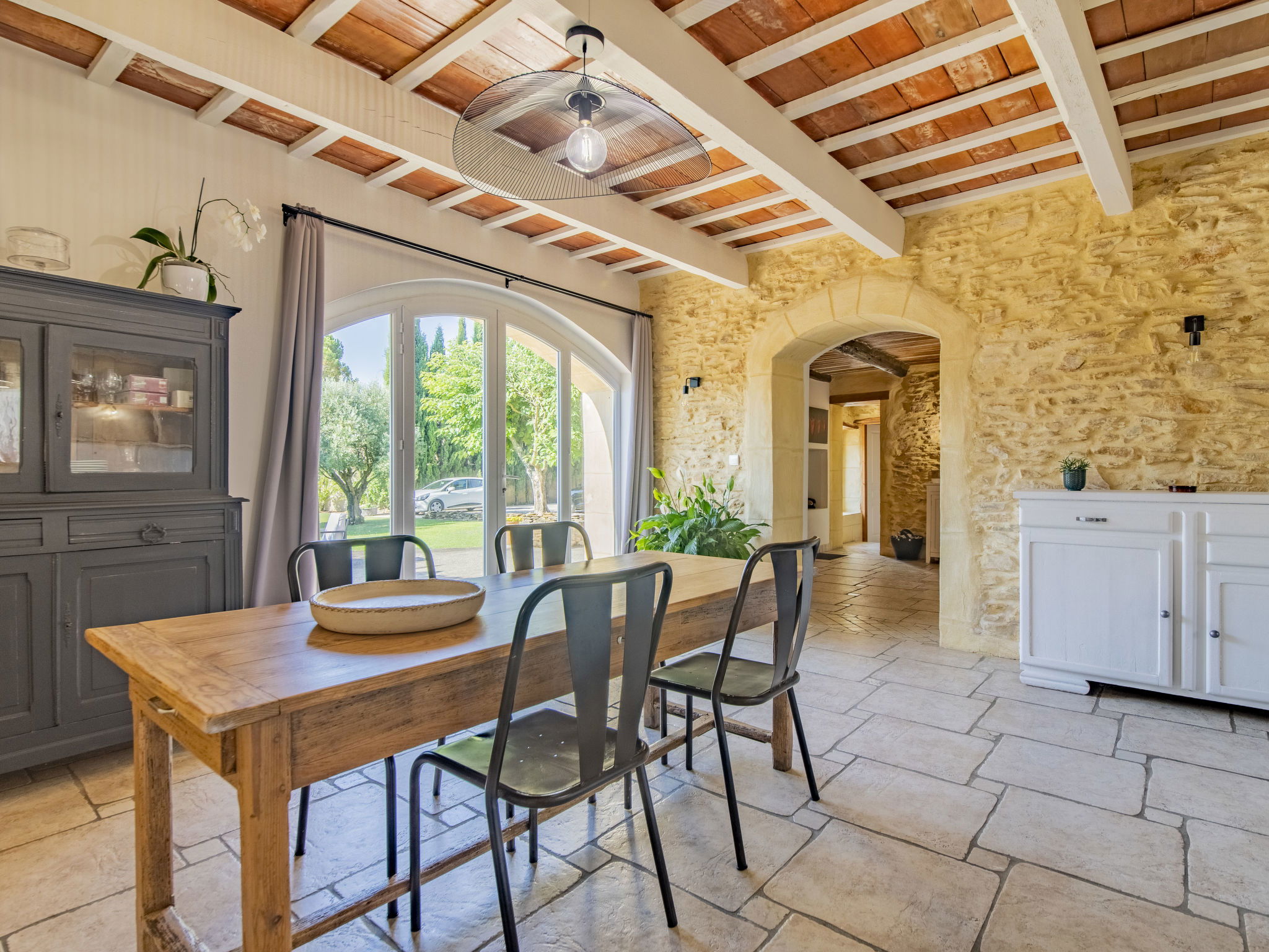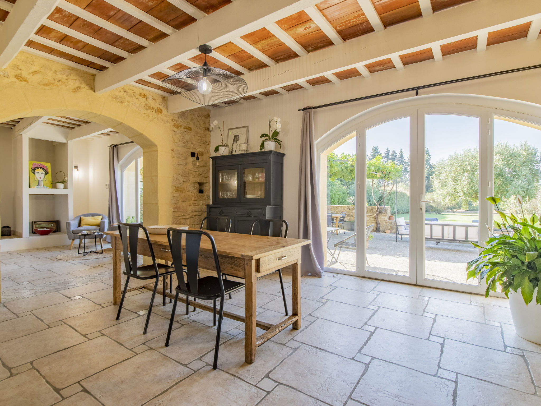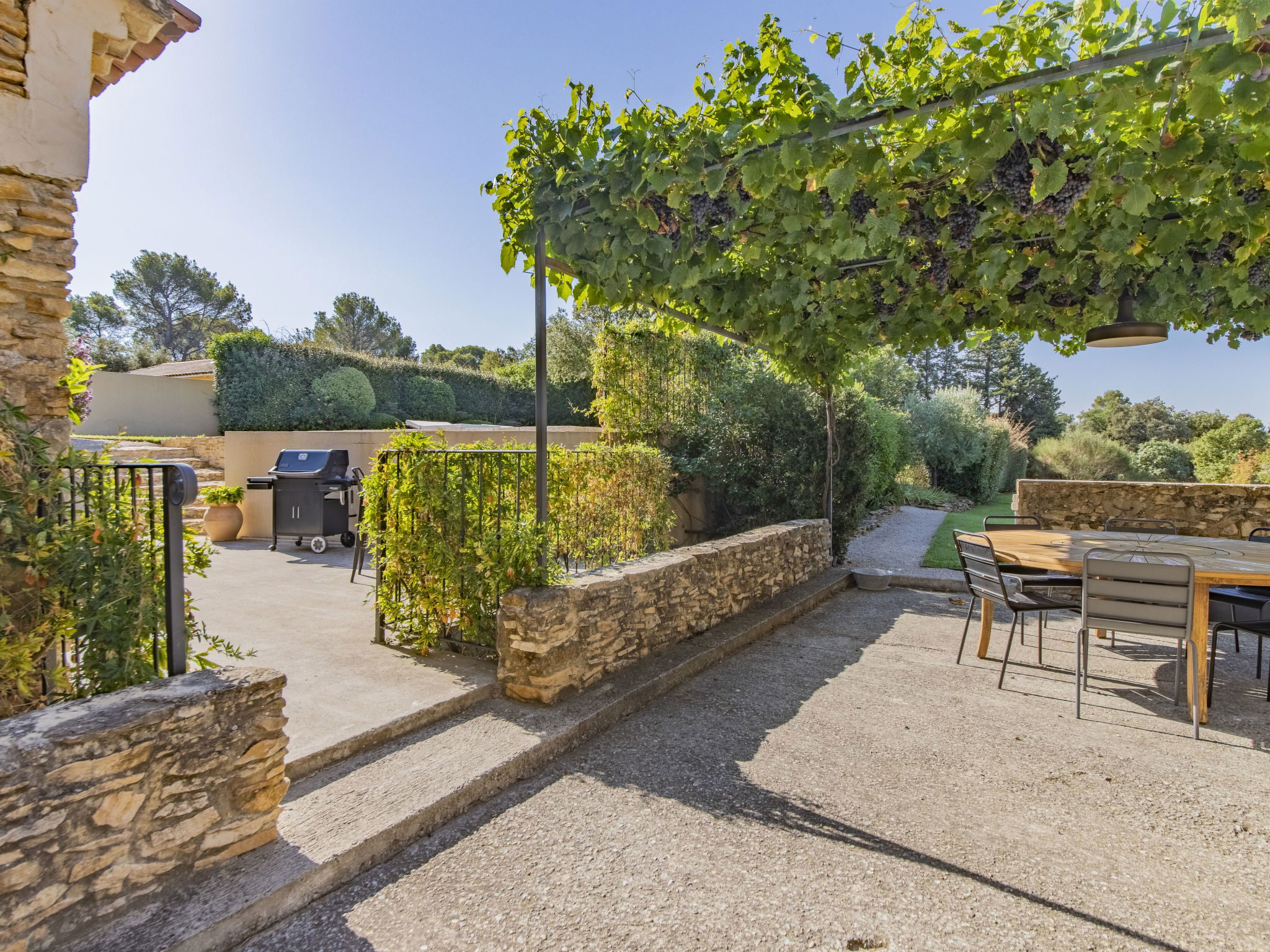 Mas "Le Mas des Buis", renové en 2016. Dans la localité, à 1.5 km du centre d'Uchaux. A usage privé: terrain 4'500 m2 (clôturé), piscine (10 x 5 m, profondeur 140 - 140 cm, disponibilité saisonnière: 01.Jun. - 30.Sep.). Change de linge 1 fois par semaine. Changementde linge de toilette 1 fois par semaine. Nettoyage 1 fois par semaine (inclus). Place de parking sur le terrain. Magasins 1.5 km, supermarché 5 km, restaurant 500 m, boulangerie 150 m, arrêt de bus "Centre Serignan du Comtat" 4.3 km. Attractions à proximité: Orange 8 km, Vaison la Romaine 32 km, Avignon 41 km, Mont Ventoux 62 km. Veuillez noter: voiture recommandée. Adapté(e) aux familles. Pool-house de 80m² avec cuisine d'été complète (réfrigirateur, plaques de cuisson, barbecue) et WC.