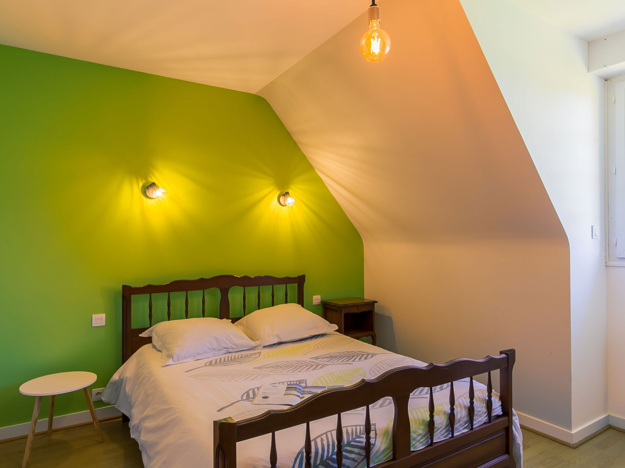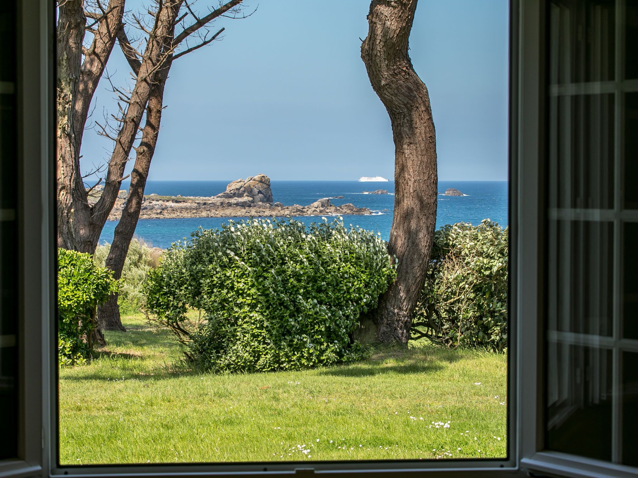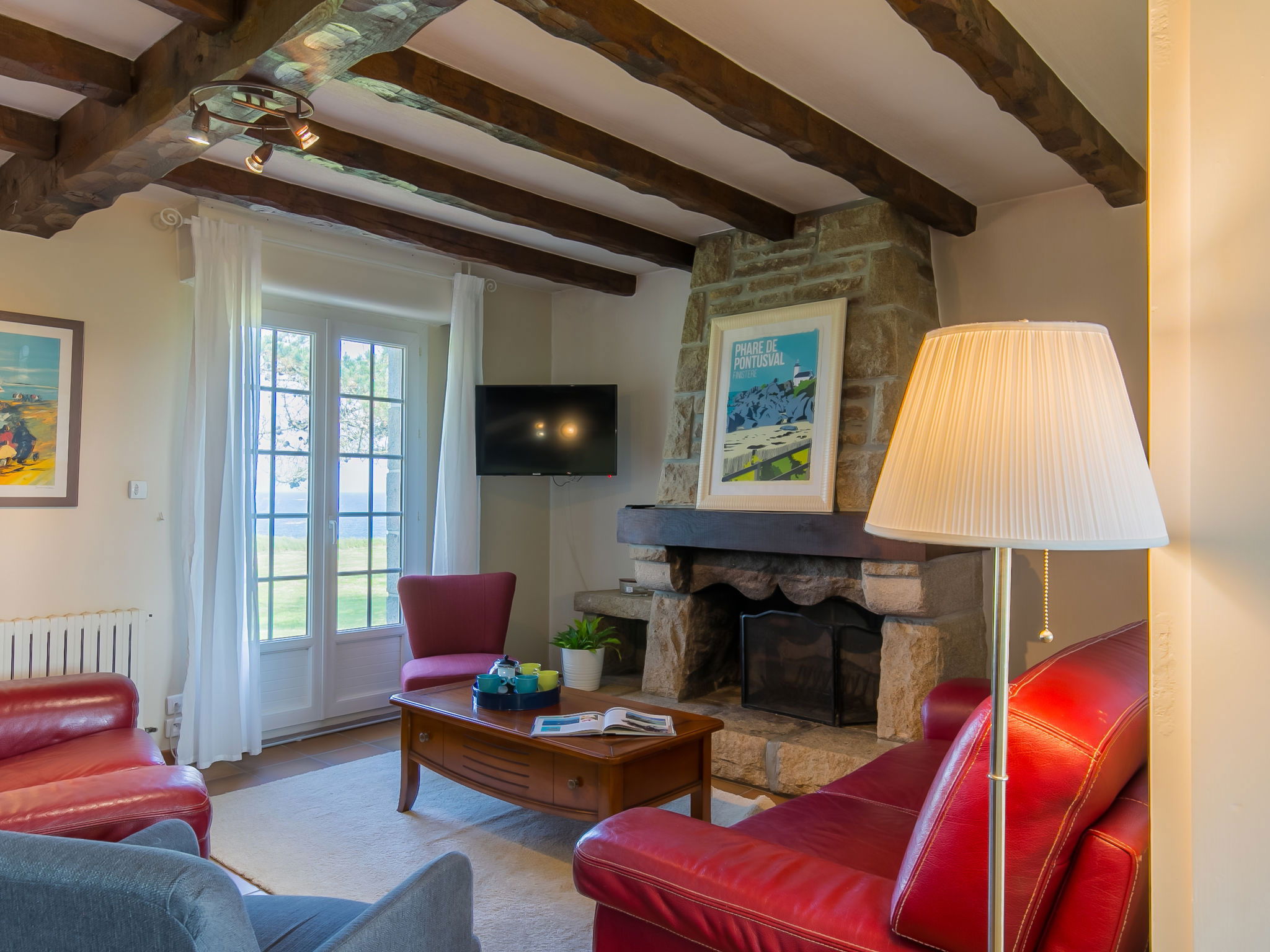 "Saint Gonvel", maison 6 pièces 200 m2 sur 2 niveaux. Aménagement plaisant et avec beaucoup de bois: séjour/salle à manger avec baie vitrée avec table pour les repas, TV et DVD. Sortie sur la terrasse. 1 chambre avec 1 grand-lit (180 cm, longueur 200 cm). Cuisine (four, lave-vaisselle, 3 plaques à induction, grille-pain, bouilloire électrique, micro-ondes, cafetière électrique) avec table pour les repas. Douche, WC séparé. À l'étage supérieur: 2 chambres, chaque chambre avec: 1 grand-lit (140 cm, longueur 190 cm). 1 chambre avec 1 grand-lit (140 cm, longueur 190 cm), lavabo. 1 chambre avec 1 lit (120 cm, longueur 190 cm). Douche, WC séparé. Chauffage au fuel. Sol en parquet. Terrasse. Meubles de terrasse, barbecue (portable), chaises longues (4), réduit. Superbe vue panoramique sur la mer et jusqu'à l'île d'Ouessant. A disposition: lave-linge, fer à repasser, chaise haute pour enfant, lit bébé. Internet (Connexion WIFI, gratuit). Veuillez noter: maison non-fumeur. Détecteur de fumée. La répartition des lits est flexible: Il y a plus de couchages que le nombre maximum de personnes admis dans la location. Ce nombre maximum doit néanmoins être respecté.