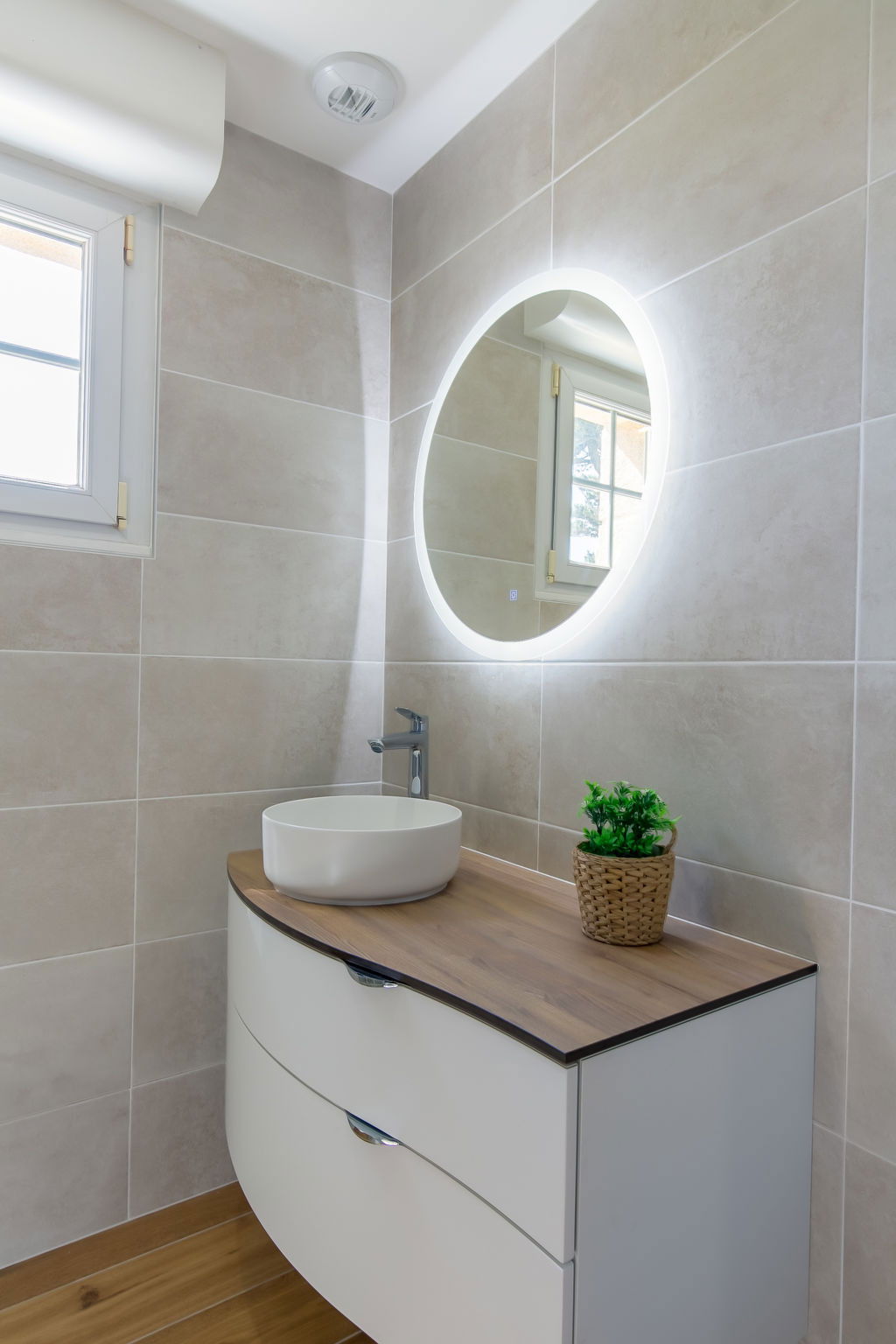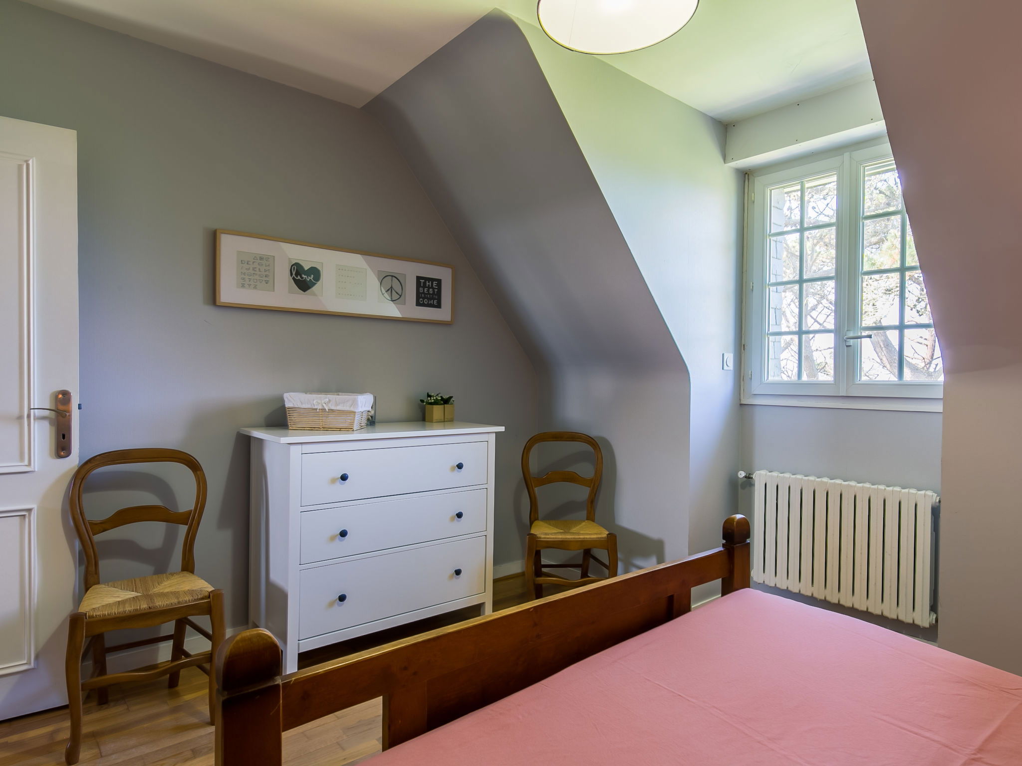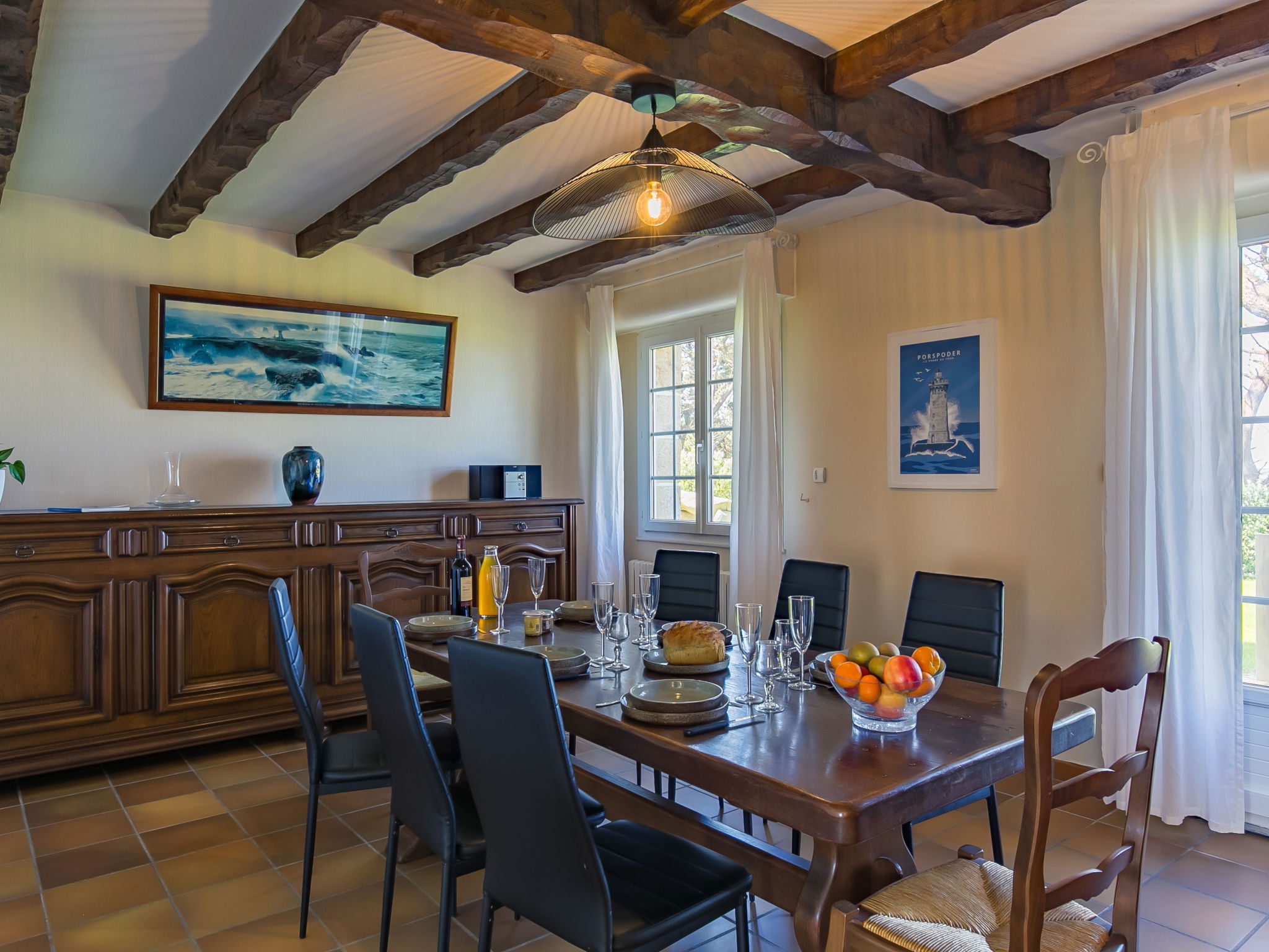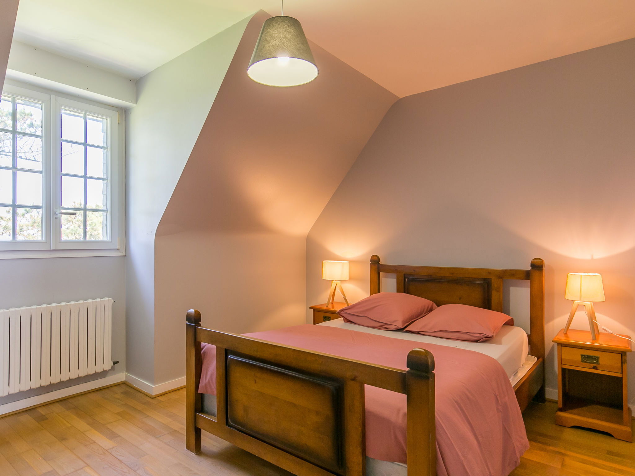 "Saint Gonvel", maison 6 pièces 200 m2 sur 2 niveaux. Aménagement plaisant et avec beaucoup de bois: séjour/salle à manger avec baie vitrée avec table pour les repas, TV et DVD. Sortie sur la terrasse. 1 chambre avec 1 grand-lit (180 cm, longueur 200 cm). Cuisine (four, lave-vaisselle, 3 plaques à induction, grille-pain, bouilloire électrique, micro-ondes, cafetière électrique) avec table pour les repas. Douche, WC séparé. À l'étage supérieur: 2 chambres, chaque chambre avec: 1 grand-lit (140 cm, longueur 190 cm). 1 chambre avec 1 grand-lit (140 cm, longueur 190 cm), lavabo. 1 chambre avec 1 lit (120 cm, longueur 190 cm). Douche, WC séparé. Chauffage au fuel. Sol en parquet. Terrasse. Meubles de terrasse, barbecue (portable), chaises longues (4), réduit. Superbe vue panoramique sur la mer et jusqu'à l'île d'Ouessant. A disposition: lave-linge, fer à repasser, chaise haute pour enfant, lit bébé. Internet (Connexion WIFI, gratuit). Veuillez noter: maison non-fumeur. Détecteur de fumée. La répartition des lits est flexible: Il y a plus de couchages que le nombre maximum de personnes admis dans la location. Ce nombre maximum doit néanmoins être respecté.