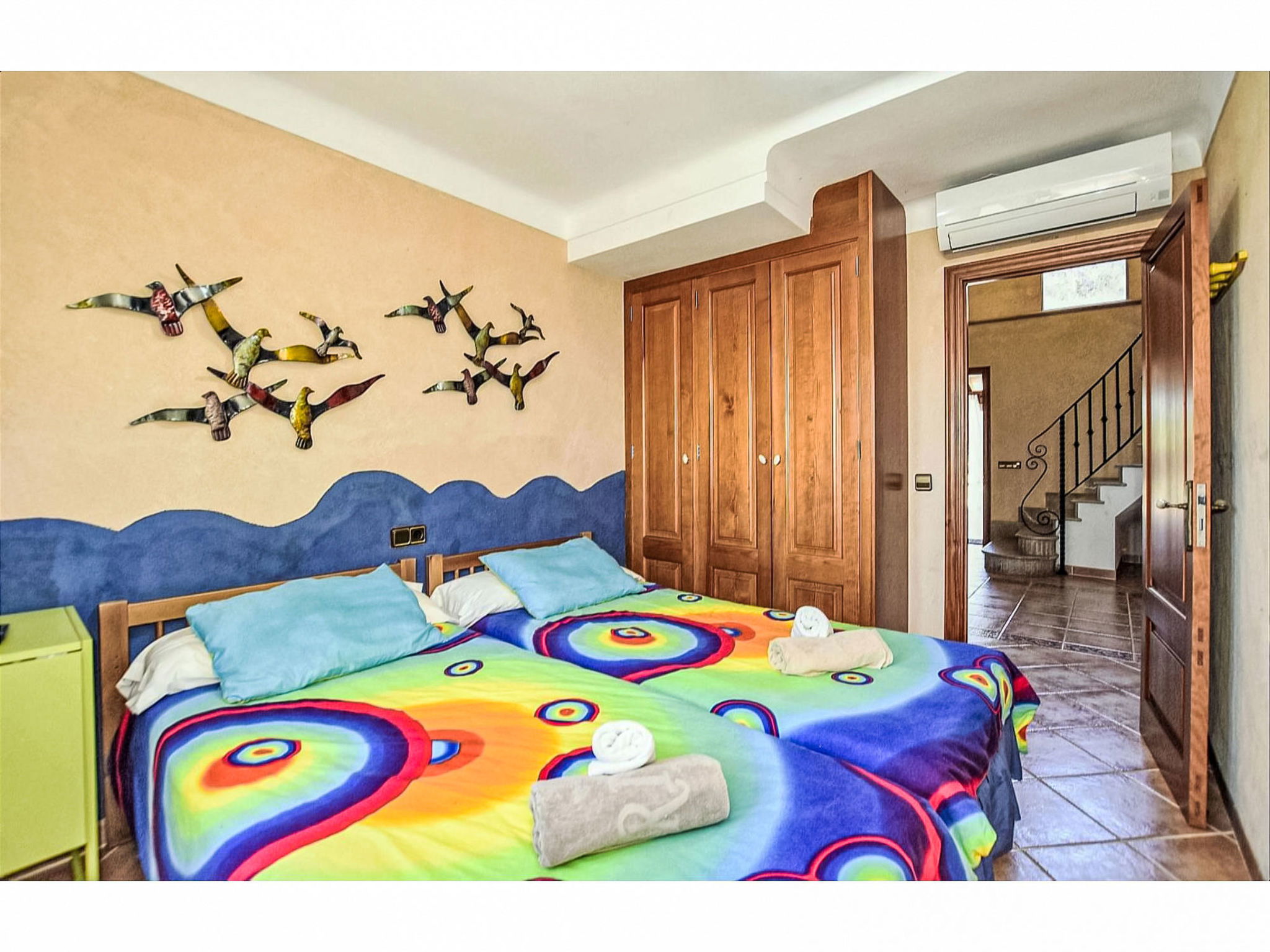 "Gamundi", villa 6 pièces 275 m2 sur 2 niveaux. Logement idéal pour 10 adultes. Aménagement fonctionnel et confortable: séjour/chambre à coucher avec TV (satellite), écran plat, air-conditionné et chauffage à air chaud. 1 chambre double avec 2 lits (90 cm, longueur 200 cm). 1 chambre double avec 2 lits (90 cm, longueur 200 cm). 1 chambre double avec 2 lits (90 cm, longueur 200 cm). 1 chambre double avec 1 grand-lit (150 cm, longueur 200 cm). Cuisine (four, lave-vaisselle, grille-pain, bouilloire électrique, micro-ondes, congélateur). Salle de bains, bain/WC, douche, douche/WC. Jardinet, jardin. Meubles de terrasse, barbecue. Vue sur la piscine, le jardin et les alentours. A disposition: lave-linge, fer à repasser, chaise haute pour enfant, lit bébé jusqu'à 2 ans, sèche-cheveux. Internet (Connexion WIFI, gratuit). Adapté(e) aux familles. ETV/964 // Reg. Nr.: ESFCTU0000070110002450800000000000000000000ETV/009645
