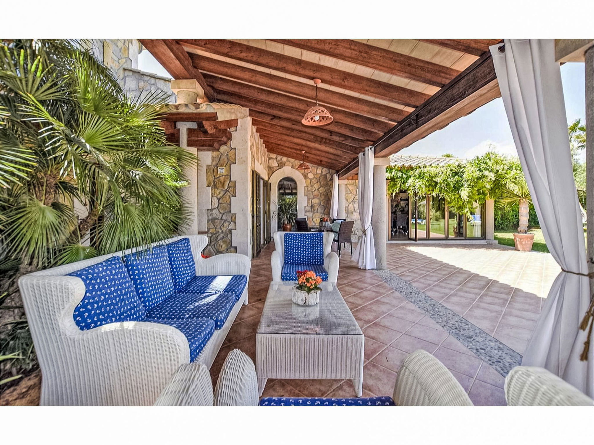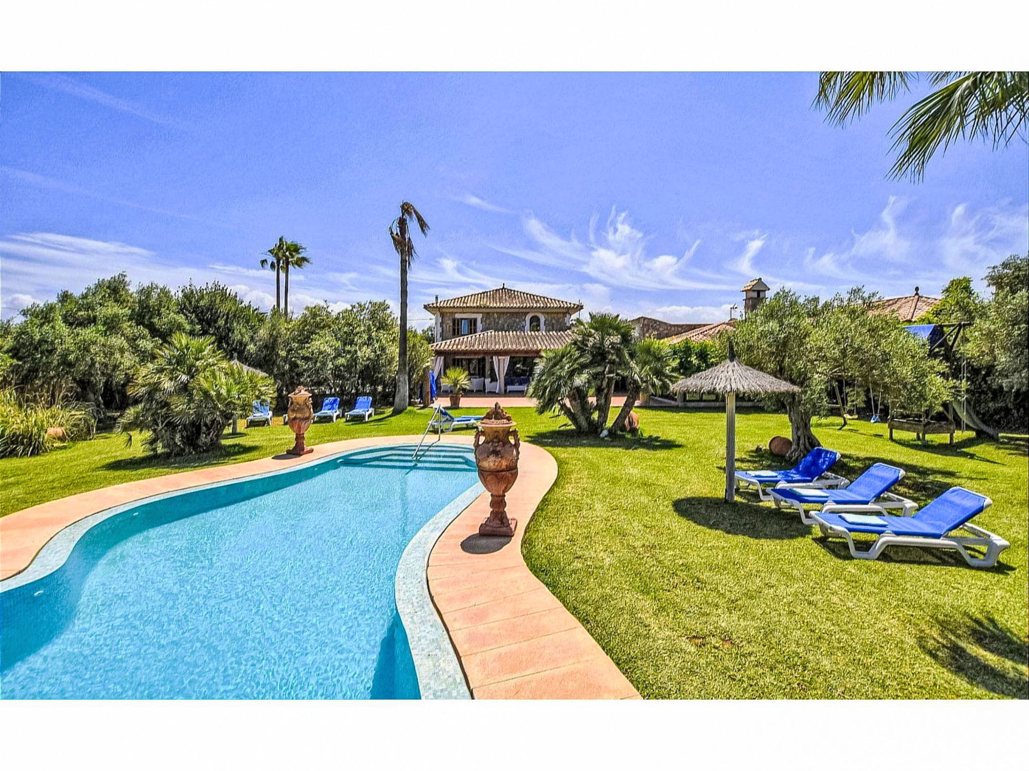 Muro: Grande villa luxueuse "Gamundi", environnée par les arbres et champs. Situation tranquille, à 2 km de la mer, dans la verdure. A usage privé: grand jardin, verger 180 m2, piscine rectangulaire (9 x 4 m, disponibilité saisonnière: 01.Mar. - 30.Oct.). Douche extérieure, jardinet, pergola, terrasse, barbecue. Infrastructures de la Maison: accès internet, Connexion WIFI, chauffage central, air-conditionné, lave-linge. Place de parking sur le terrain. Arrêt de bus "Can Picafort" 2 km, gare ferroviaire "Muro" 14 km, plage de sable "Playa de Muro" 2 km. Veuillez noter: voiture recommandée. Adapté(e) aux familles, indiqué pour séniors. Bien convenant à 10 adultes. Le propriétaire n'accepte pas les groupes de jeunes. Déchargement et chargement des bagages à la location de vacances.