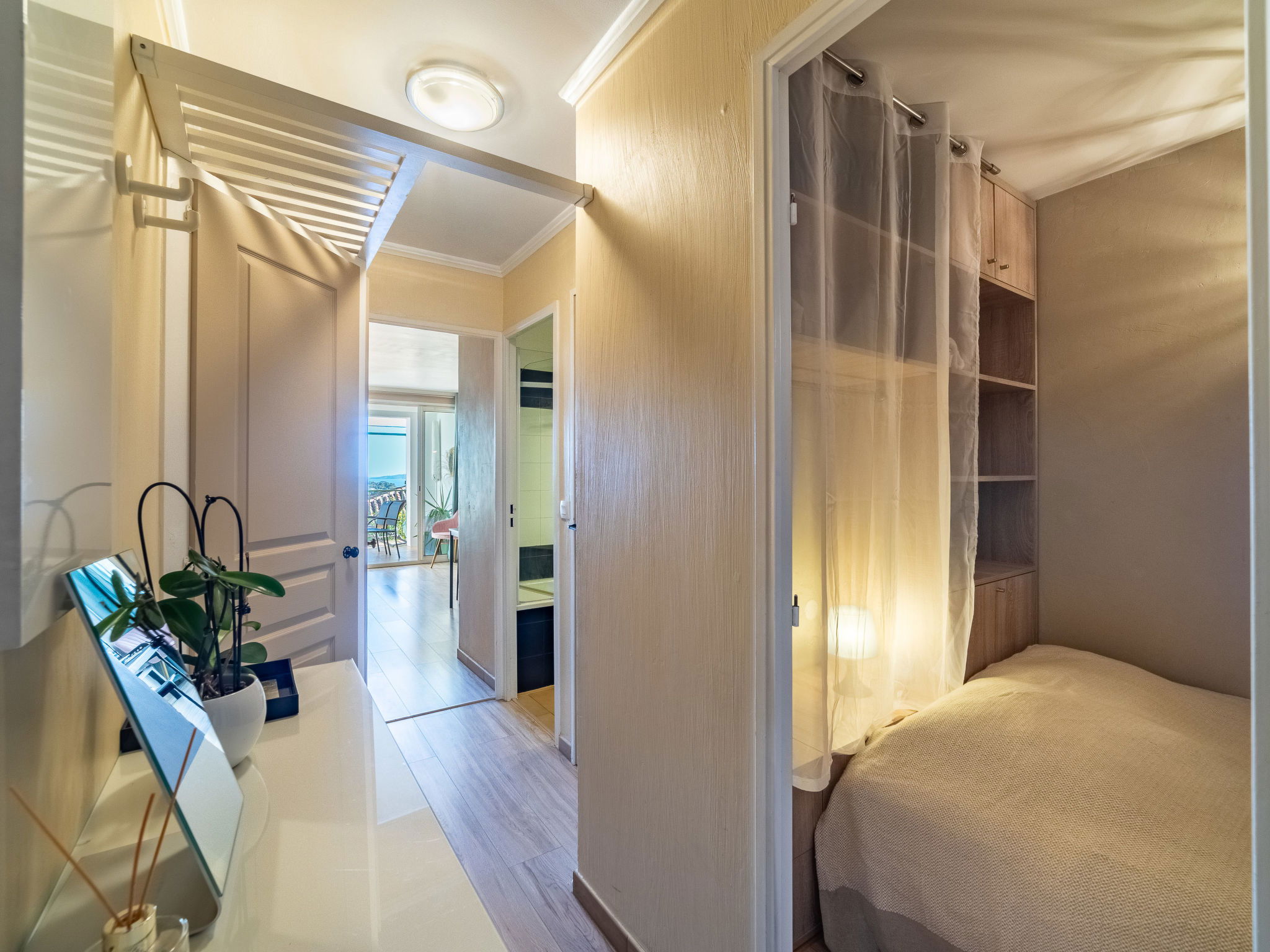 "Les Restanques 9", Appartement de 2 pièces 30 m2, au rez-de-chaussée. Aménagement agréable: séjour/salle à manger avec 1 divan-lit double (140 cm, longueur 190 cm), TV (écran plat), air-conditionné. Sortie sur le balcon. 1 petite chambre avec 1 lit double (140 cm, longueur 190 cm). Coin cuisine (lave-vaisselle, 2 plaques vitrocéramiques, grille-pain, bouilloire électrique, micro-ondes, cafetière électrique). Salle de bains, WC séparé. Chauffage électrique. Balcon 7 m2. Mobilier de balcon. Belle vue sur la mer et les alentours. A disposition: lave-linge, lit bébé jusqu'à 2 ans. Internet (Connexion WIFI, en sus). Place de parking No 4311 (couvert). Veuillez noter: logement non-fumeur. Détecteur de fumée. Annonce d'un particulier (art 155, IV du CGI). 83068001182GW