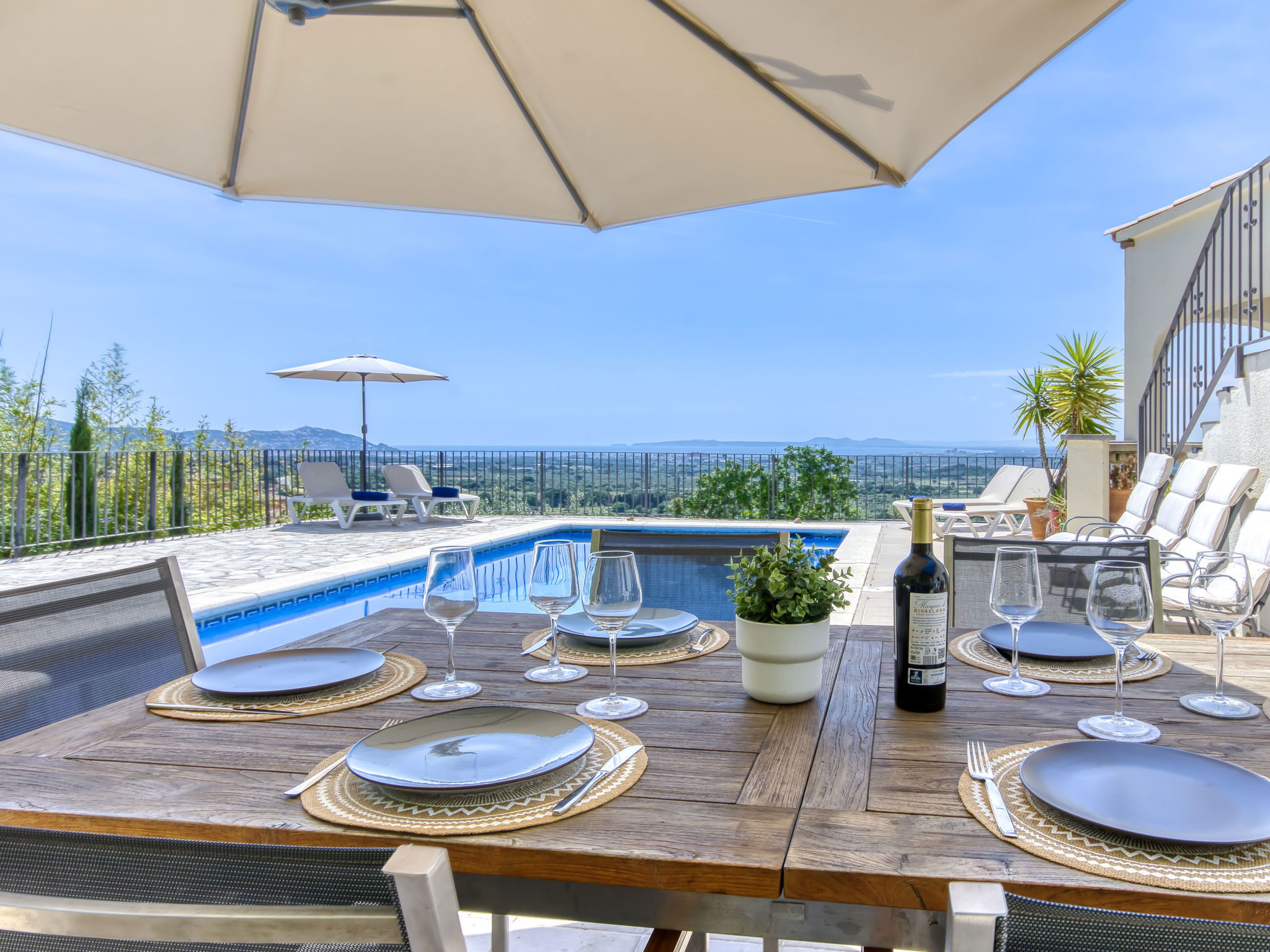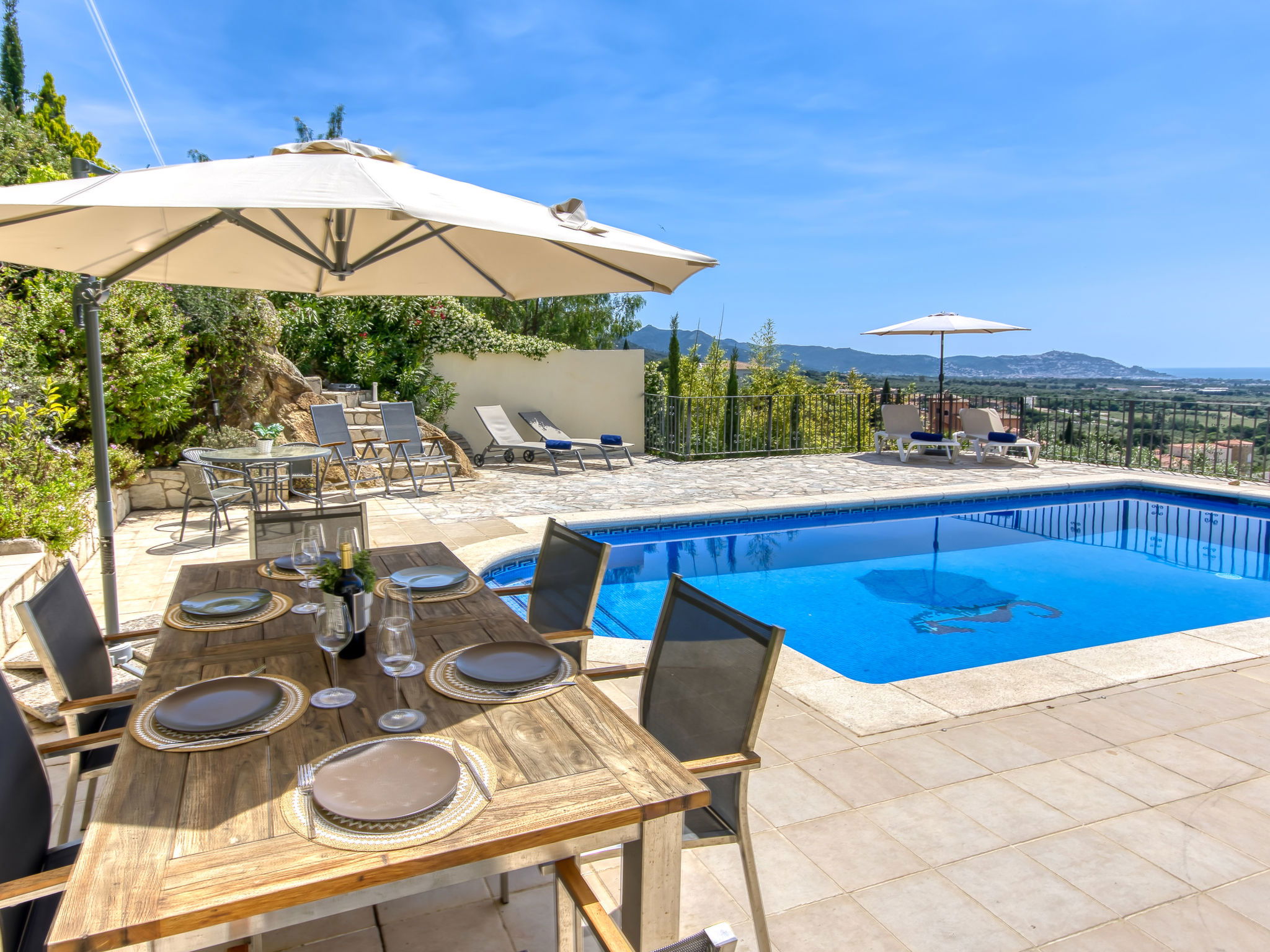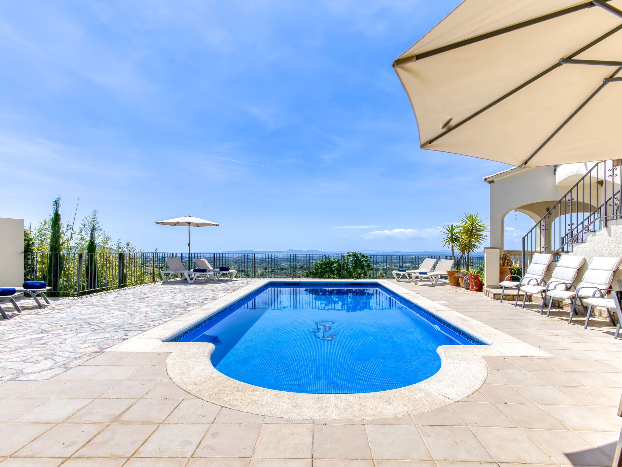 Villa 5 pièces 224 m2 sur 2 niveaux. Spacieux et clair, aménagement confortable et de style: séjour/salle à manger 39 m2 avec TV (satellite). Sortie sur la terrasse, sur la piscine. 1 chambre 15 m2 avec 1 grand-lit (160 cm, longueur 190 cm), douche/WC, air-conditionné et chauffage à air chaud. Sortie sur la terrasse. 1 chambre 11 m2 avec 1 grand-lit (150 cm, longueur 190 cm), air-conditionné et chauffage à air chaud. 1 chambre avec 2 lits (90 cm, longueur 190 cm), air-conditionné et chauffage à air chaud. Cuisine ouverte (four, lave-vaisselle, 3 plaques à induction, grille-pain, bouilloire électrique, micro-ondes, congélateur, cafetière électrique) avec table pour les repas. Bain/WC. À l'étage supérieur: (escalier extérieur) 1 chambre avec 1 grand-lit (150 cm, longueur 190 cm), douche/WC, air-conditionné et chauffage à air chaud. Sortie sur la terrasse. Grande terrasse. Meubles de terrasse, barbecue, chaises longues. Superbe vue panoramique sur la mer et les montagnes. A disposition: lave-linge, fer à repasser, sèche-cheveux. Internet (Connexion WIFI, gratuit). Place de parking (3 Voitures) près de la maison. Veuillez noter: une chambre double est à l'exterieur de l'appartement. Maison non-fumeur. TV seulement DE, FR, ES. Sans ascenseur. HUTG-064538 // Reg. Nr.: ESFCTU00001700800097820600000000000000000HUTG-0726257