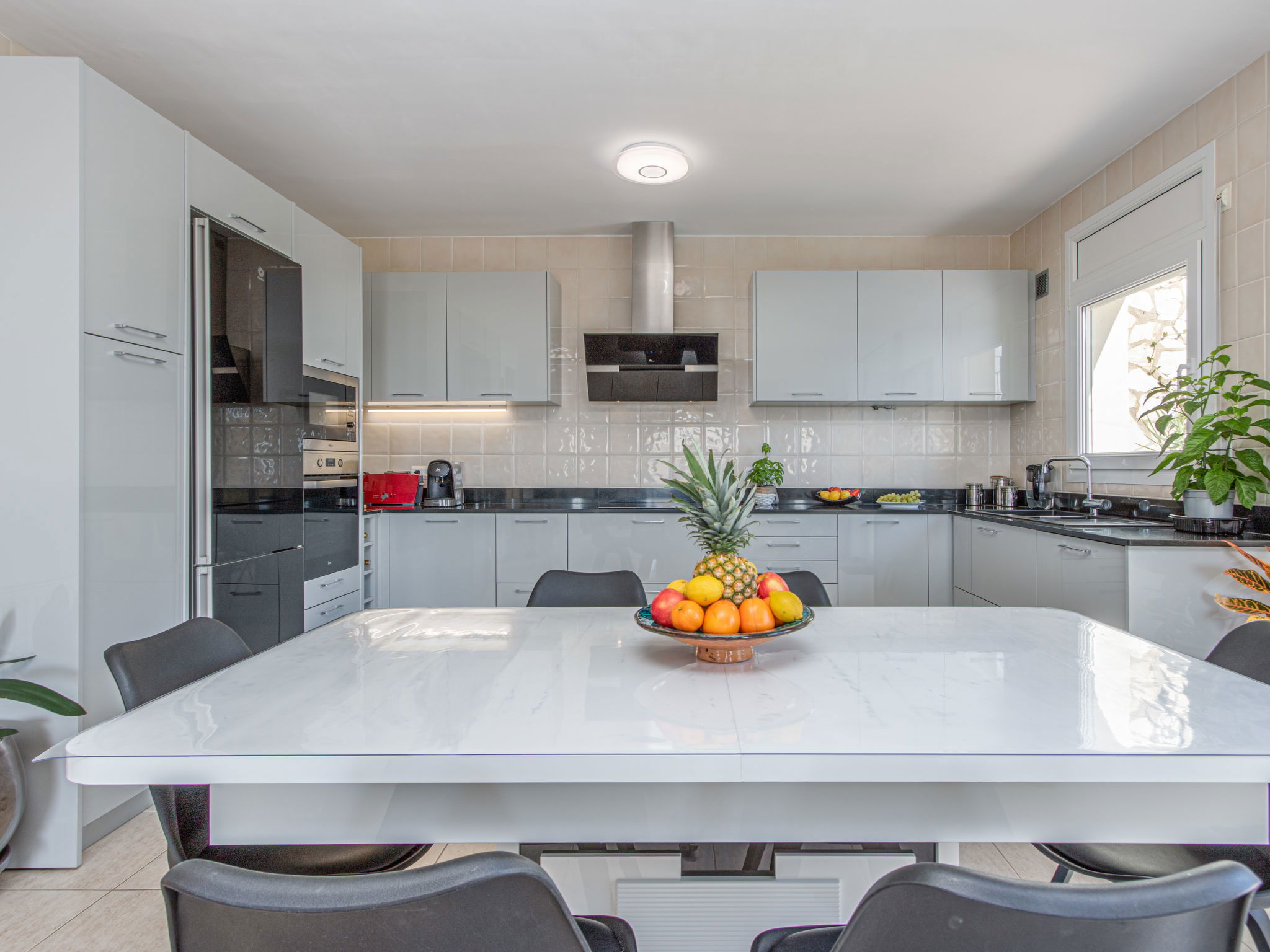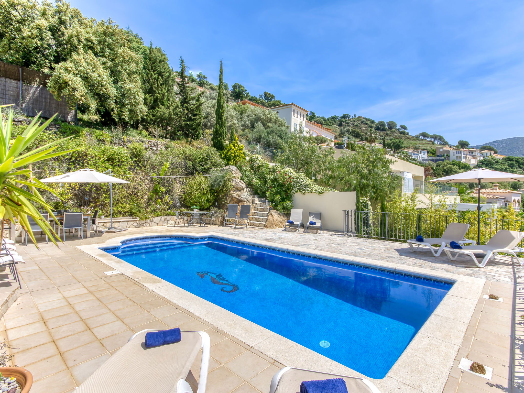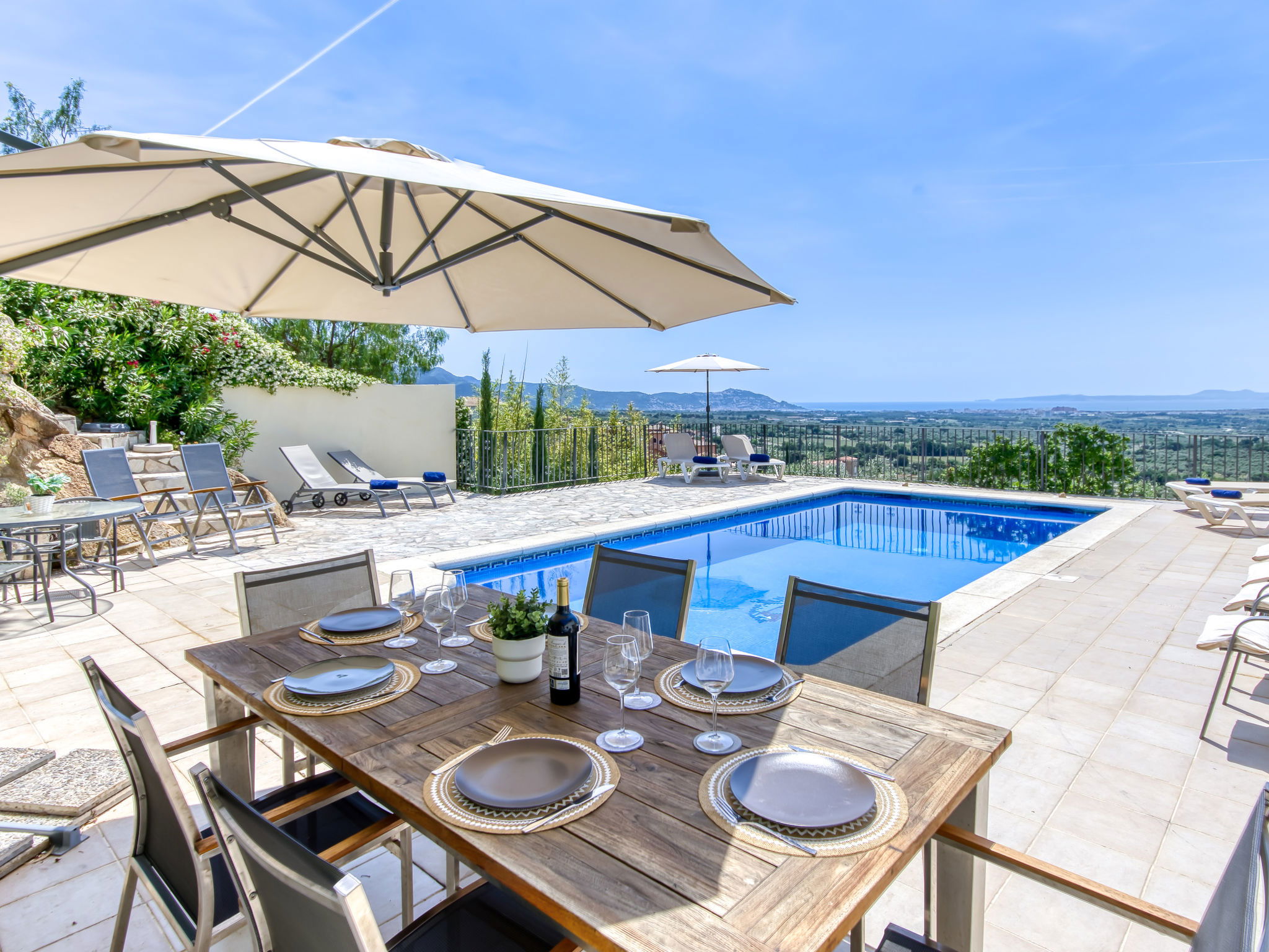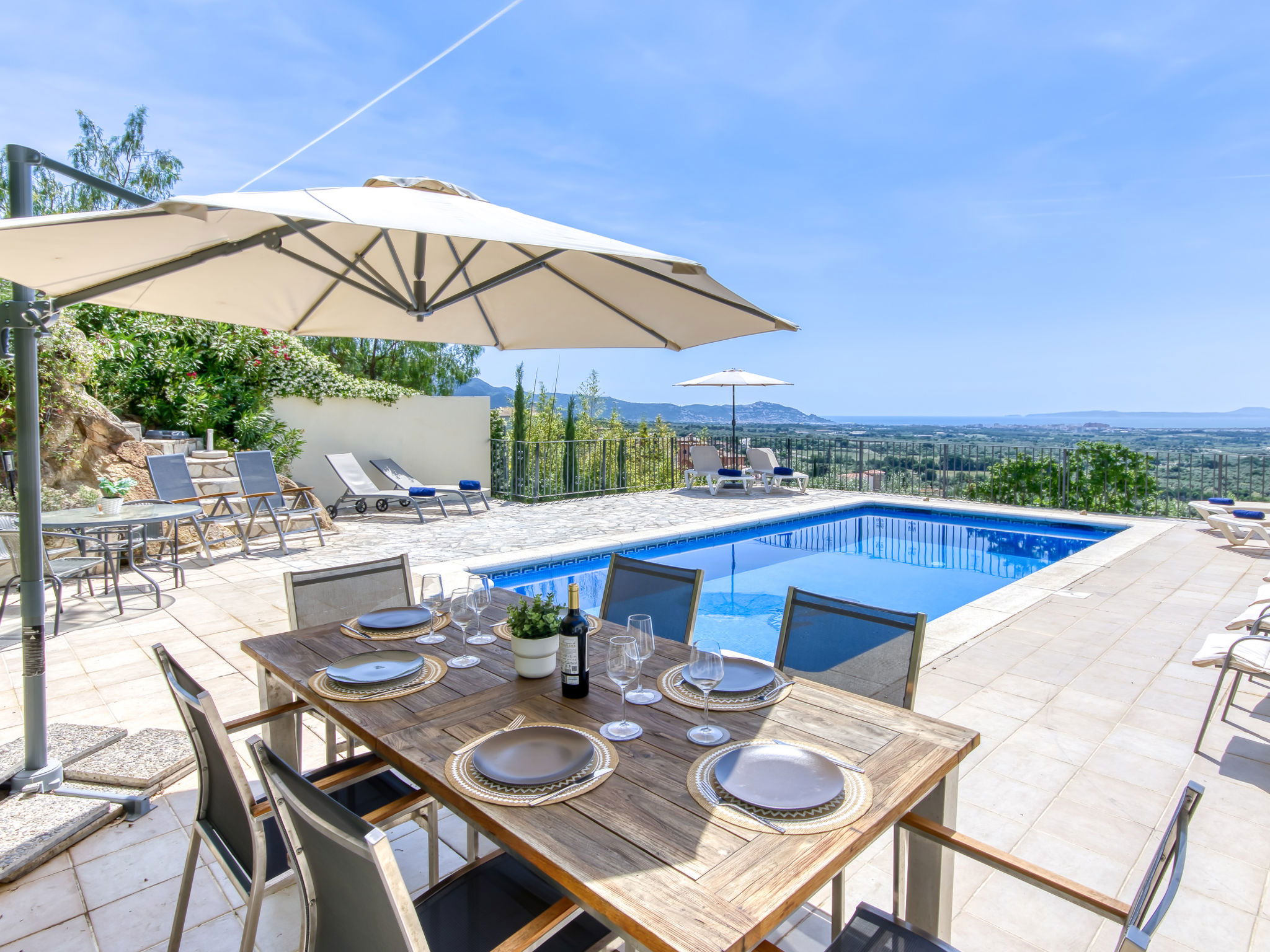Villa 5 pièces 224 m2 sur 2 niveaux. Spacieux et clair, aménagement confortable et de style: séjour/salle à manger 39 m2 avec TV (satellite). Sortie sur la terrasse, sur la piscine. 1 chambre 15 m2 avec 1 grand-lit (160 cm, longueur 190 cm), douche/WC, air-conditionné et chauffage à air chaud. Sortie sur la terrasse. 1 chambre 11 m2 avec 1 grand-lit (150 cm, longueur 190 cm), air-conditionné et chauffage à air chaud. 1 chambre avec 2 lits (90 cm, longueur 190 cm), air-conditionné et chauffage à air chaud. Cuisine ouverte (four, lave-vaisselle, 3 plaques à induction, grille-pain, bouilloire électrique, micro-ondes, congélateur, cafetière électrique) avec table pour les repas. Bain/WC. À l'étage supérieur: (escalier extérieur) 1 chambre avec 1 grand-lit (150 cm, longueur 190 cm), douche/WC, air-conditionné et chauffage à air chaud. Sortie sur la terrasse. Grande terrasse. Meubles de terrasse, barbecue, chaises longues. Superbe vue panoramique sur la mer et les montagnes. A disposition: lave-linge, fer à repasser, sèche-cheveux. Internet (Connexion WIFI, gratuit). Place de parking (3 Voitures) près de la maison. Veuillez noter: une chambre double est à l'exterieur de l'appartement. Maison non-fumeur. TV seulement DE, FR, ES. Sans ascenseur. HUTG-064538 // Reg. Nr.: ESFCTU00001700800097820600000000000000000HUTG-0726257