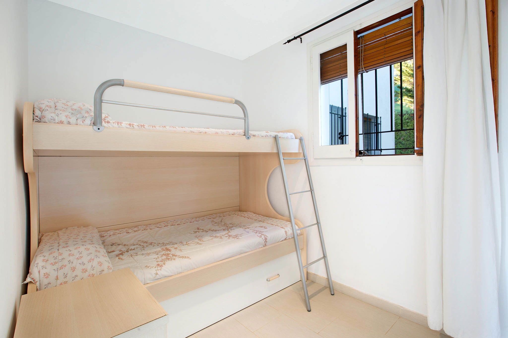 La chambre principale a un lit double (150x180cm) et la deuxième chambre a des lits superposés et un lit gigogne (90x185cm).