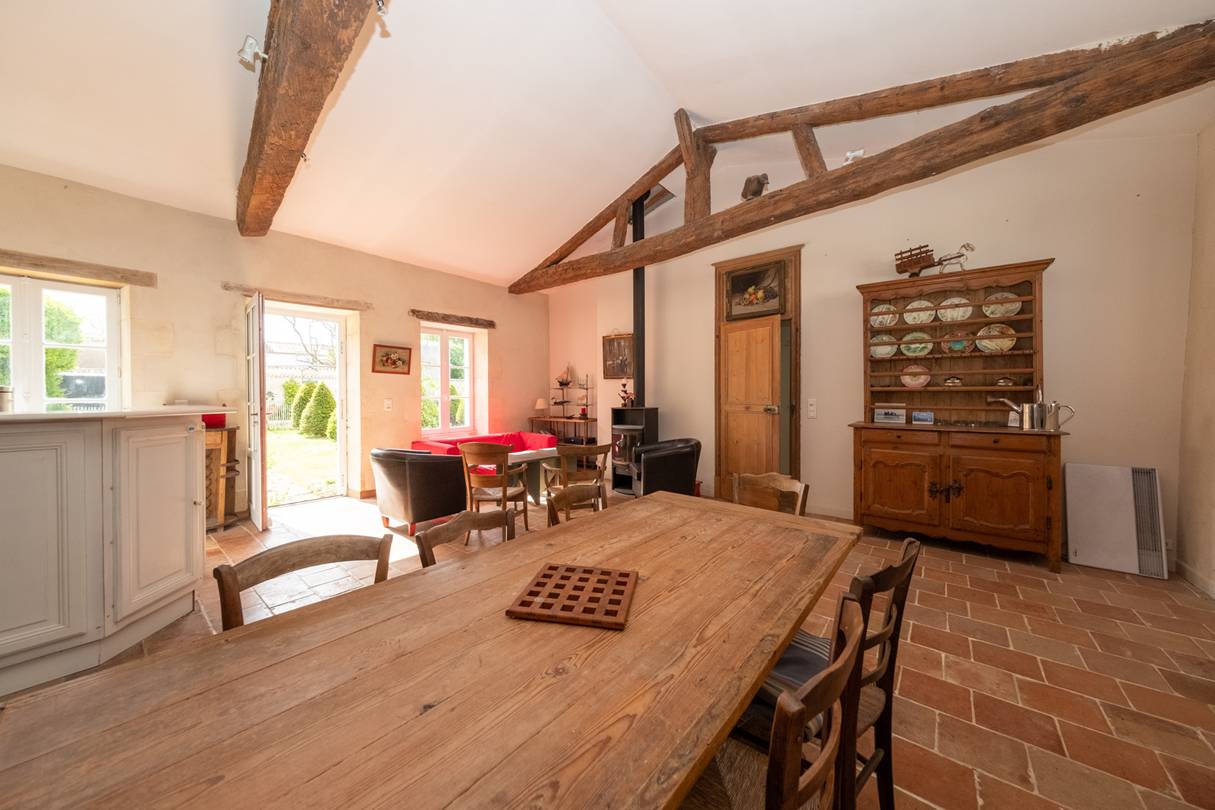 * Une salle de séjour avec salle à manger pour 8 personnes et cuisine ouverte sur le jardin