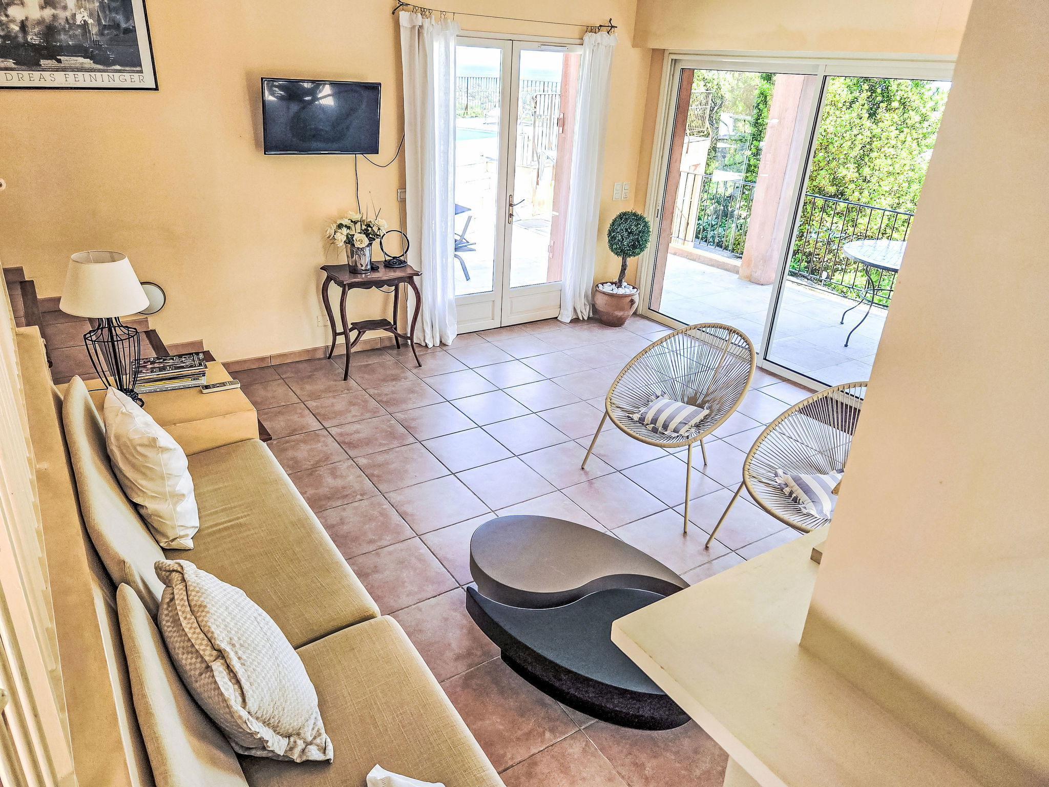 Maison individuelle "Le Chardin". Dans la localité, à 1.8 km du centre de Saint Aygulf, à 1.8 km de la mer, à 2.5 km de la plage. A usage privé: terrain à l'état naturel 800 m2 (clôturé), piscine (5 x 9 m, profondeur 150 - 200 cm, disponibilité saisonnière: 01.Mai. - 30.Sep.) avec alarme de sécurité. Terrasse (50 m2), meubles de jardin, place de parking. Magasins 2 km, centre commercial 7 km, boulangerie 2 km, centre à 25 minutes à pieds, arrêt de bus "Saint-Aygulf La Poste" 2 km, gare ferroviaire "Fréjus" 7 km, plage de sable "Saint Aygulf" 2.5 km, parc "Areca" 2 km, centre de plongée 7 km, centre thermal "Thalasso de Port Fréjus" 7 km. Port plaisance 2.5 km, terrain de golf (18 trous) 19 km, ecole de voile 8 km, centre équestre 3 km. Attractions à proximité: Aqualand, Luna Park 7 km, Fréjus 8 km, Saint Rapahael 10 km, St Tropez 32 km, Cannes 47 km, Nice 73 km. Les domaines skiables de renommée sont facilement accessibles: Auron, Isola 2000 150 km. Les lacs connus sont facilement accessibles: Lac de St Cassien 45 km, Lac du Du Verdon 90 km. Région de randonnées: Estérel 18 km, Sentier du Littoral 2 km. La remise des clés a lieu à l’agence de Saint Aygulf, 2 km.