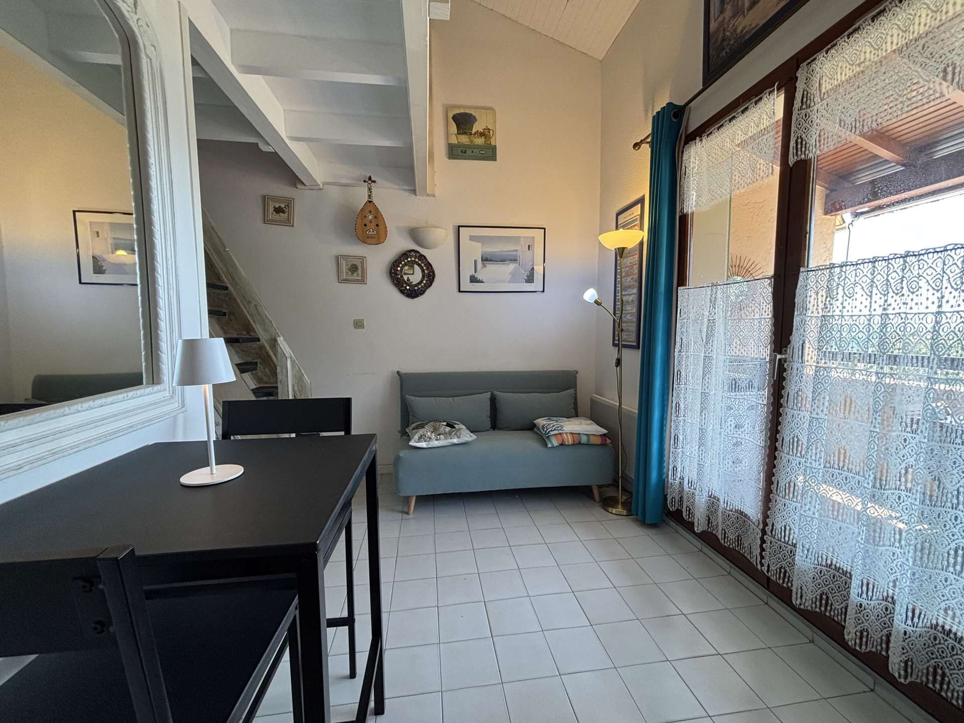 Cet appartement de vacances situé dans une résidence dans les hauteurs de notre belle station balnéaire, cet appartement dans une résidence familiale avec piscine, belle vue mer, se compose d’une pièce principale avec un clic clac pour deux personnes, un coin nuit en mezzanine avec un lit double, d'une cuisine ouverte sur le séjour. Une salle d'eau et un wc séparé complètent ce bien.