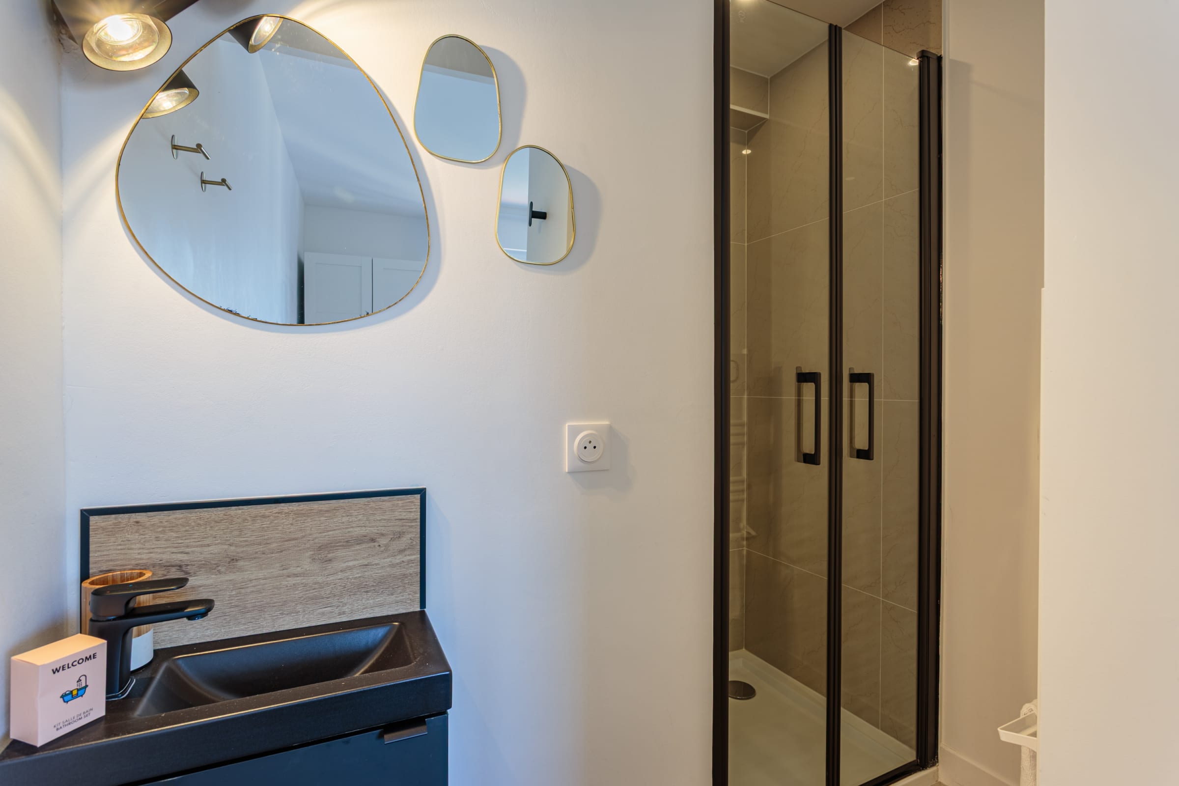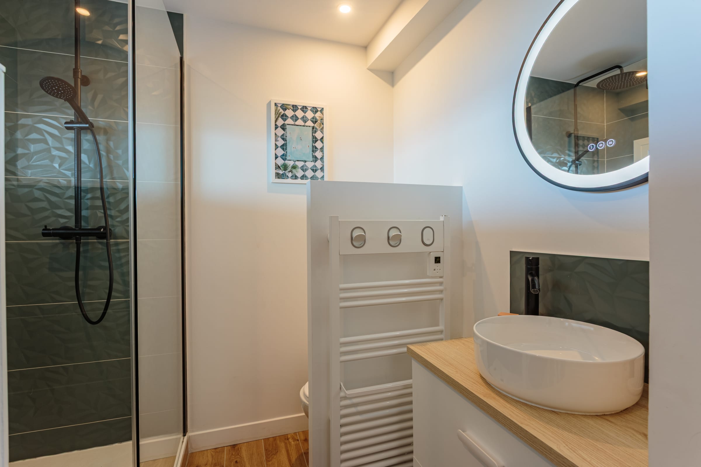 - une chambre principale avec un lit queen size (160cm) et salle d'eau privative (douche),