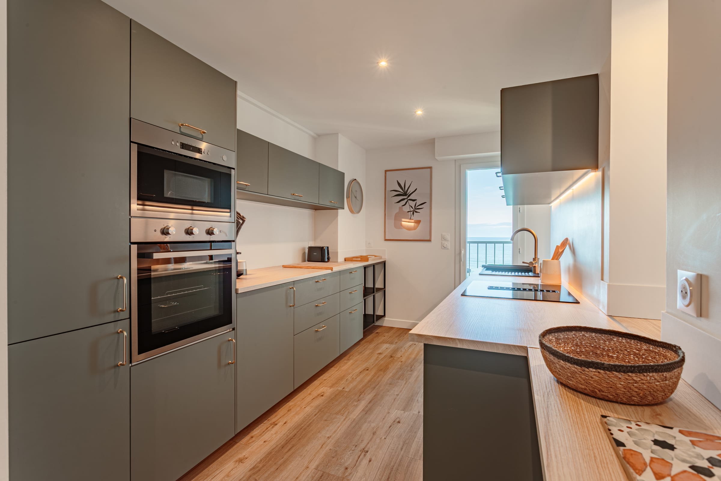 - une cuisine moderne et parfaitement équipée (machine à café, grille pain, mixeur, bouilloire, four, micro-ondes, lave-vaisselle, réfrigérateur, congélateur),