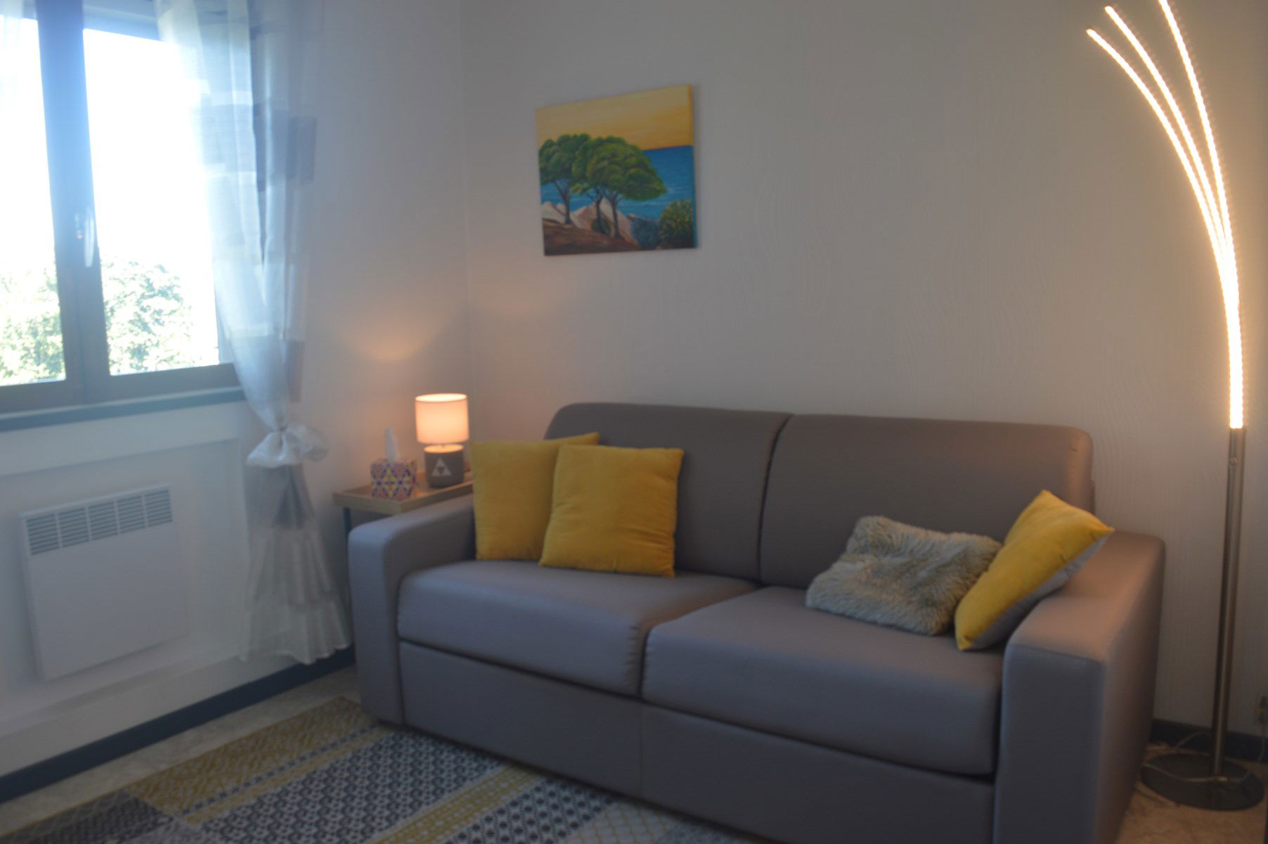 Au 2e étage avec ascenseur cet appartement dispose d’une entrée, un séjour spacieux climatisé, une cuisine équipée et séparée, une chambre avec lit double en 160, une autre chambre avec un canapé convertible en 140, une salle d’eau équipée d'un sèche cheveux, un WC indépendant et une loggia de 7 m².