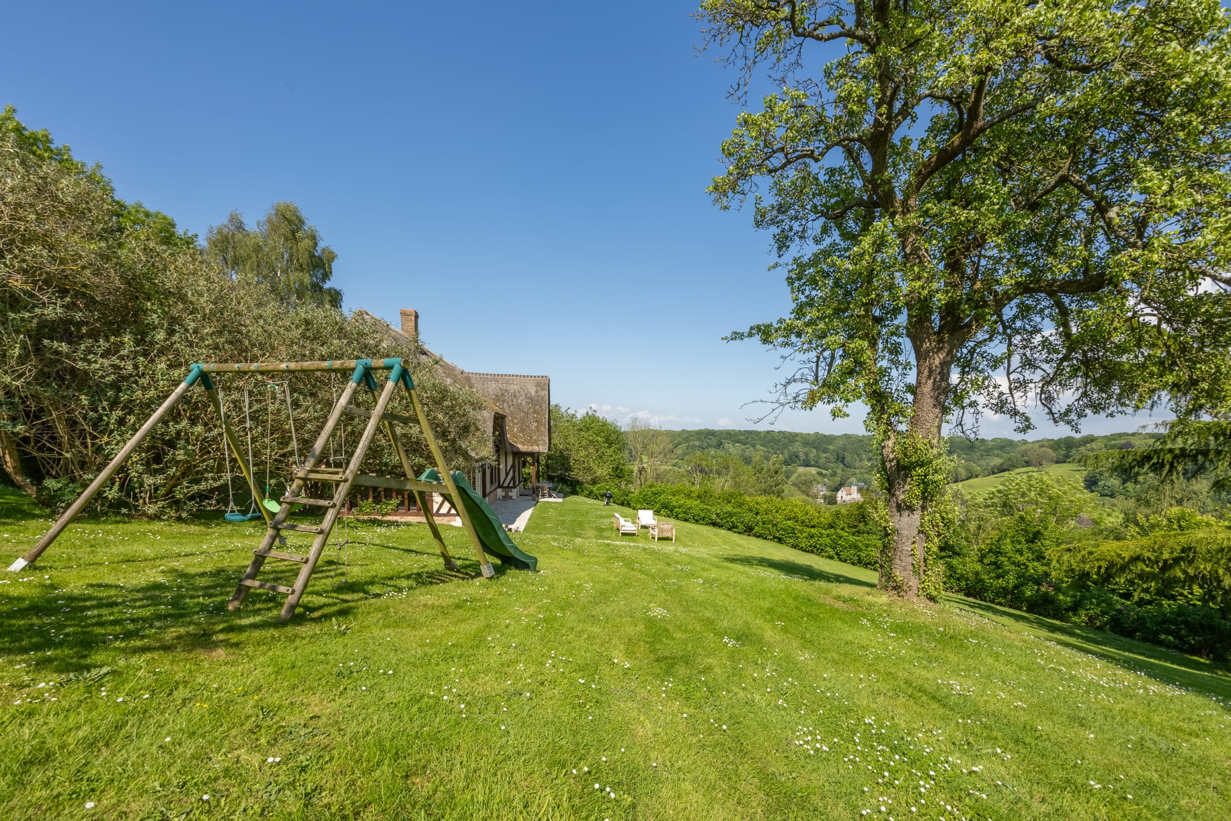 - un extérieur verdoyant comprenant terrasse, coin détente, balançoire et barbecue,
