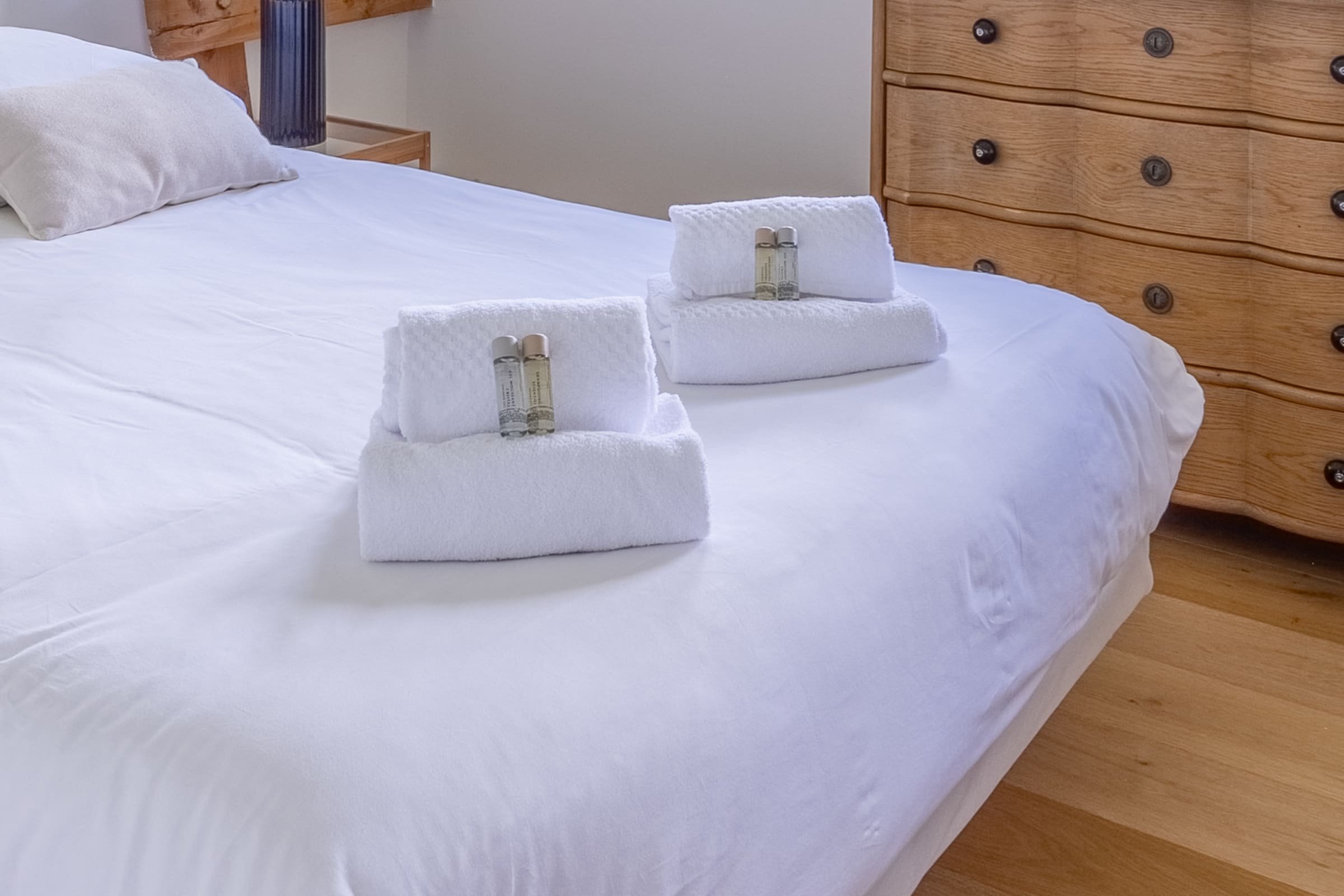 → Avant votre arrivée et après votre départ, notre équipe réalise un ménage de qualité hôtelière et met à votre disposition des serviettes de bain, du linge de lit de qualité hôtelière ainsi qu’une ligne de produits de soin naturels.