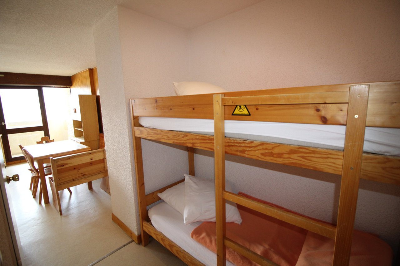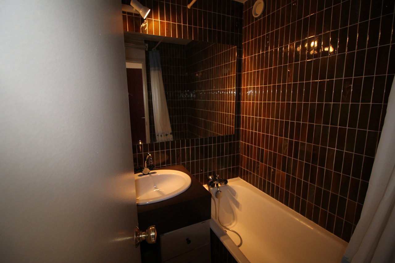 Il se compose d’un séjour avec canapé convertible Clic Clac (2 personnes), d’un coin cuisine équipé, d’un coin nuit dans le couloir d’entrée avec un lit superposé (2 lits simples), ainsi que d’une salle de bain avec baignoire et de toilettes séparées.