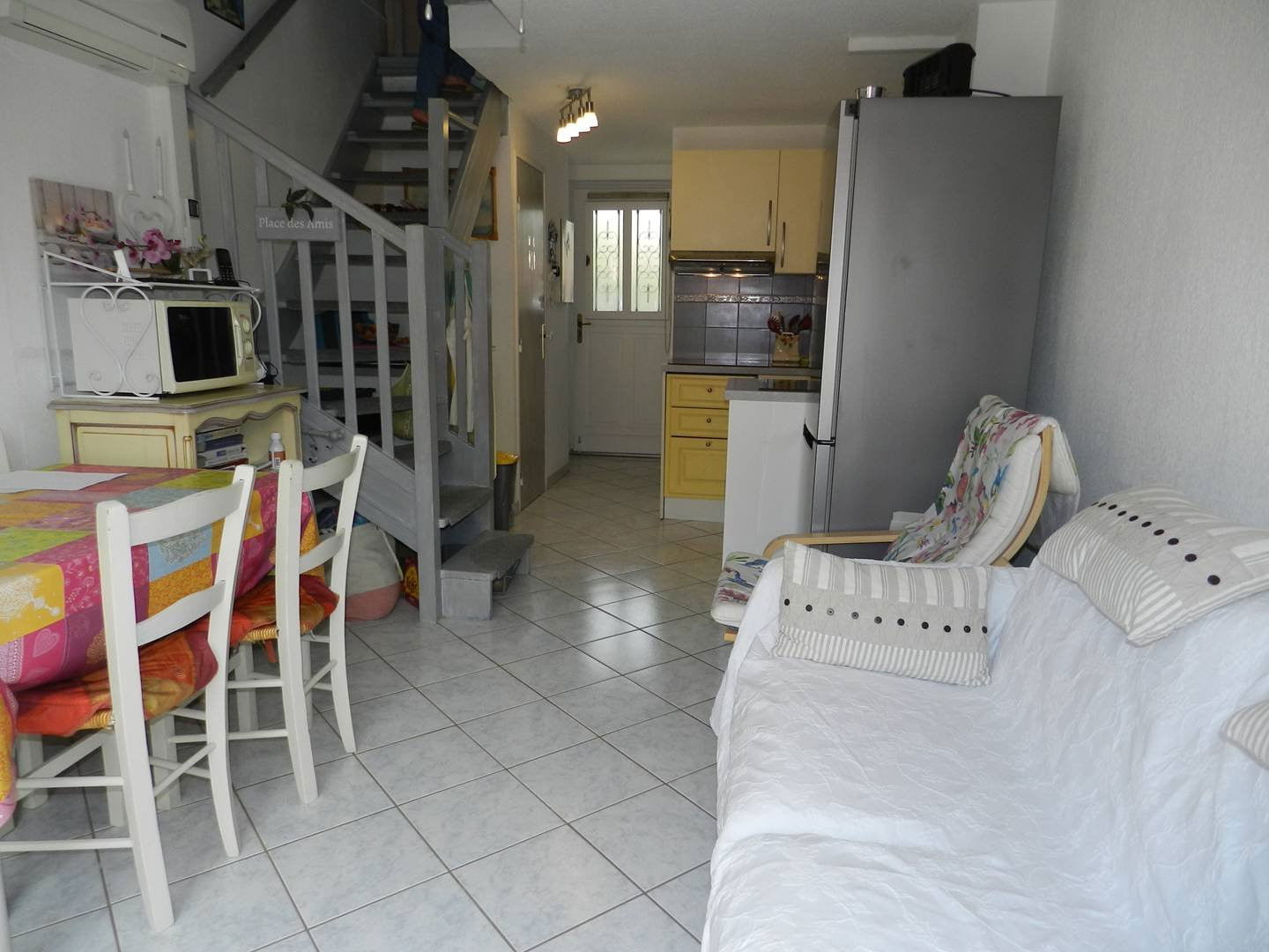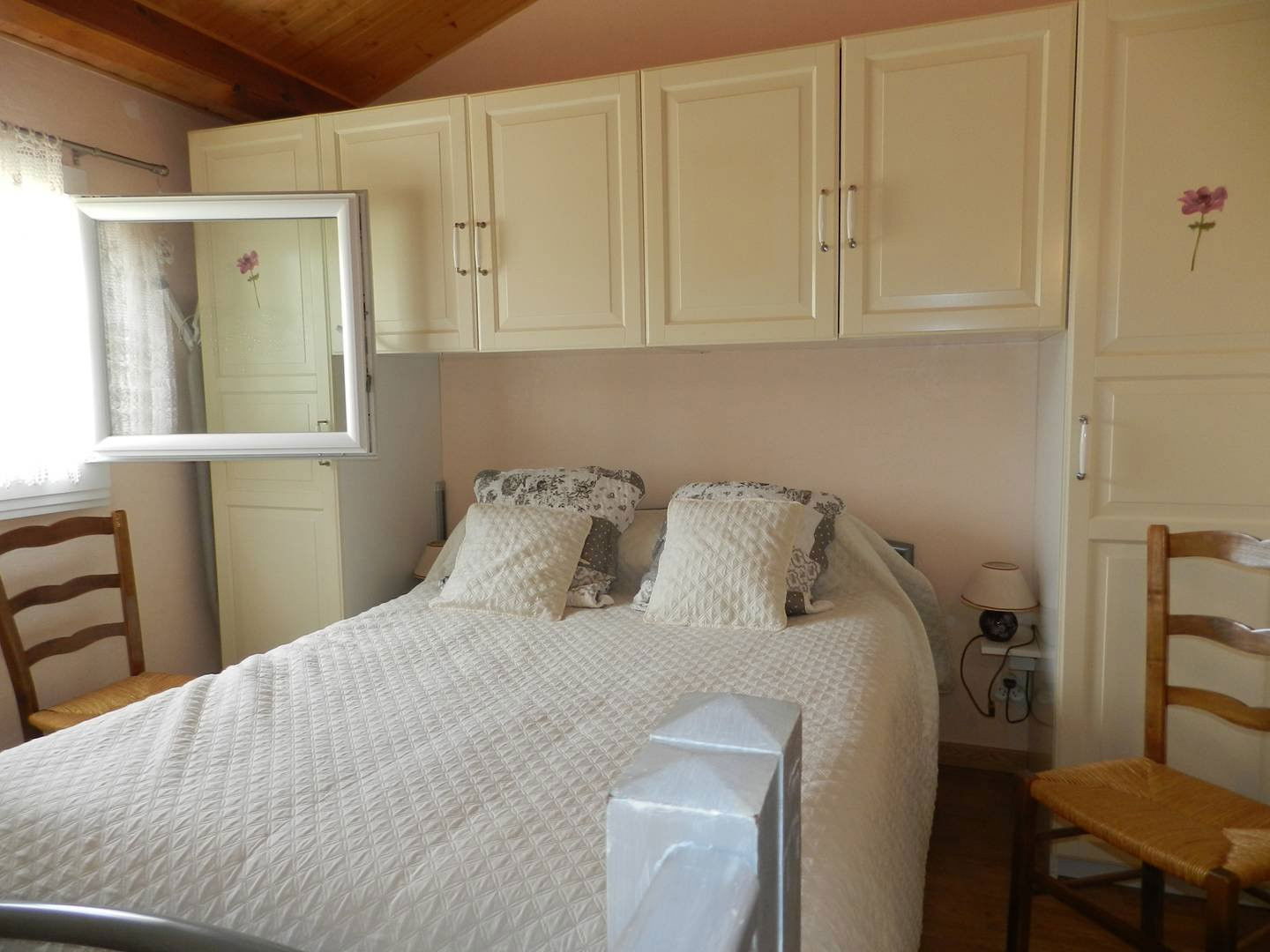 Ce mazet en duplex vous propose au niveau rez de jardin une terrasse ensoleillée, un séjour une cuisine équipée, une douche, un wc indépendant, et à l'étage une chambre climatisée avec lit double et une autre chambre avec lit double.
