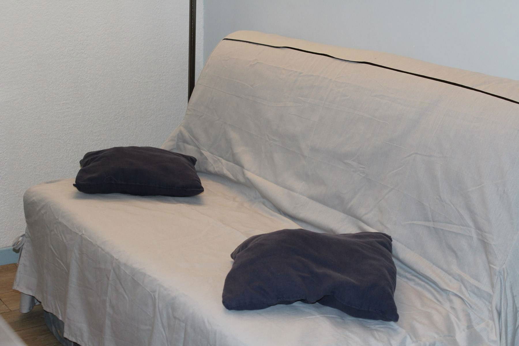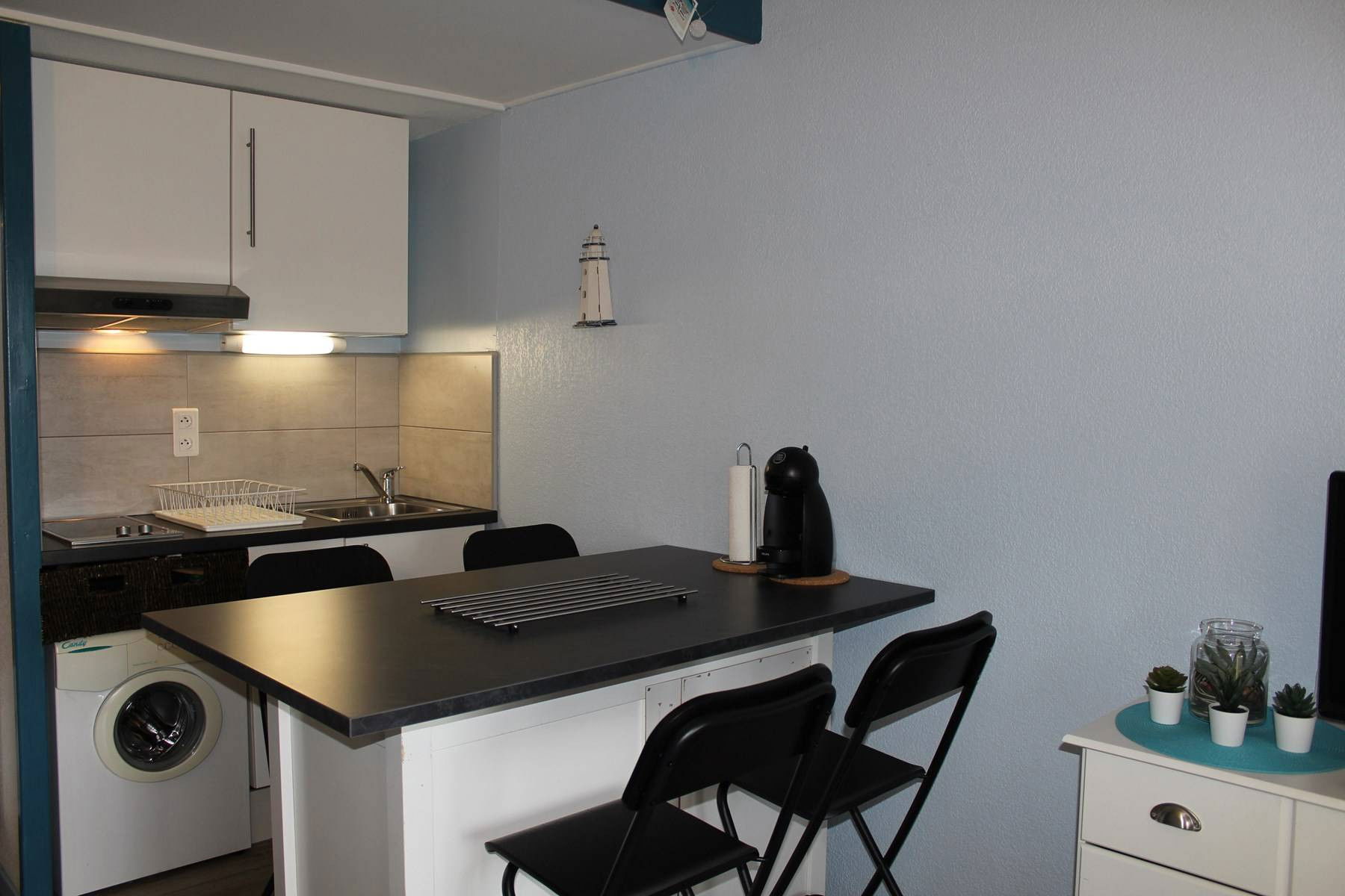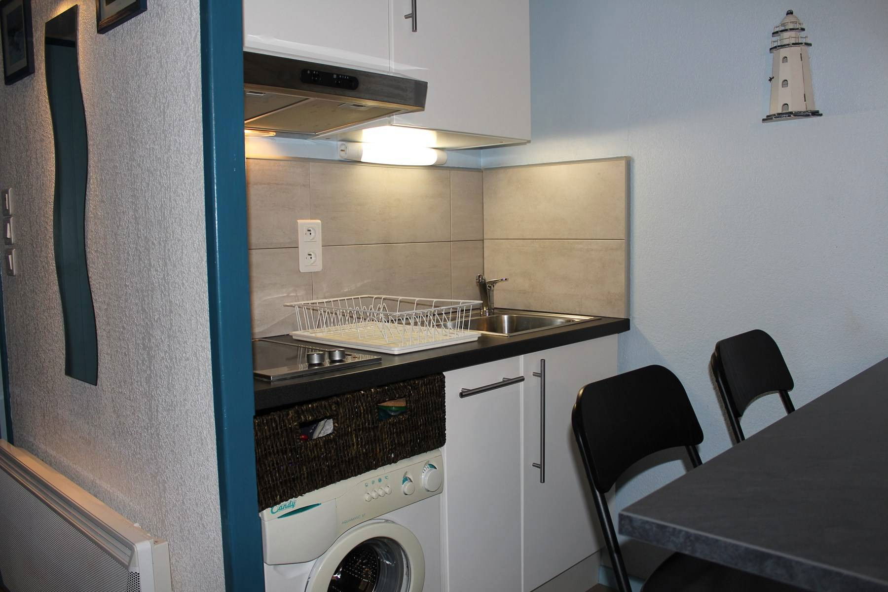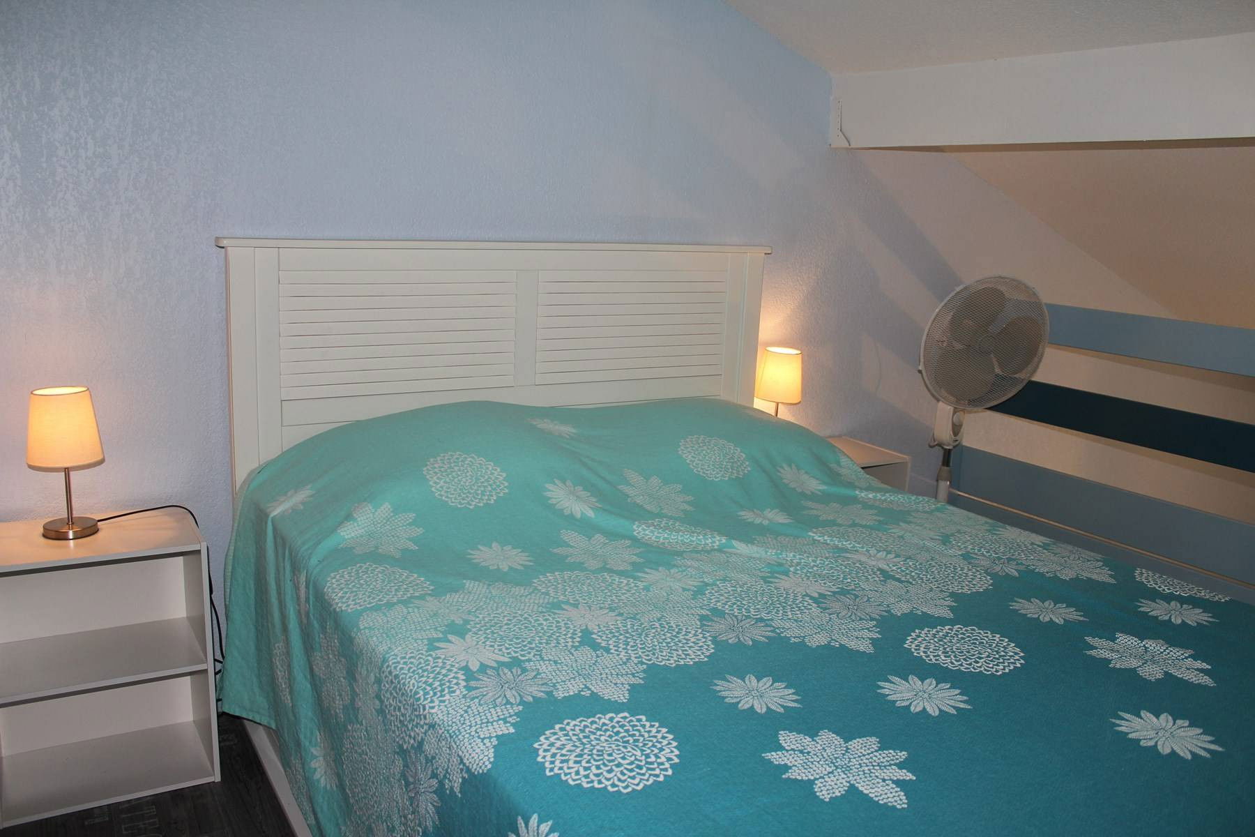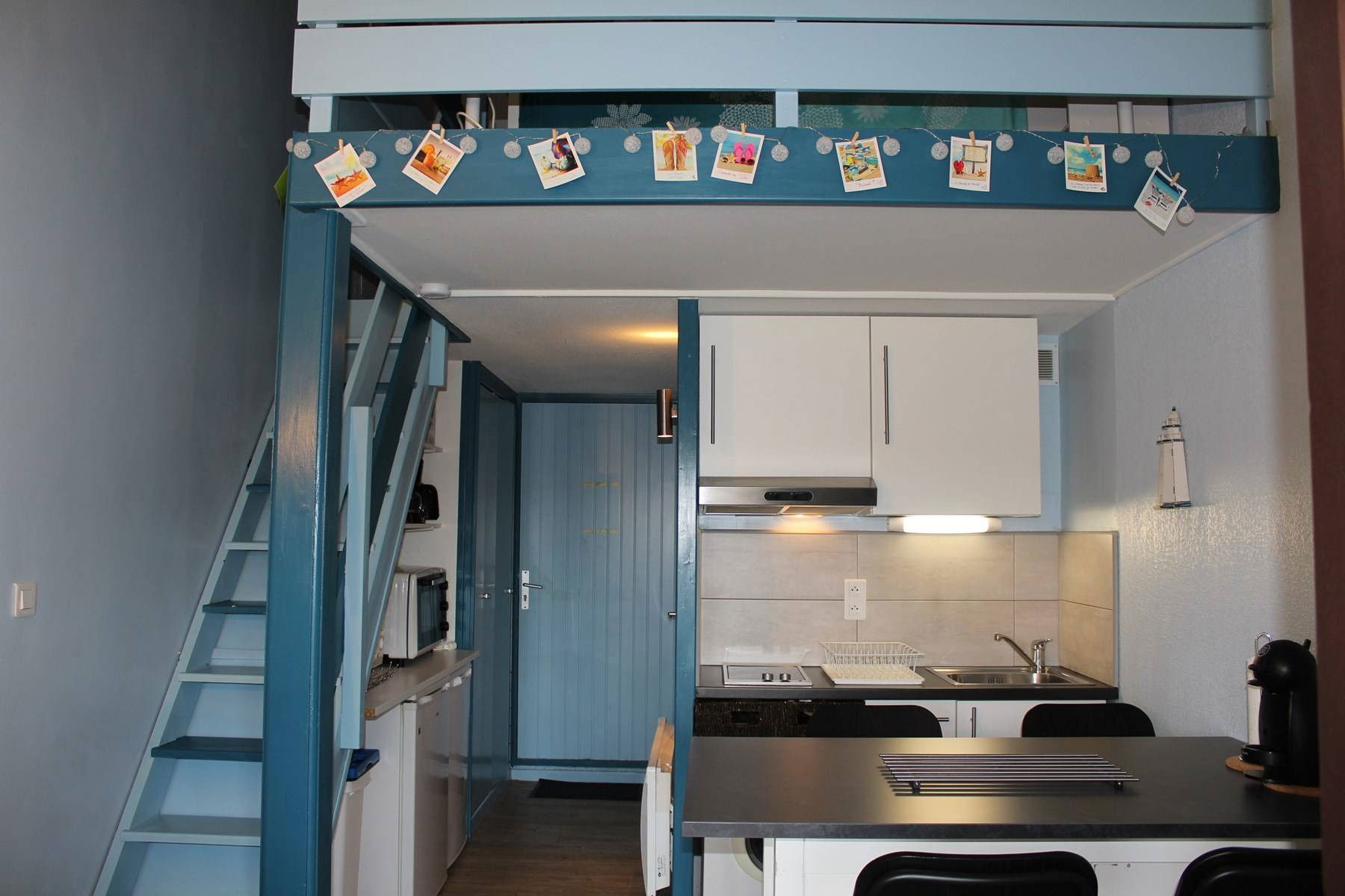 Vous trouverez dans cet appartement un séjour avec un canapé convertible 2 places de type BZ, un coin cuisine très bien équipé, salle de bains avec wc, et en mezzanine vous trouverez un lit deux places. Loggia avec mobilier de jardin.