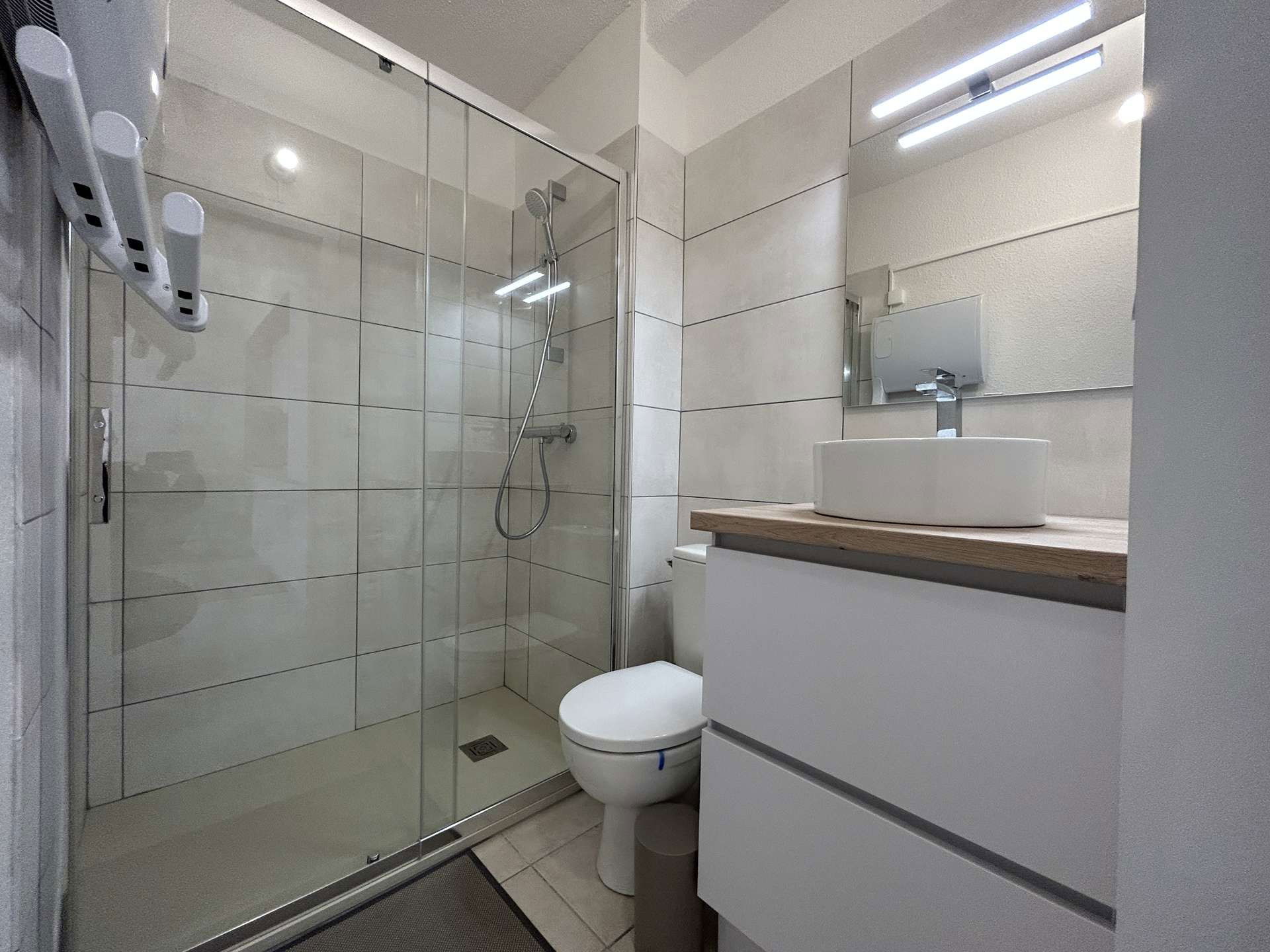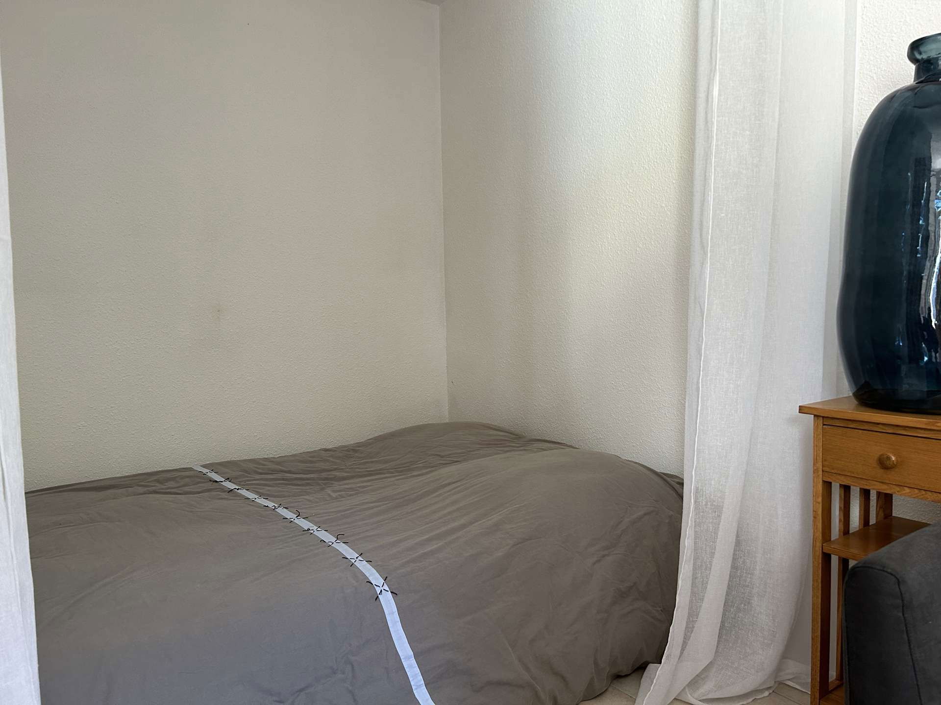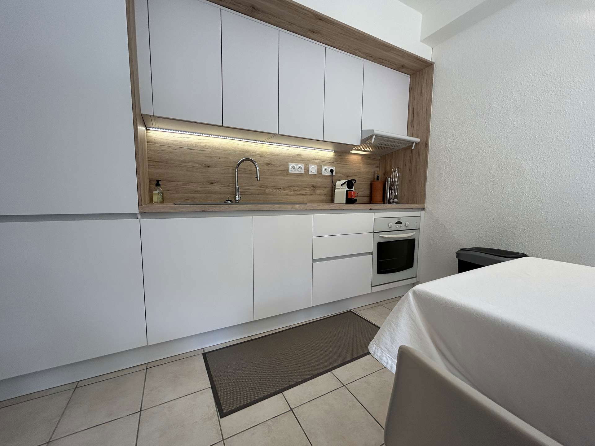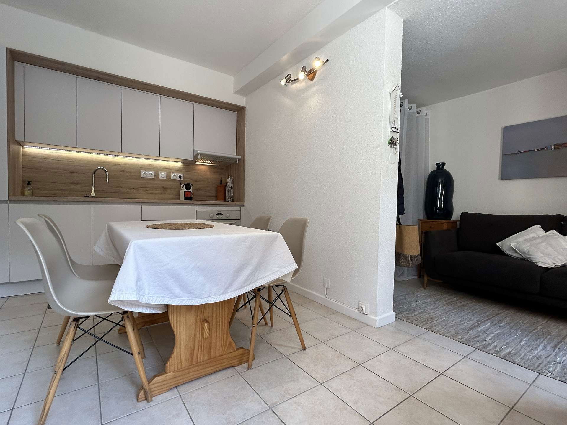Cette location de vacances située en rez-de-chaussée et refaite à neuf est dotée d’une agréable terrasse avec son mobilier de jardin. Climatisée, elle se compose d’un séjour avec un canapé fixe et coin cuisine toute équipée (four hors d'usage), un coin nuit avec lit deux personnes en 160, une chambre meublée d’un lit deux places. Salle d’eau avec wc.
