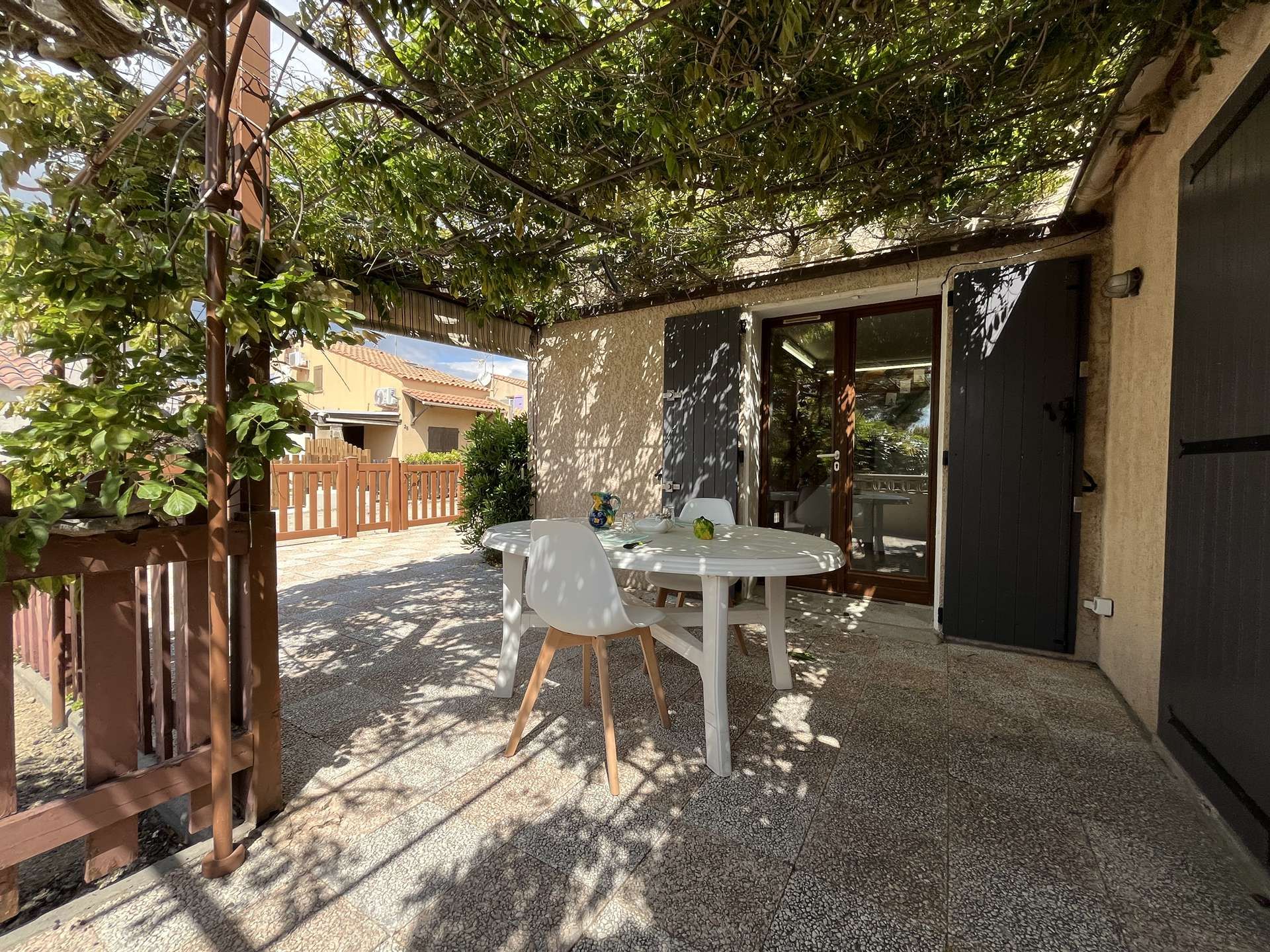 Les avantages de cette location saisonnière: proche de la plage du Grazel , soignée et bien équipée, lave-linge, lave-vaisselle, stationnement sur la terrasse.