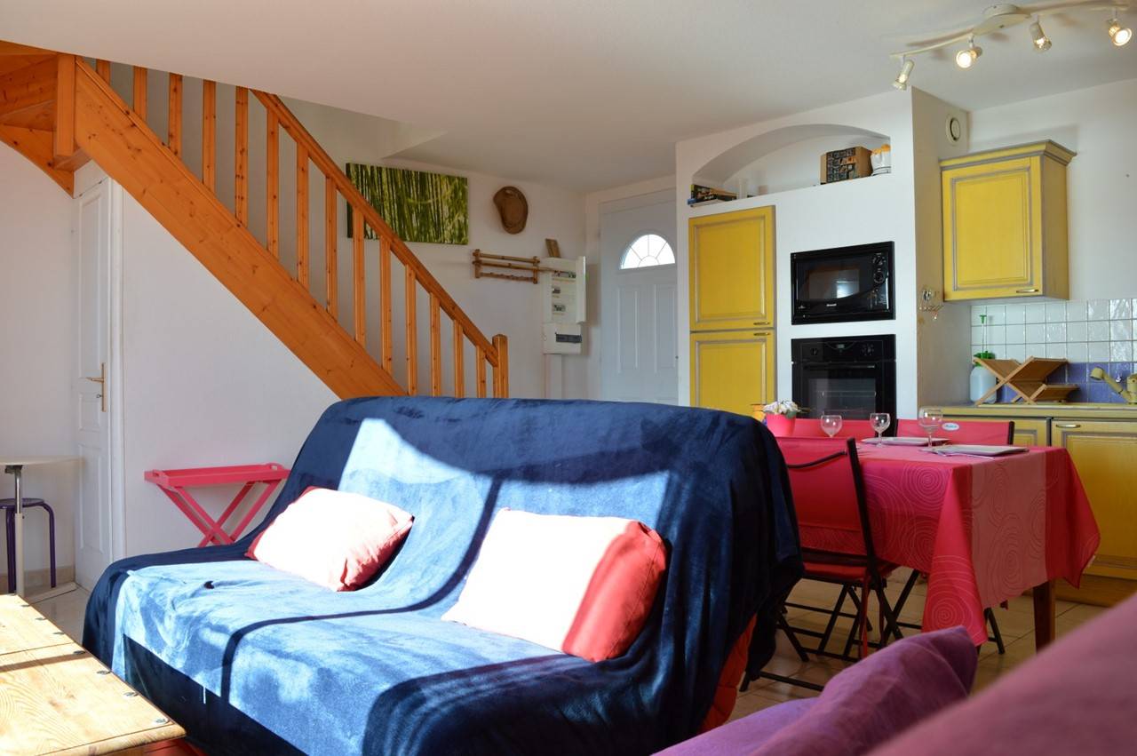 Cette location de villa de vacances comprend un séjour avec un canapé convertible deux places et télévision (sous réserve d'une bonne réception) ,un coin cuisine équipé. A l'étage se trouve une chambre avec un lit deux personnes et une chambre avec deux lits une personne, une salle de bain et wc indépendants.
