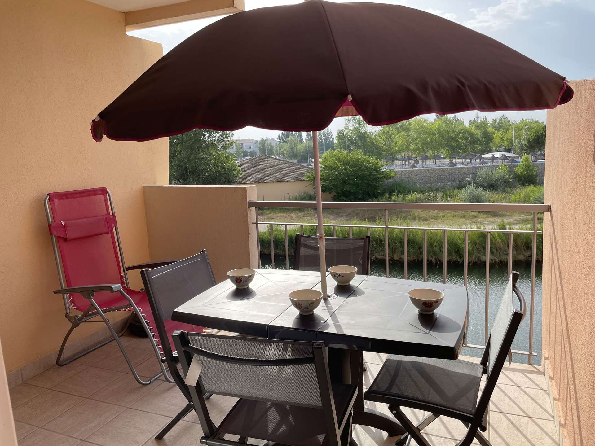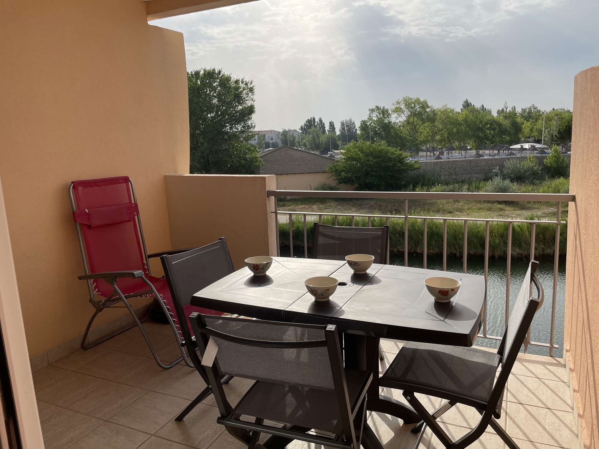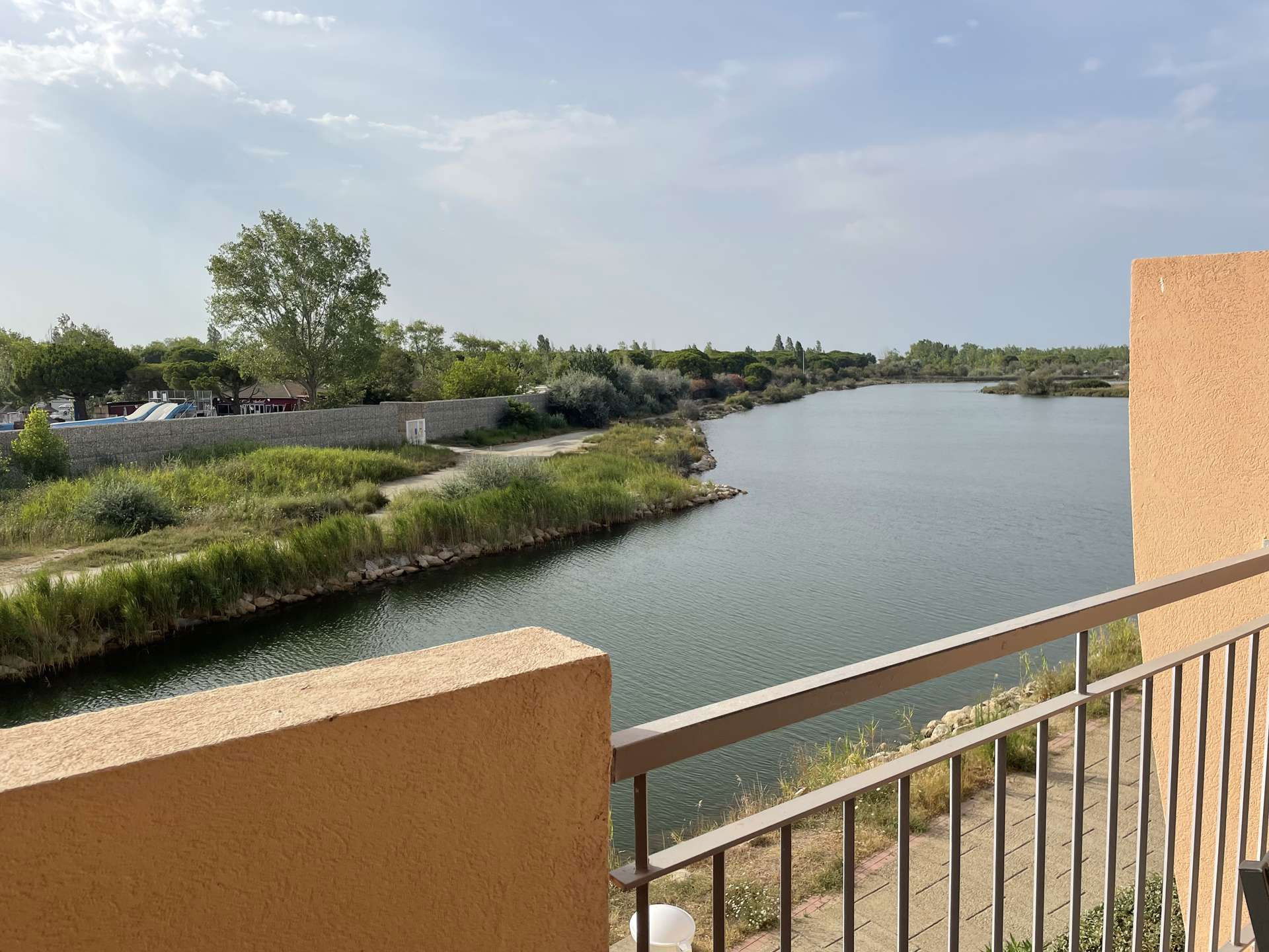 Les "Plus" de cette location de vacances en Camargue : une résidence avec piscine, un parking privé à la résidence et une jolie vue sur le chenal, le lac et en face la piscine du camping.