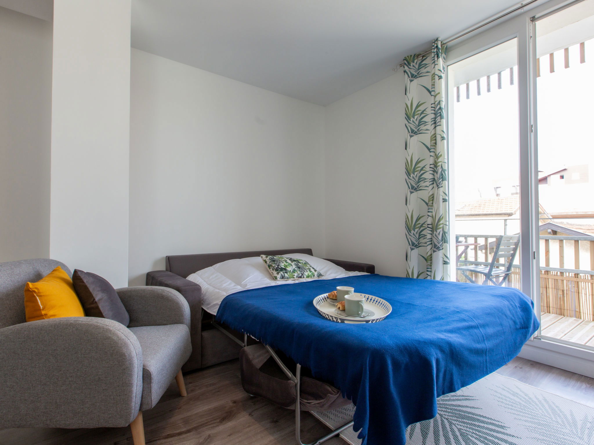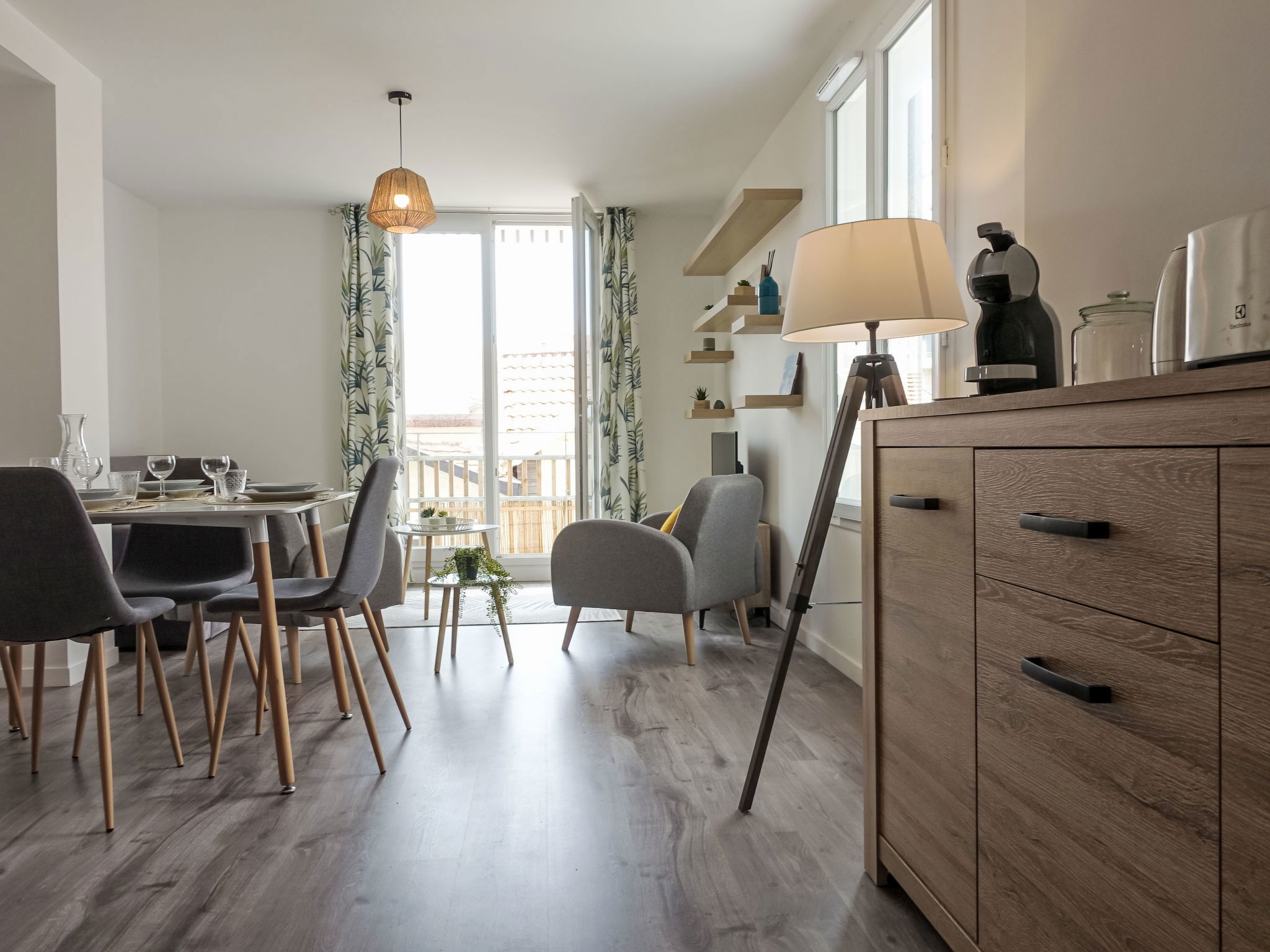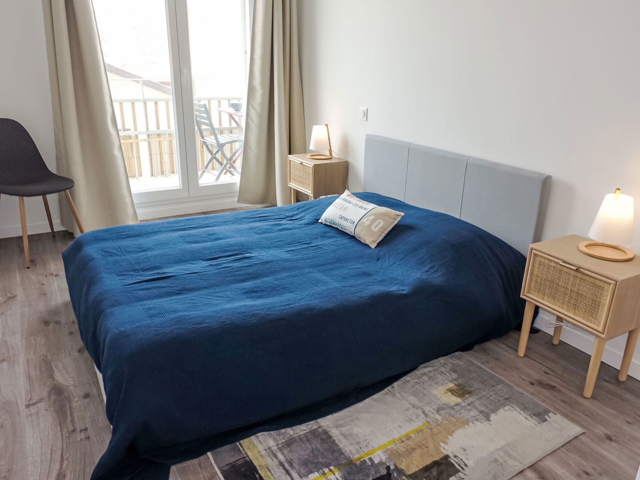Appartement de 3 pièces 60 m2 au 1er étage. Aménagement moderne et plaisant: séjour/salle à manger avec 1 divan-lit double (140 cm, longueur 190 cm), TV (écran plat). Sortie sur le balcon. 2 chambres, chaque chambre avec: 1 grand-lit (140 cm, longueur 190 cm). Sortie sur le balcon. Cuisine ouverte (four, lave-vaisselle, 4 plaques à induction, grille-pain, bouilloire électrique, micro-ondes, congélateur, cafetière électrique). Salle de bains, WC séparé. Chauffage électrique. Balcon 9 m2. Mobilier de balcon. A disposition: lave-linge, sèche-cheveux. Internet (Connexion WIFI, gratuit). Veuillez noter: logement non-fumeur. Maximum 1 animal/ chien autorisé. Annonce d'un particulier (art 155, IV du CGI). 40065001452UQ