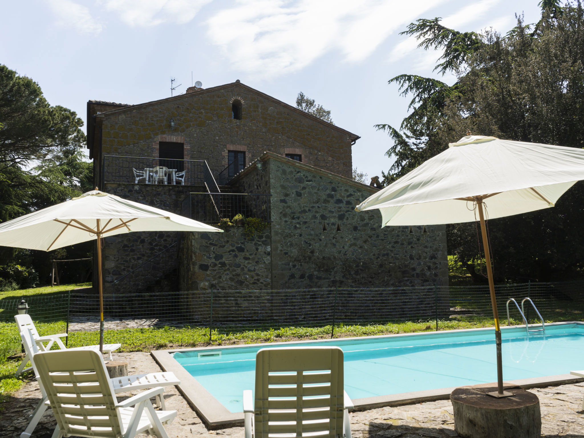 Maison de campagne "La Capraccia". 7 appartements dans la résidence. À 10 km du centre de Bolsena, à 3 km du centre de Bagnoregio, à 100 km du centre de Roma, à 11 km du lac, dans la verdure. En commun: terrain 20 ha, jardin entretenu avec pelouse et arbres, piscine (10 x 5 m, profondeur 120 - 150 cm, disponibilité saisonnière: 16.Mai. - 26.Sep. horaires d'ouverture de la piscine: 09:00-19:00). Douche extérieure, barbecue. Infrastructures de la Maison: lave-linge (en commun). Accès en voiture par un chemin de 200 m de long (chemin non goudronné). Place de parking sur le terrain. Magasins 3 km, supermarché 3 km, arrêt de bus 3 km, plage de sable "Lago di Bolsena" 12 km. Terrain de golf (9 trous) 18 km. Veuillez noter: D’autres appartements sont également proposés à la location dans cette maison de vacances.