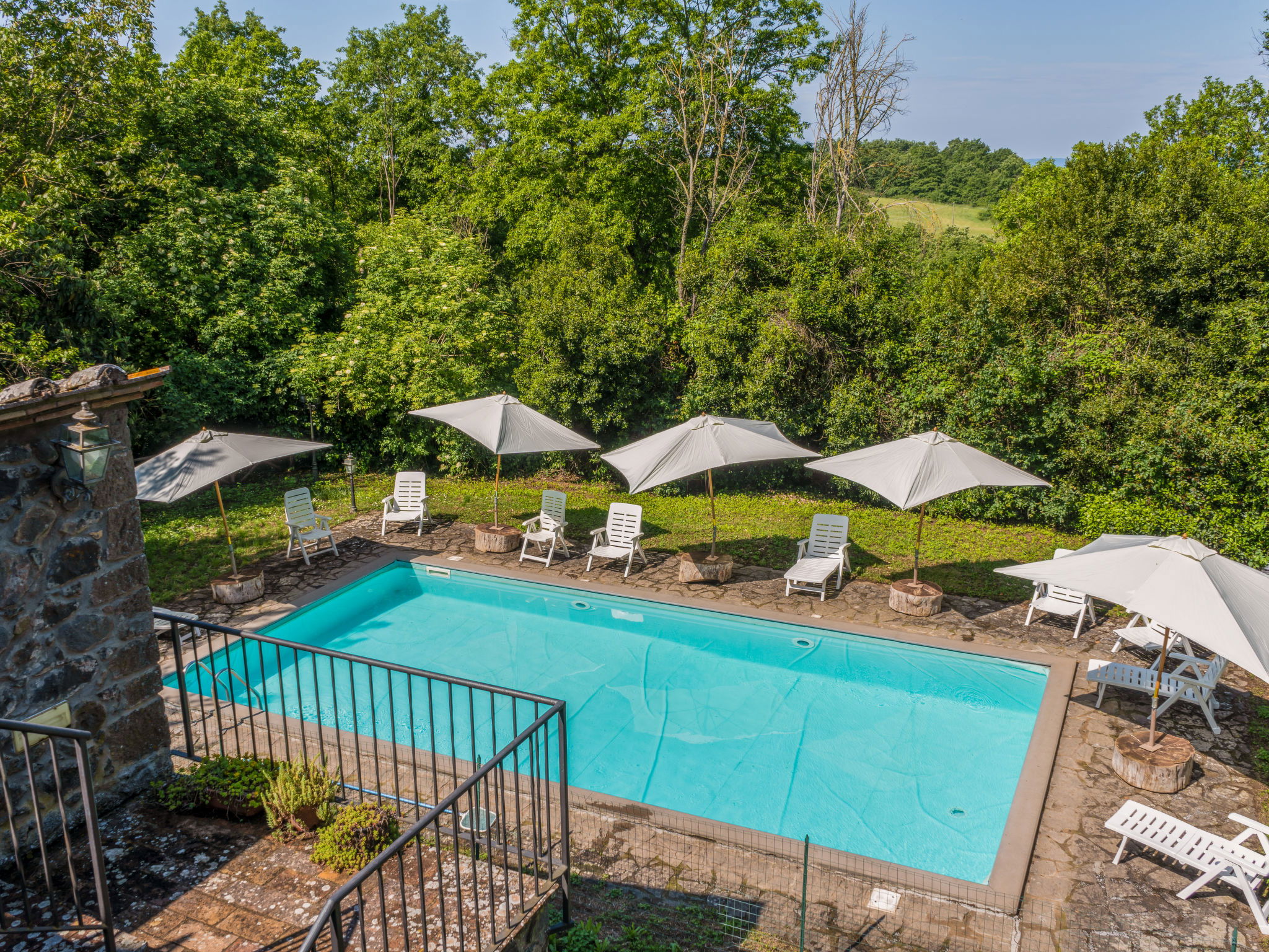 Maison de campagne "La Capraccia". 7 appartements dans la résidence. À 10 km du centre de Bolsena, à 3 km du centre de Bagnoregio, à 100 km du centre de Roma, à 11 km du lac, dans la verdure. En commun: terrain 20 ha, jardin entretenu avec pelouse et arbres, piscine (10 x 5 m, profondeur 120 - 150 cm, disponibilité saisonnière: 16.Mai. - 26.Sep. horaires d'ouverture de la piscine: 09:00-19:00). Douche extérieure, barbecue. Infrastructures de la Maison: lave-linge (en commun). Accès en voiture par un chemin de 200 m de long (chemin non goudronné). Place de parking sur le terrain. Magasins 3 km, supermarché 3 km, arrêt de bus 3 km, plage de sable "Lago di Bolsena" 12 km. Terrain de golf (9 trous) 18 km. Veuillez noter: D’autres appartements sont également proposés à la location dans cette maison de vacances.