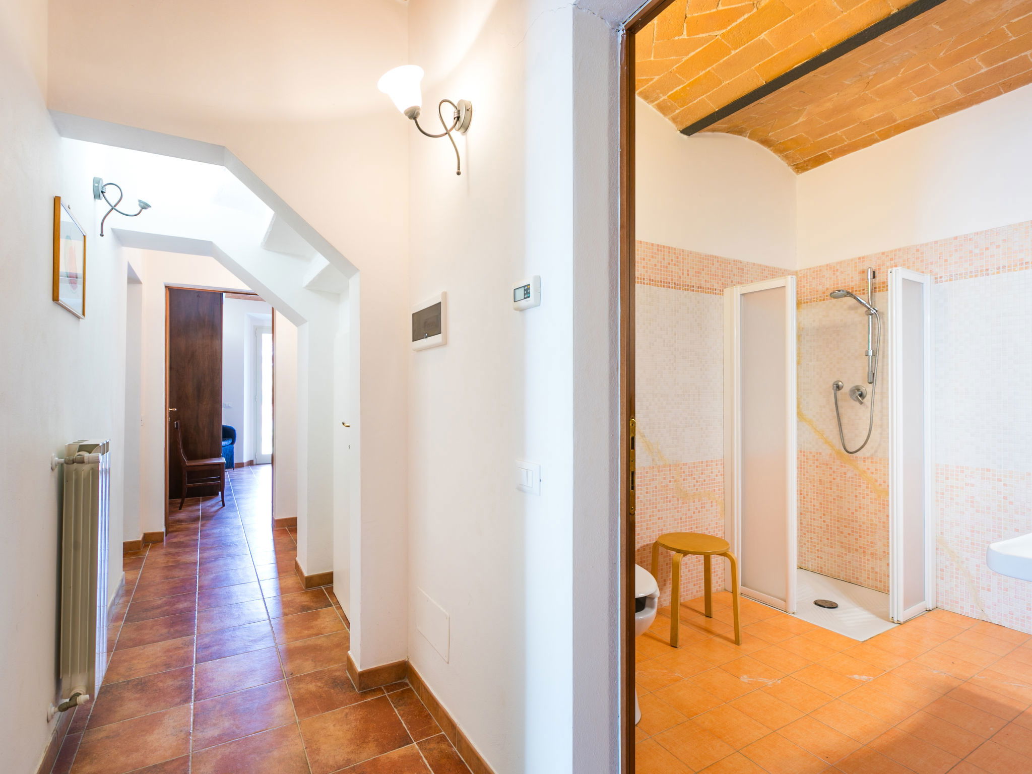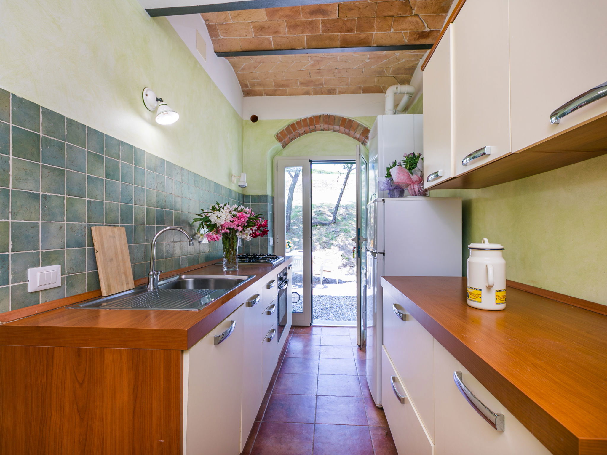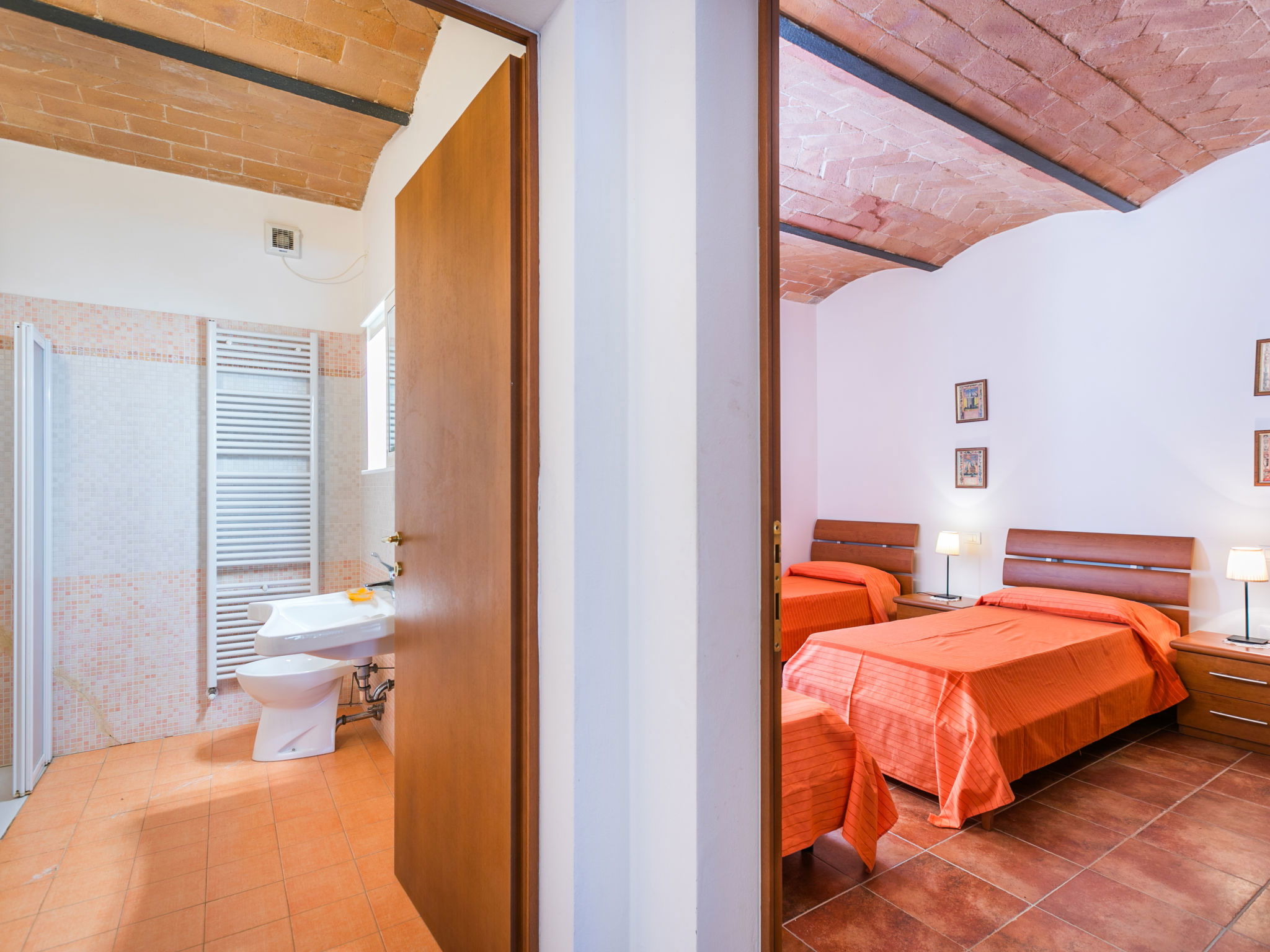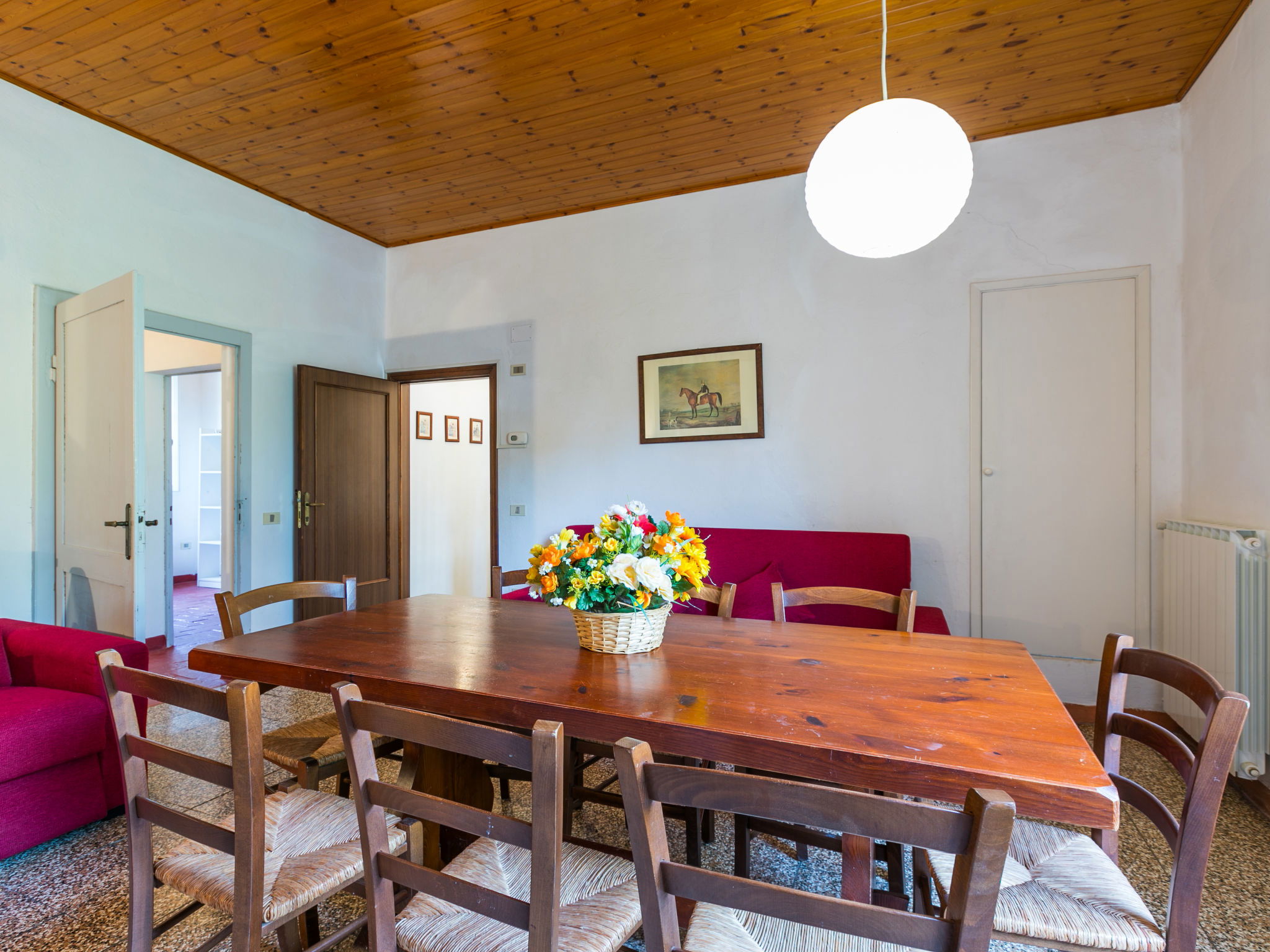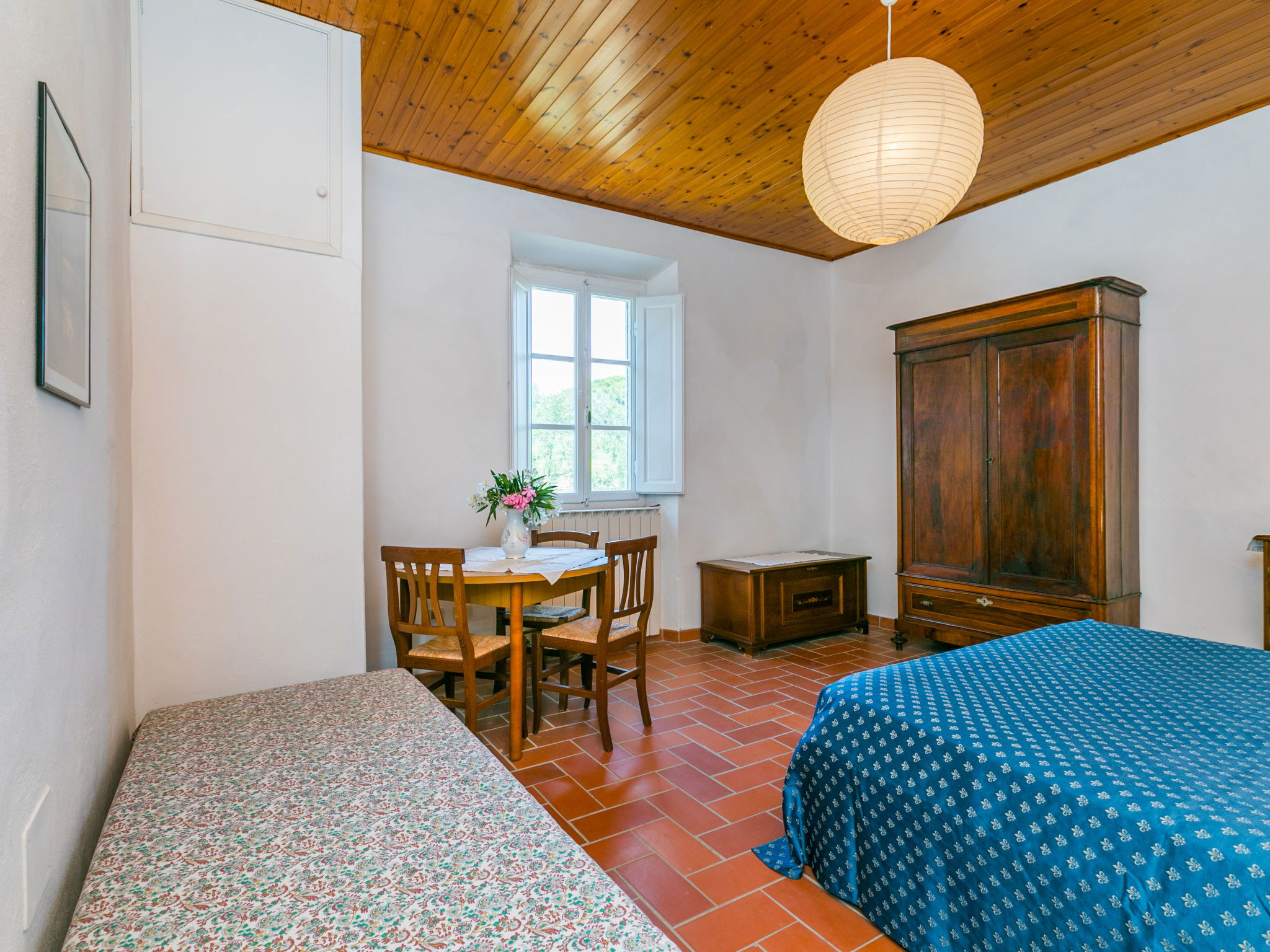 Le Podere La Madonnina se tapit dans le bois taillis toscan, à 10 km de la mer de Castiglioncello, il s'agit d'une ferme entièrement réaménagée, qui conserve des anciennes maisons de campagne, composée avec 2 apts au rez-de-chaussée relieés entre eux seulement de l'exterieur. Sur demande est possible reserver singulierment les Appartement de qui se trouvent au rez-de-chaussée pour un max de 9 personnes (ref IT5330.875.3) ) et l'Appartement de qui se trouve à l'étage pour max 10 personnes (ref IT5330.875.1) et dans ce cas la piscine devienne ad usage en comune pour les hotes. La maison est indépendente, très calme et dispose d'une une piscine ensoleillée, réservée aux hôtes. les anciennes étables ont été aménagées en salle commune. une piscine, réservée aux hôtes. Dans la maison il y a une tv, une lave-linge. Podere la Madonnina est à environ 40 km de Pisa et 90 km de Florence. A 100 mt il y a aussi IT5330.876.1. Bois pour le cheminée sur demande, à payer sur place selon consumation. Maison de campagne "Podere La Madonnina". À 10 km de la mer. En commun: jardin, piscine (4 x 9 m, profondeur 155 - 155 cm, disponibilité saisonnière: 18.Mai. - 28.Sep.). Ping-pong, barbecue. Infrastructures de la Maison: chauffage central, chauffage payable localement (15.Oct. - 15.Avr.). Aide ménagère journalier possible (en sus). Place de parking sur le terrain. Magasins 3 km, arrêt de bus 100 m, gare ferroviaire "Rosignano" 11 km, plage de sable 10 km, plage de rochers 10 km. Tennis 5 km, centre équestre 5 km. Le propriétaire n'accepte pas les groupes de jeunes. Environnement très sensible au bruit. Silence et bonne tenue exigés.