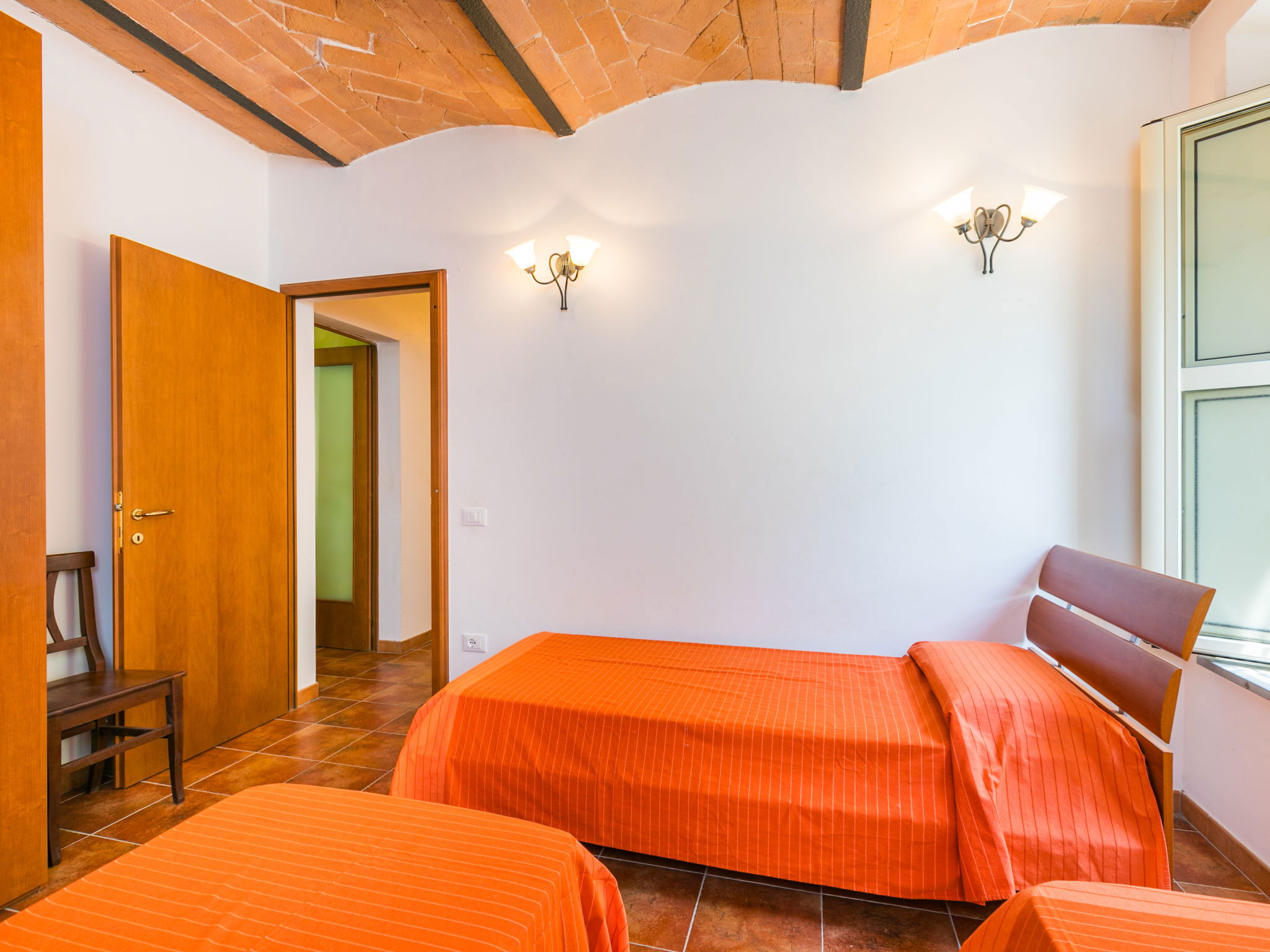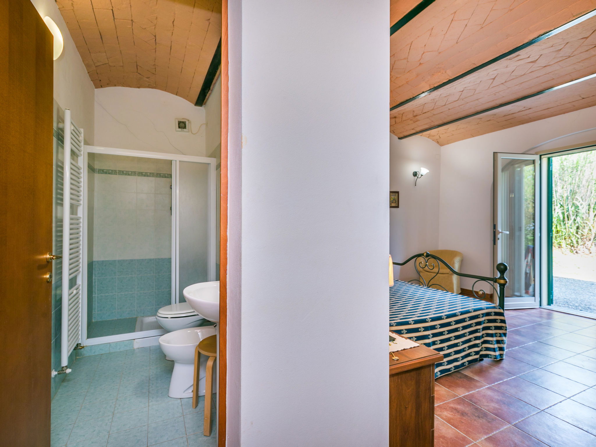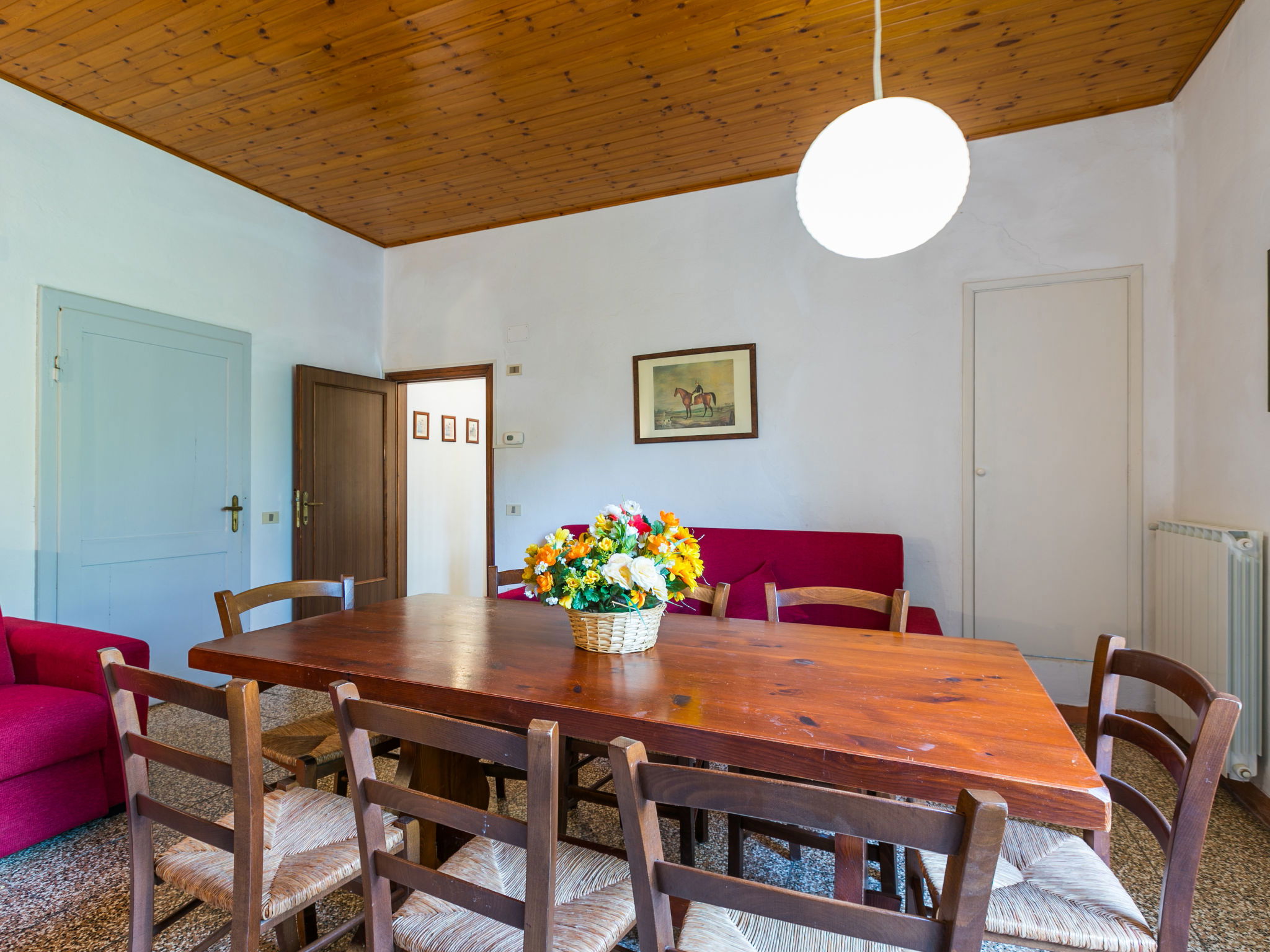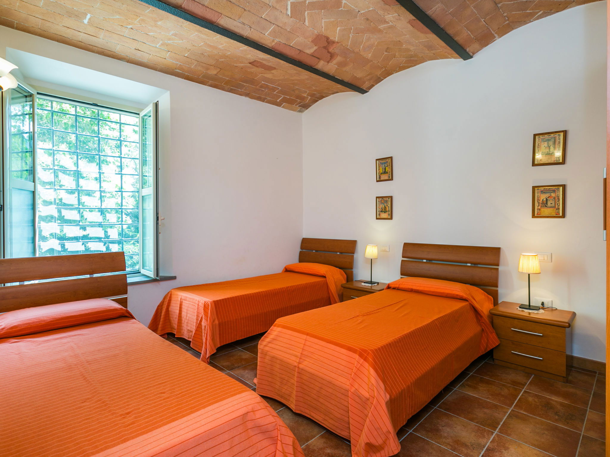"La Madonnina x 17 pax", maison 9 pièces 210 m2 sur 2 niveaux, au rez-de-chaussée. Spacieux, rénovée, aménagement fonctionnel et agréable: séjour avec 1 divan-lit, table pour les repas et TV (satellite) (écran plat). Sortie sur le jardin. 2 chambres doubles, chaque chambre avec: 1 lit double et douche/bidet/WC. Sortie sur le jardin. 1 chambre avec 3 lits. Cuisine (4 plaques de cuisson, four, lave-vaisselle, congélateur). Sortie sur le jardin. Douche/bidet/WC. À l'étage supérieur: (escalier extérieur) séjour/salle à manger avec 2 divans-lits, cheminée et TV (satellite). 2 chambres doubles, chaque chambre avec: 1 lit double. 1 chambre avec 3 lits. 1 chambre avec 1 x 2 lits superposés. Coin cuisine (four, lave-vaisselle). 2 douches/bidet/WC. Grand jardin. Meubles de terrasse, barbecue. A disposition: lave-linge, moustiquaire. Place de parking près de la maison. Veuillez noter: maximum 1 animal/ chien autorisé. Extincteur. IT049017C2E9QTKMXT
