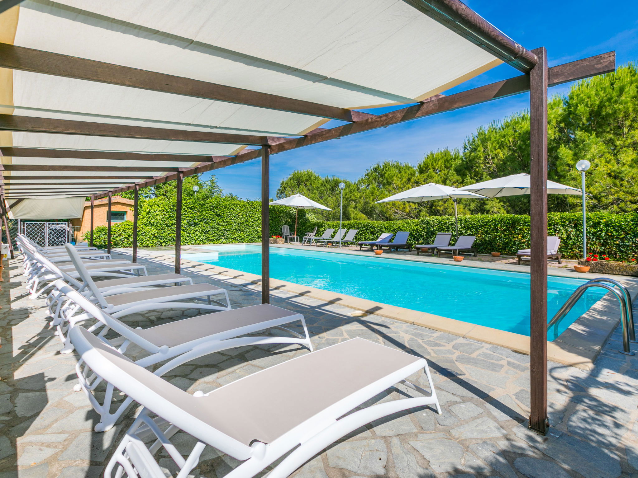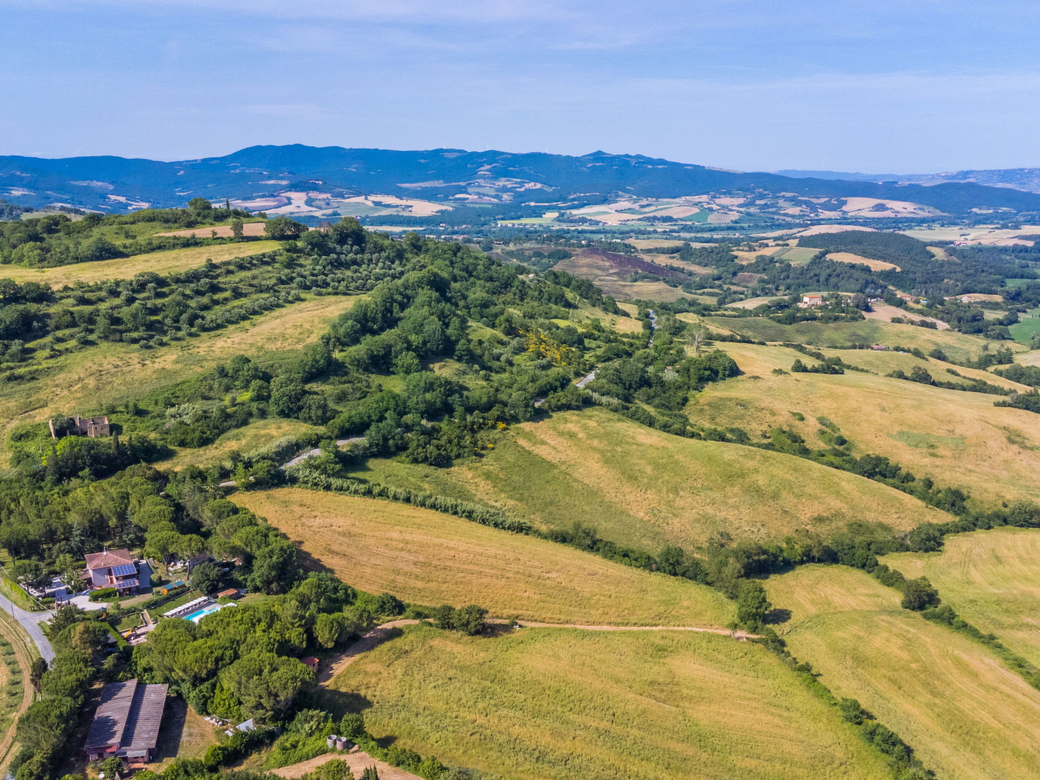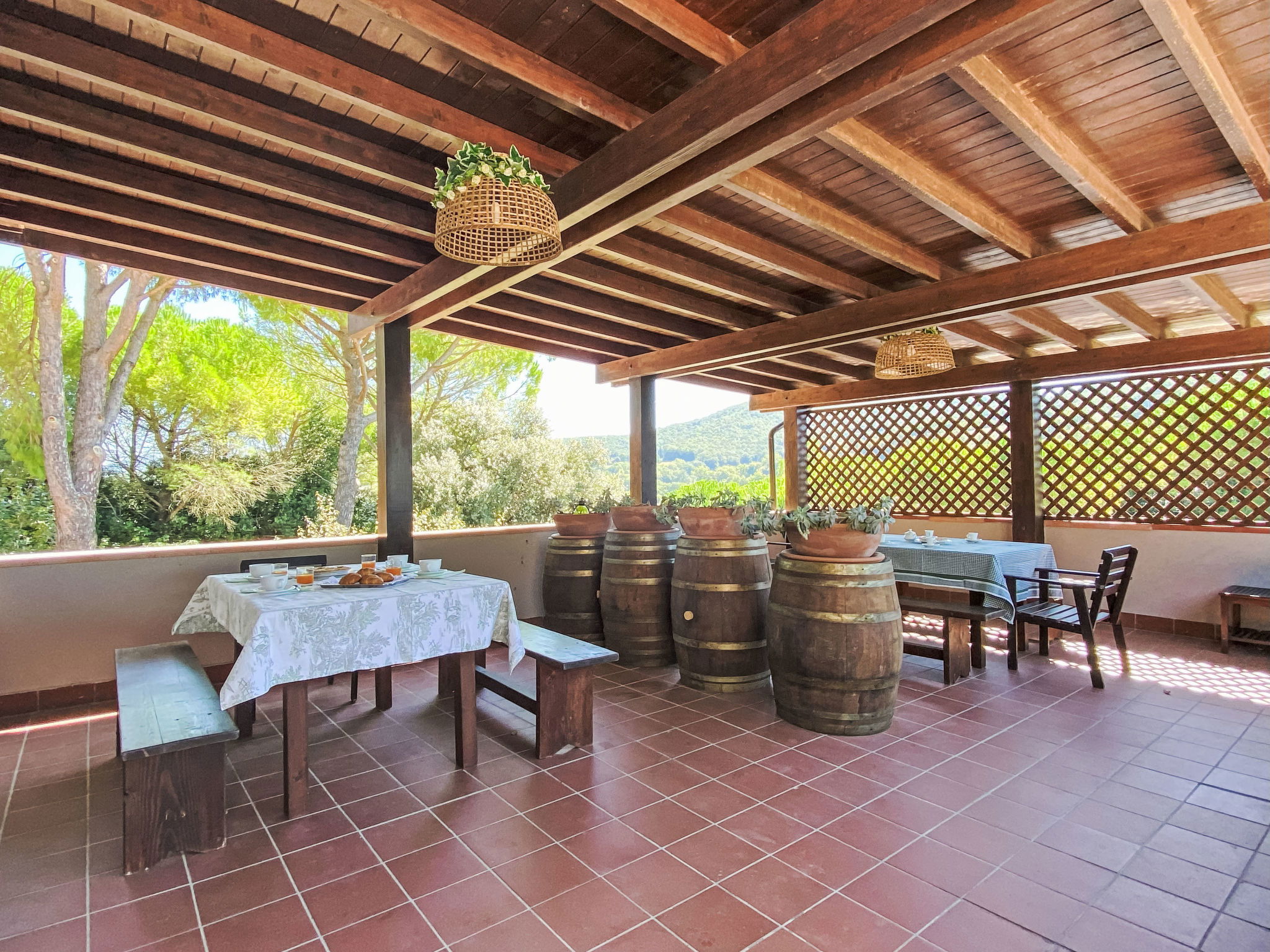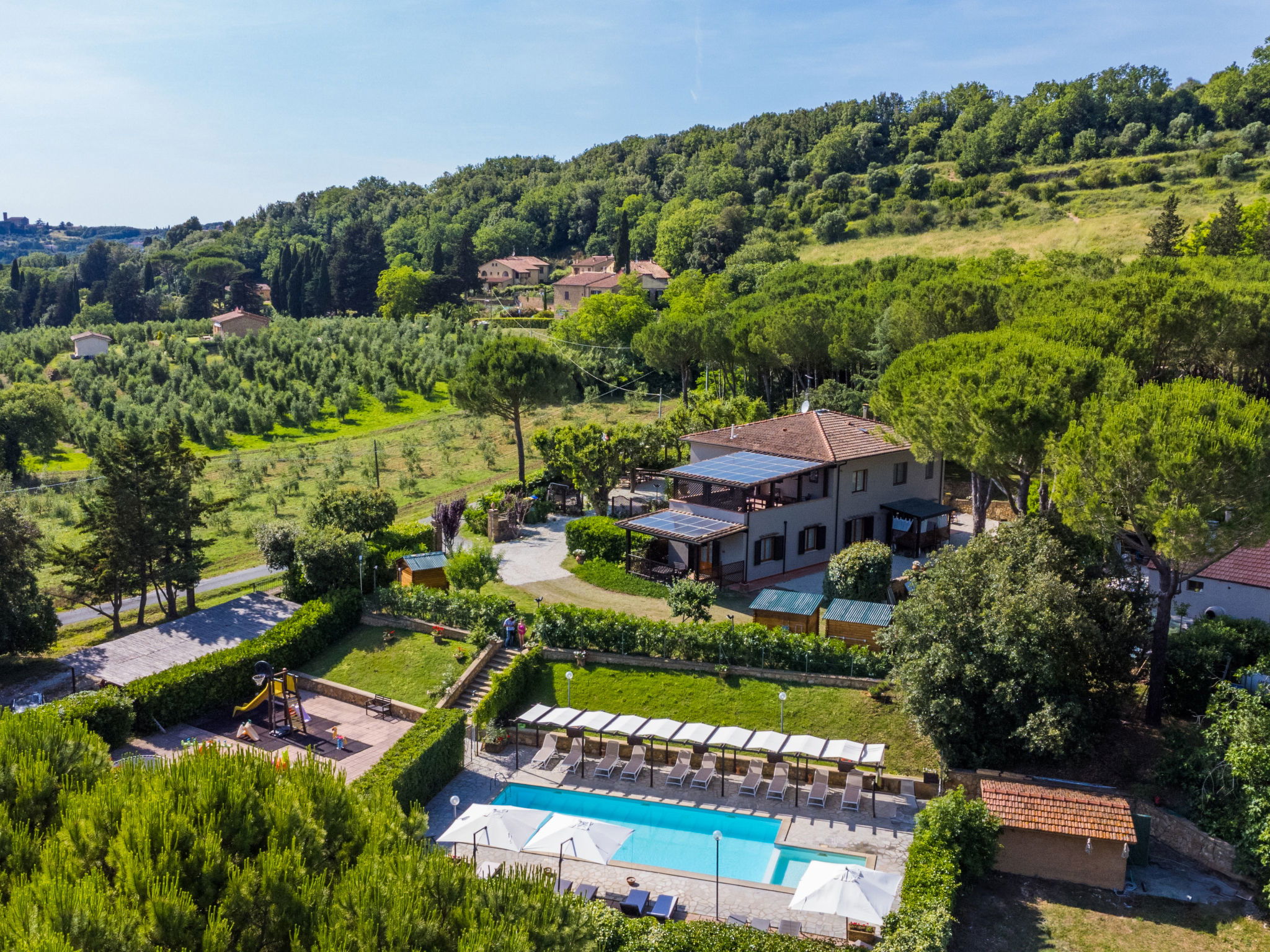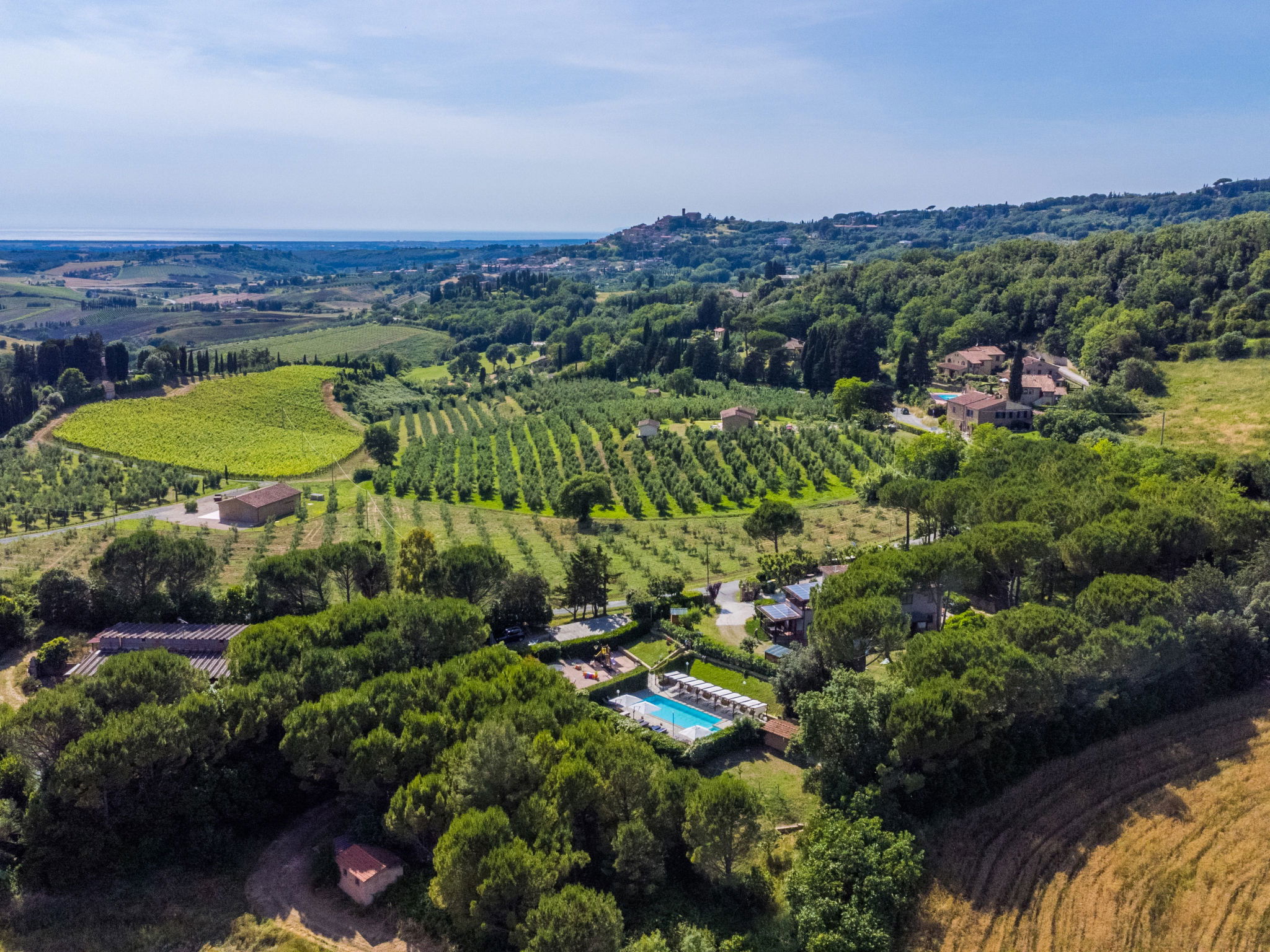 Agrotourisme "Casaltoscano", de 2 étages, renové en 2024, environné par les arbres, champs et vignobles. 5 appartements dans la même entité. À 4.5 km du centre de Casale Marittimo, à 4 km du centre de Guardistallo, à 13 km du centre de Marina di Bibbona, situation tranquille sur une colline, à 13 km de la mer, à 13 km de la plage. En commun: terrain 1 ha, jardin naturel, champ, piscine (14 x 5 m, profondeur 60 - 150 cm, disponibilité saisonnière: 01.Mai. - 15.Oct.). Bassin pour les enfants, ping-pong, basket, espace de jeux pour les enfants. Infrastructures de la résidence: réception, air-conditionné, lave-linge, sèche-linge (en commun, en sus). Place de parking sur le terrain. Magasins 4 km, magasin d'alimentation 4 km, supermarché 12 km, centre commercial 12 km, boulangerie 4 km, arrêt de bus 3 km, centre thermal "Calidario" 37 km. Attractions à proximité: Bolgheri 12 km, Pisa 65 km, Lucca 90 km, Firenze 125 km. Veuillez noter: voiture recommandée. Équipement pour bébés sur demande (en sus). Le propriétaire habite sur le même terrain.